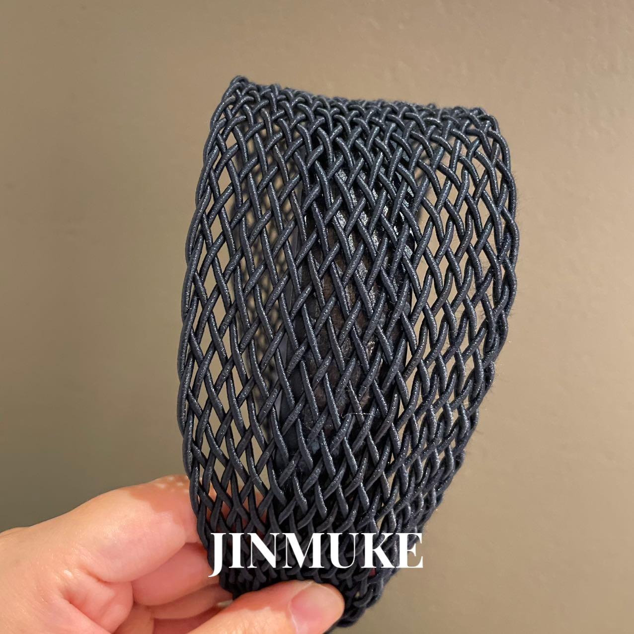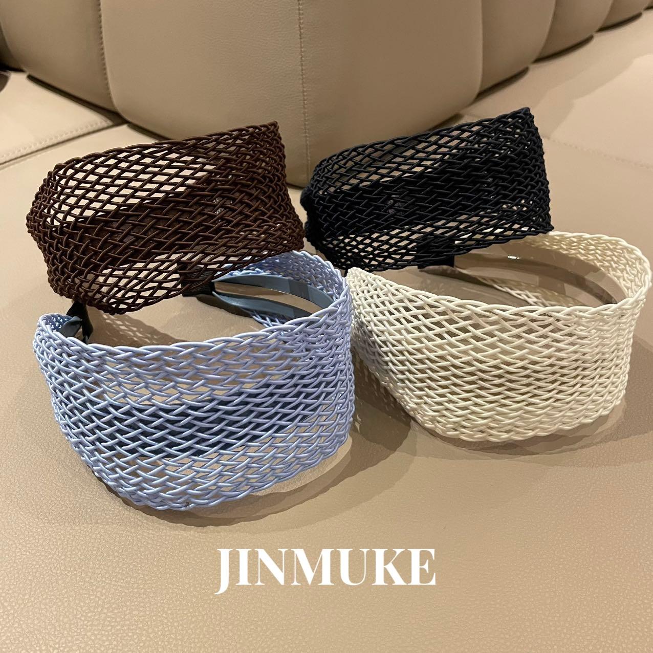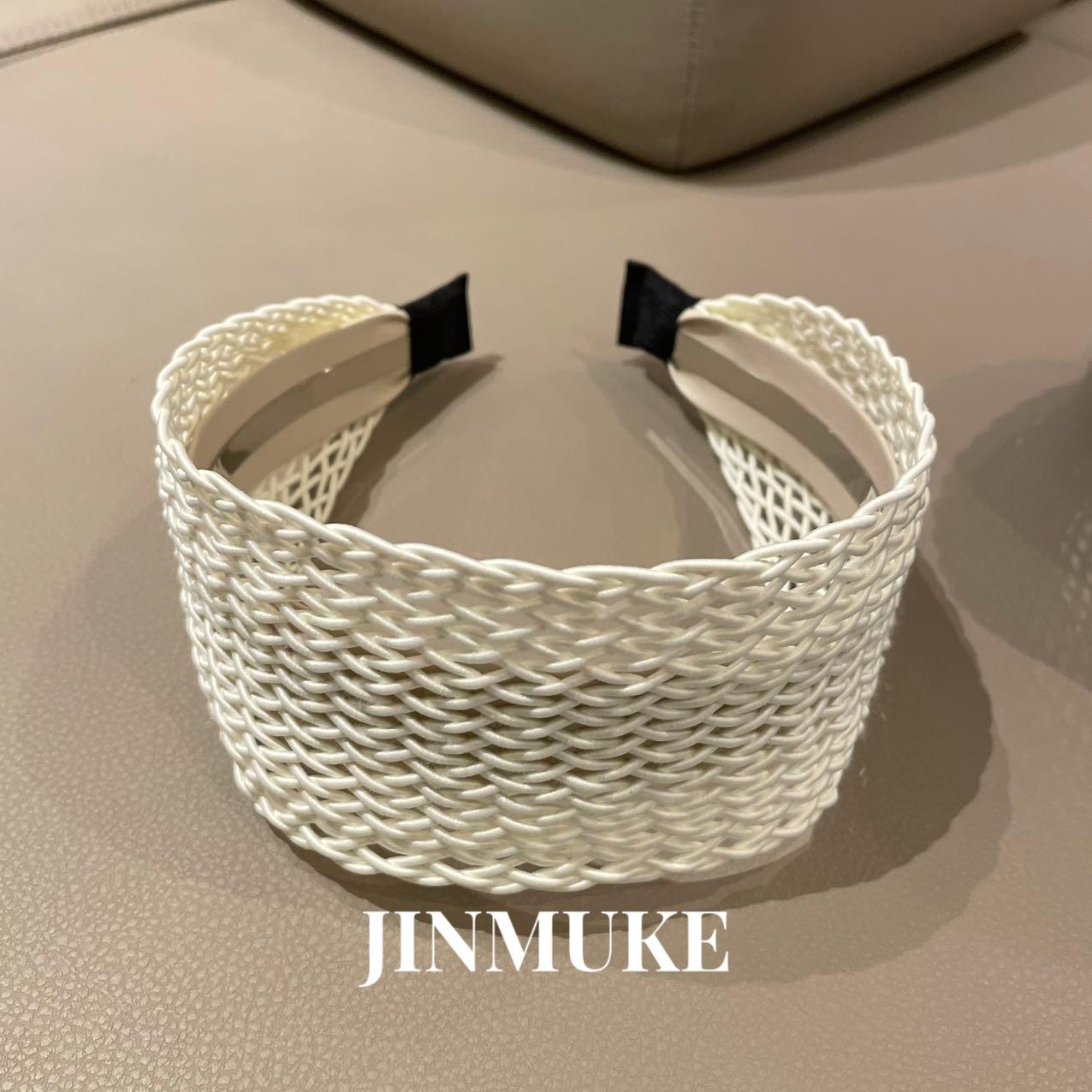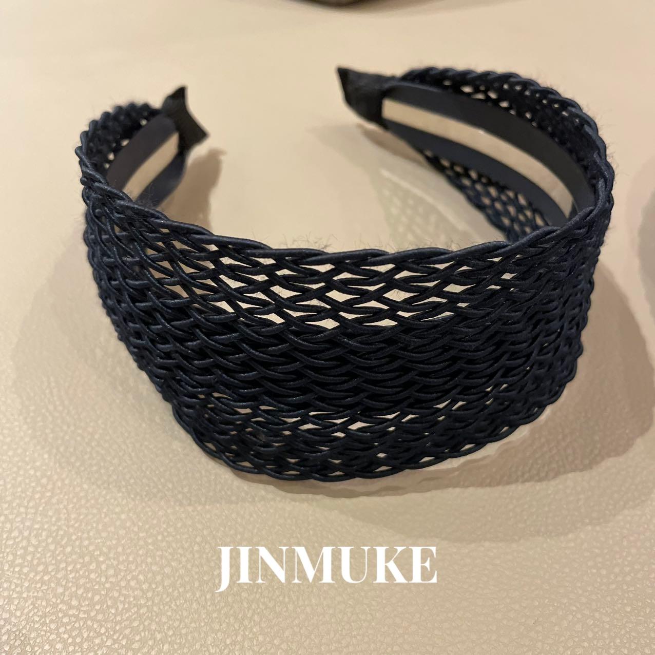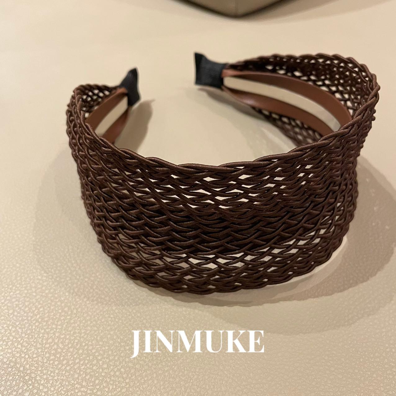 Dark brown braided wide hairband, Black braided wide headband, Off-white braided wide headband, Gray blue braided wide headband