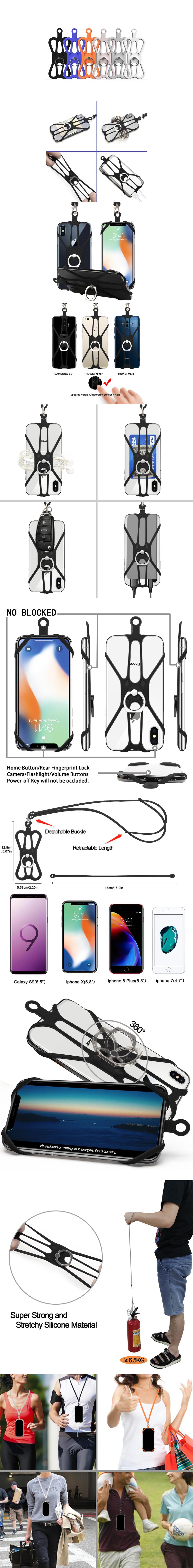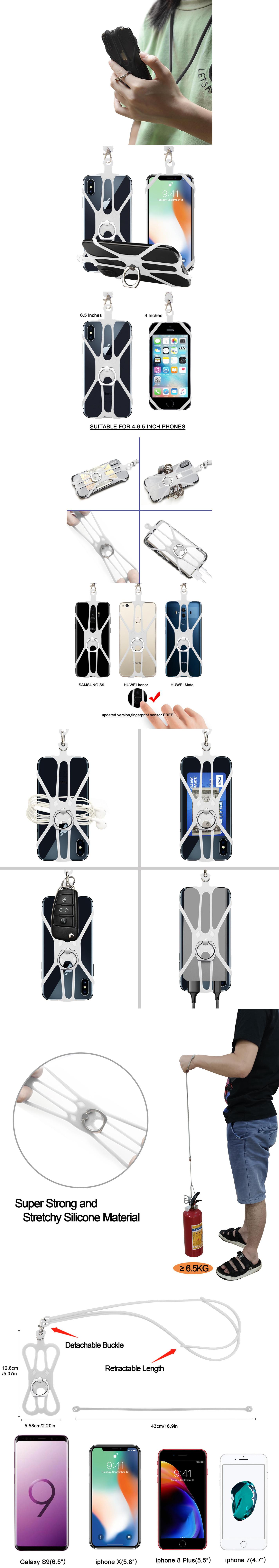 Funda de Silicona con Cordón para Teléfono Móvil Neutro Portátil Anticaída Cordón para Teléfono 2 en 1 Funda de Silicona Cordón para Colgar del Cuello
