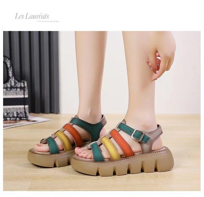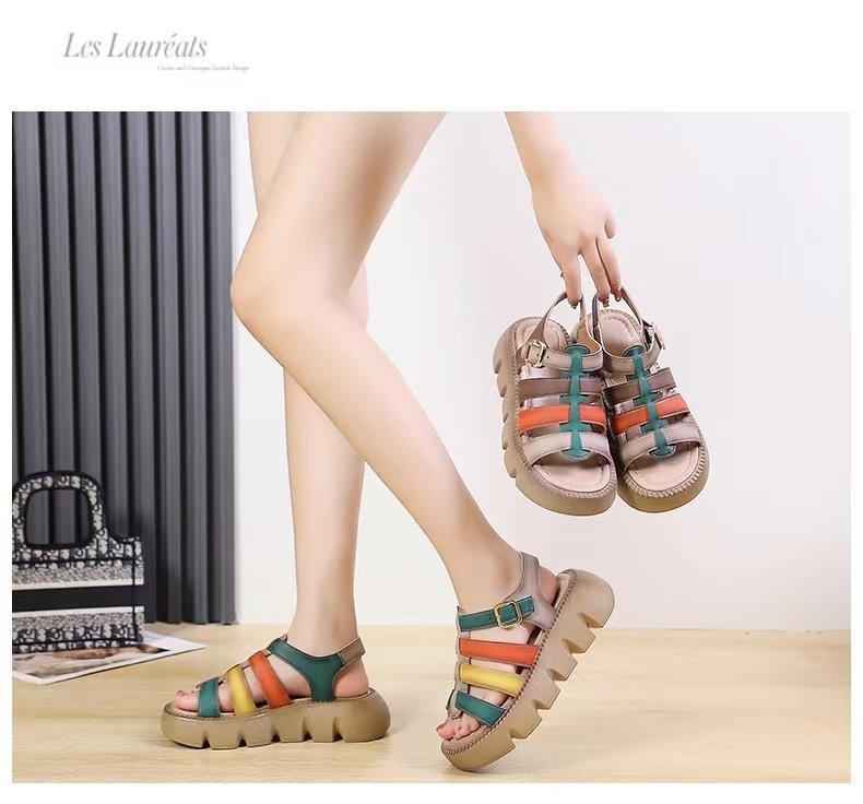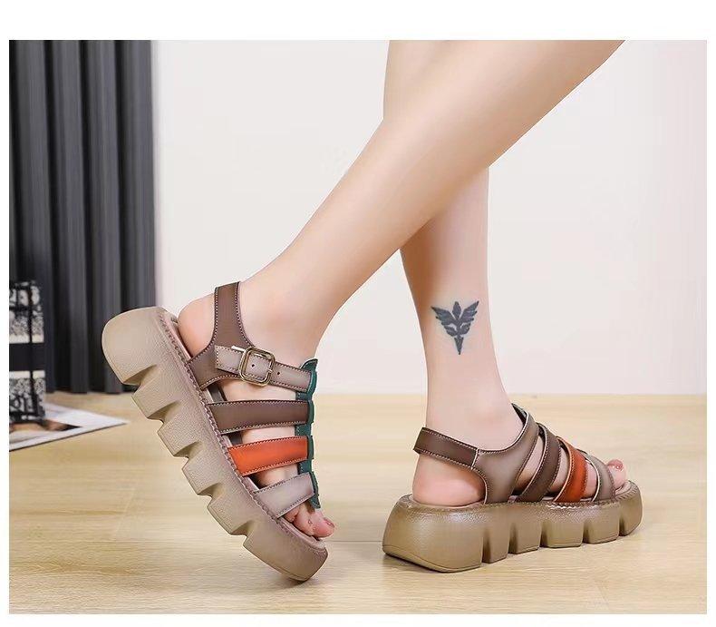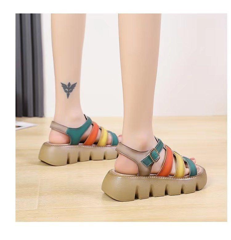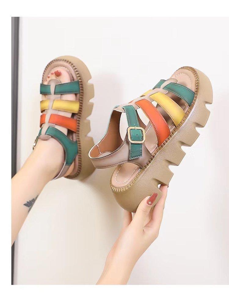 Sandalias de Suela Gruesa para Mujer, Sandalias de Plataforma Nuevas de Combinación de Colores Versátiles para Mujer a la Moda para Verano 2025 con Sandalias Romanas Casuales de Moda