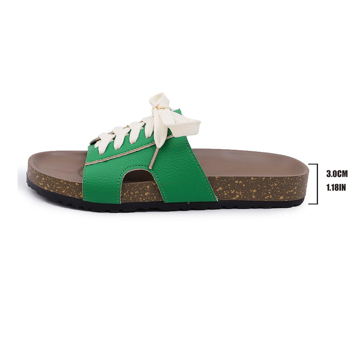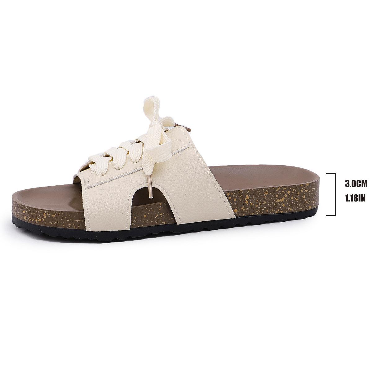 2025 Nuevas Pantuflas Planas de Verano Estilo Coreano para Mujer para Usar Chanclas de Punta Abierta Huecas Casuales con Cordones Venta al por Mayor