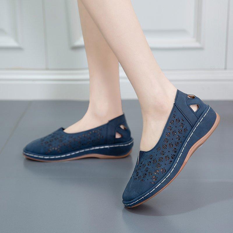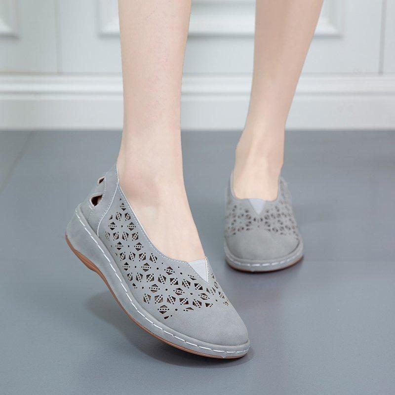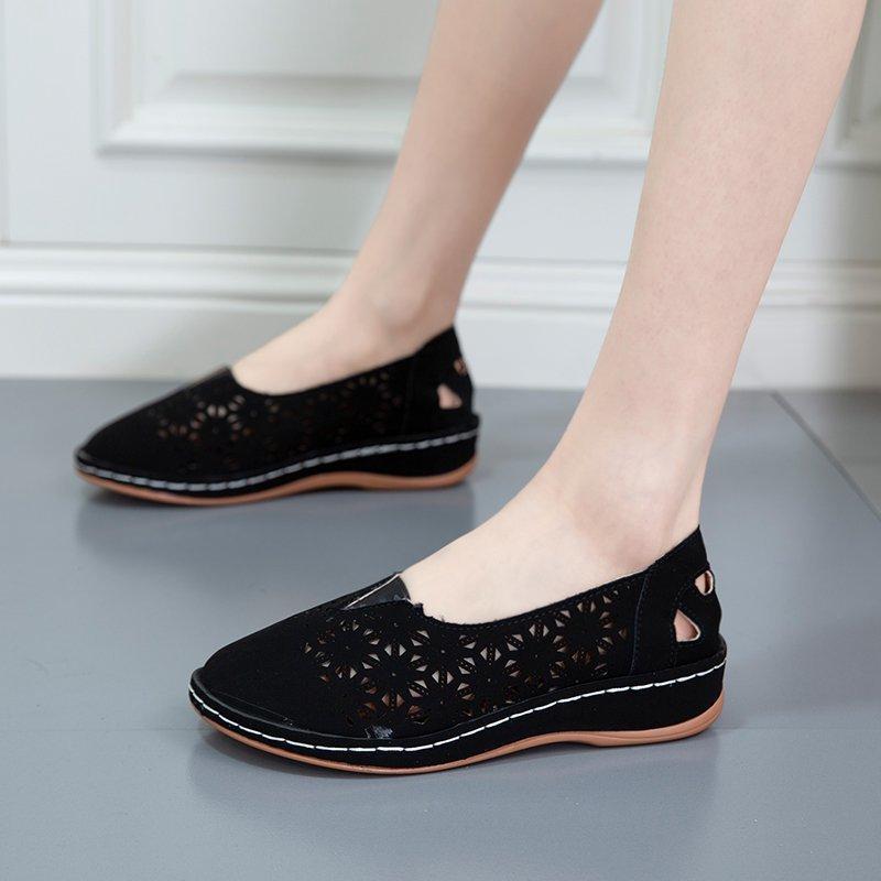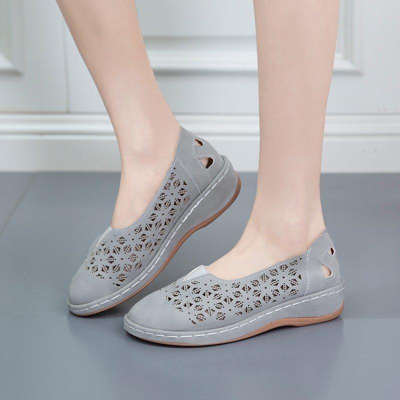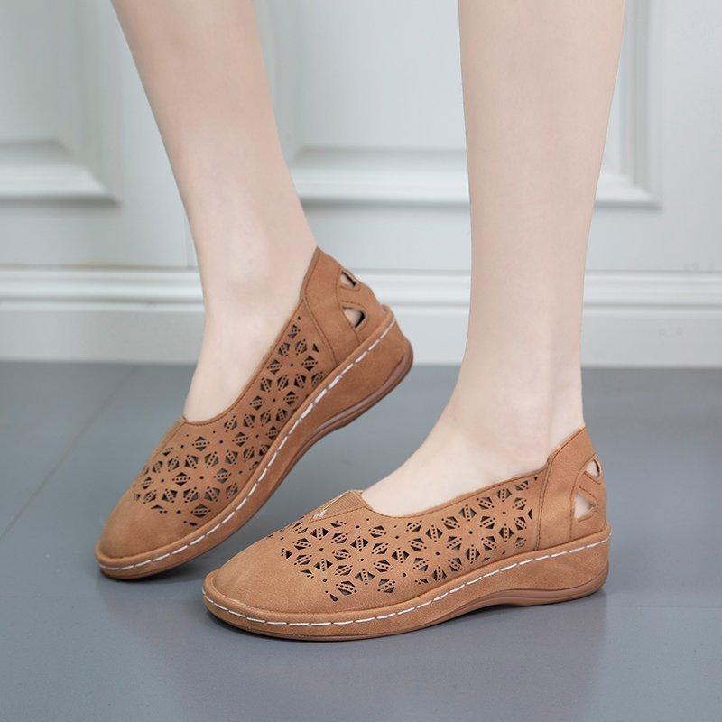 Mocasines Retro de Punta Redonda sin Cordones, Zapatos Perezosos, Nuevos Zapatos Casuales Europeos y Americanos de Suela Plana con Agujeros Huecos para Mujer