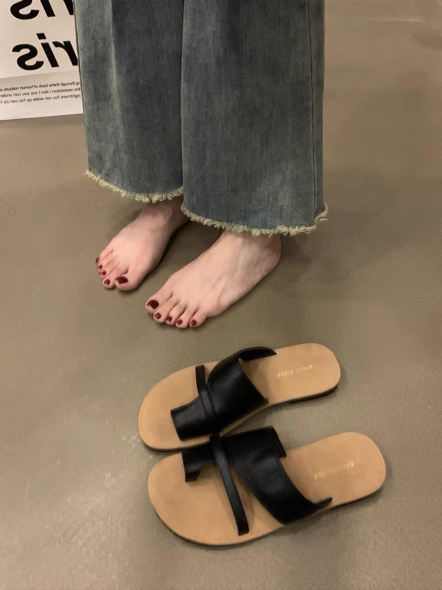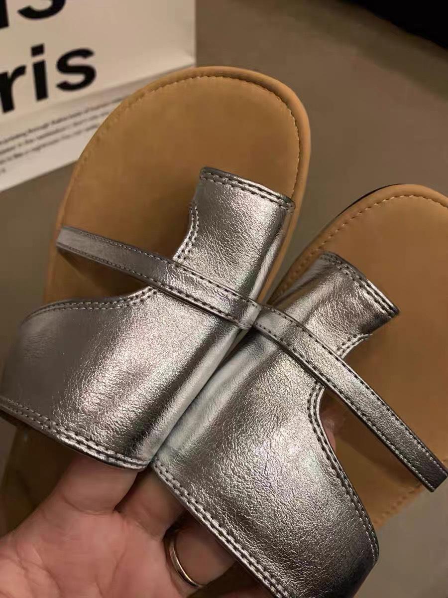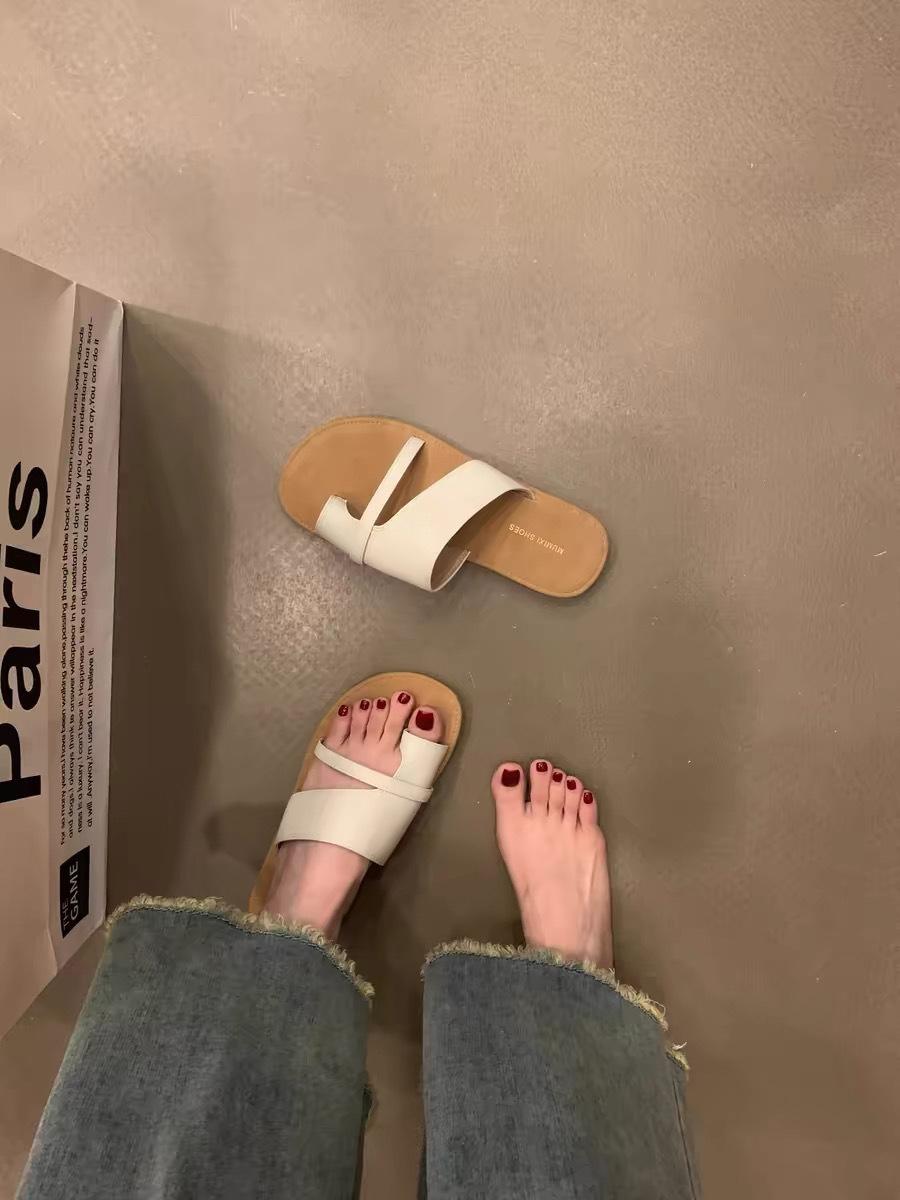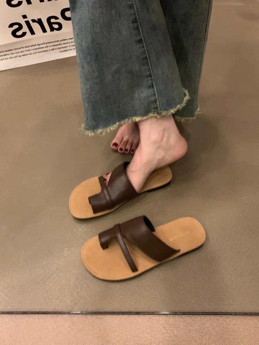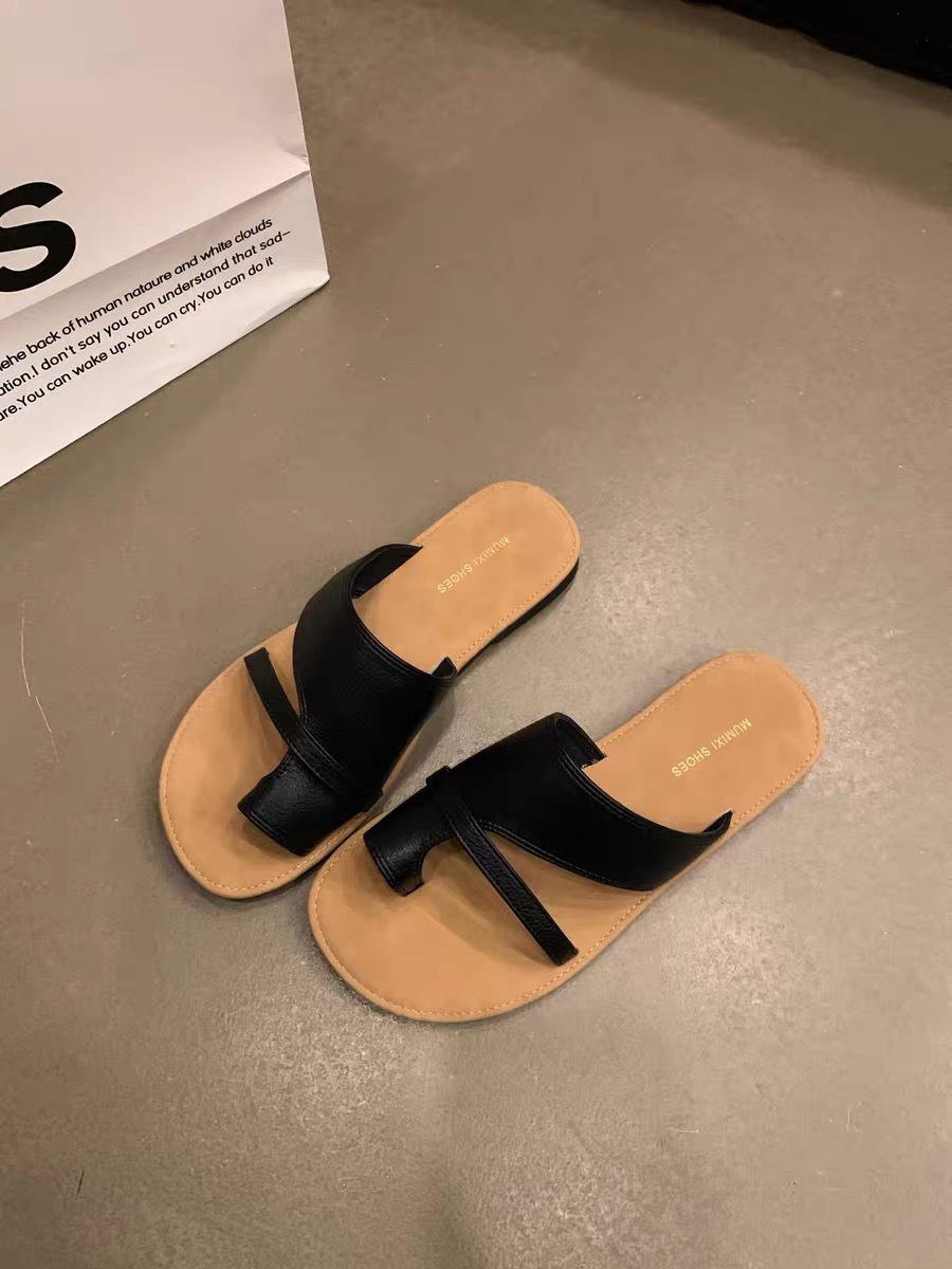 Pantuflas de Punta Cubierta de Manga Retro Estilo Coreano para Mujer Verano 2024 Nuevo Nicho Plano Suela Suave Sandalias de Playa