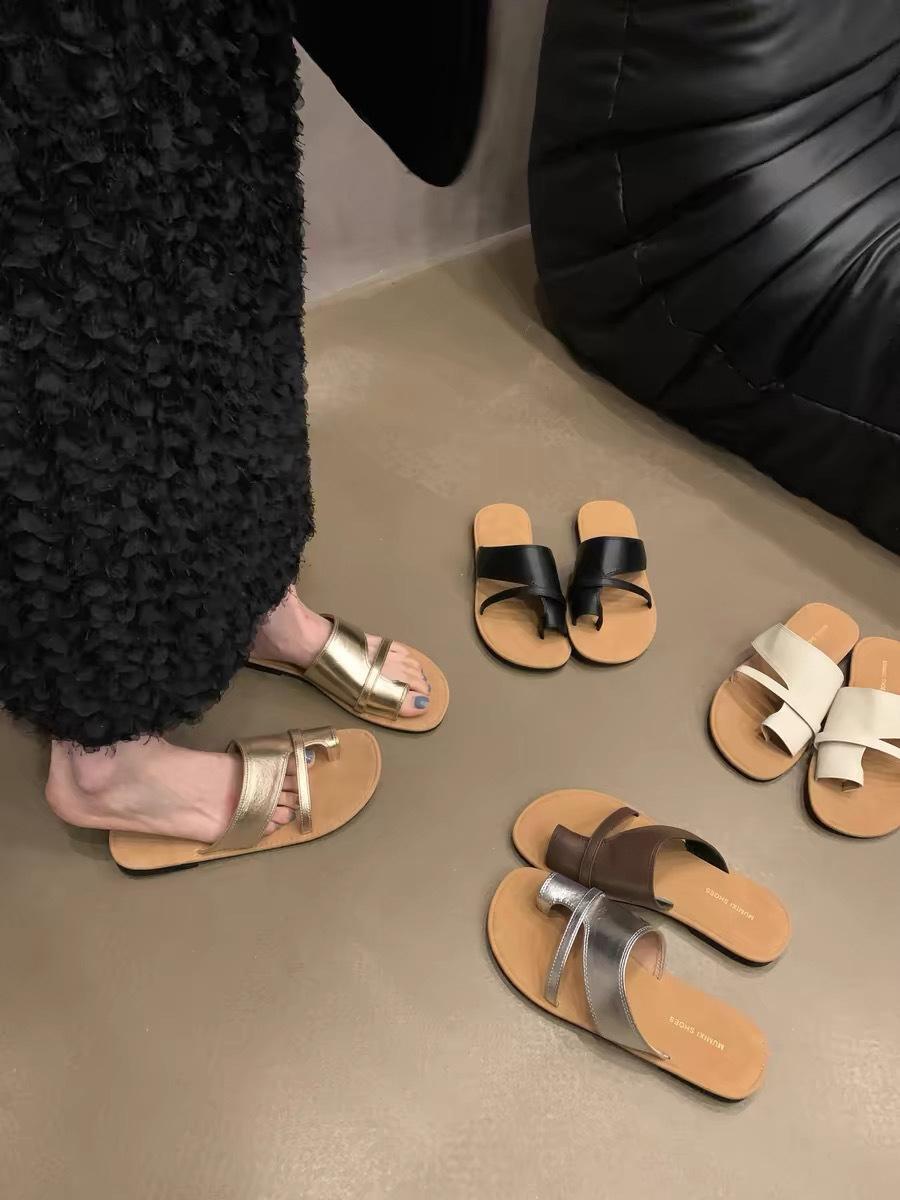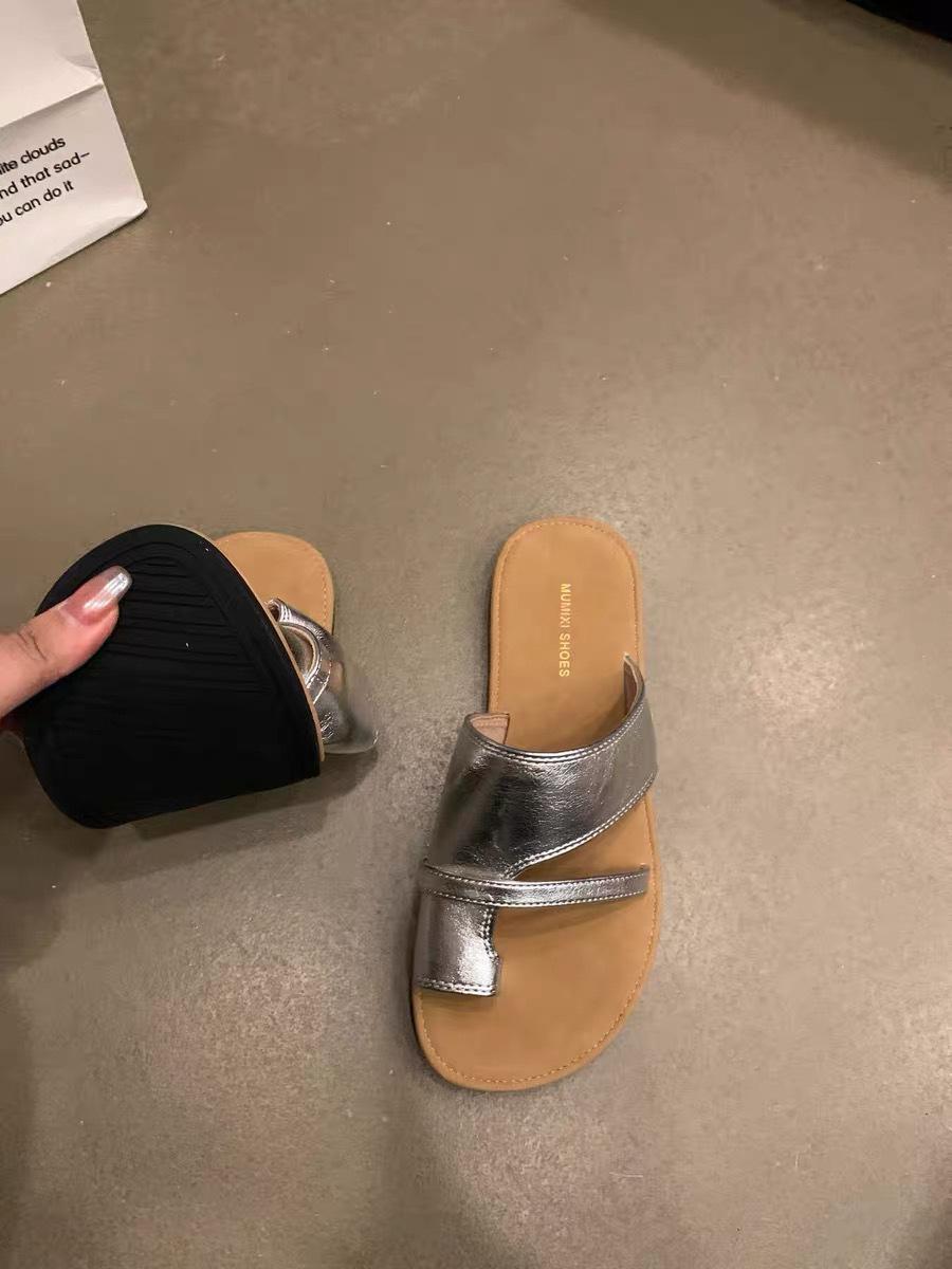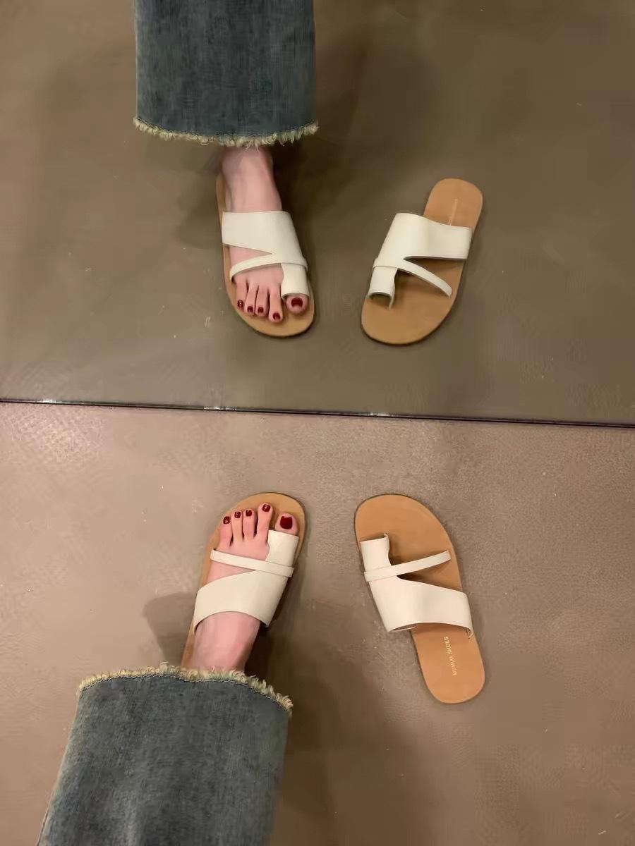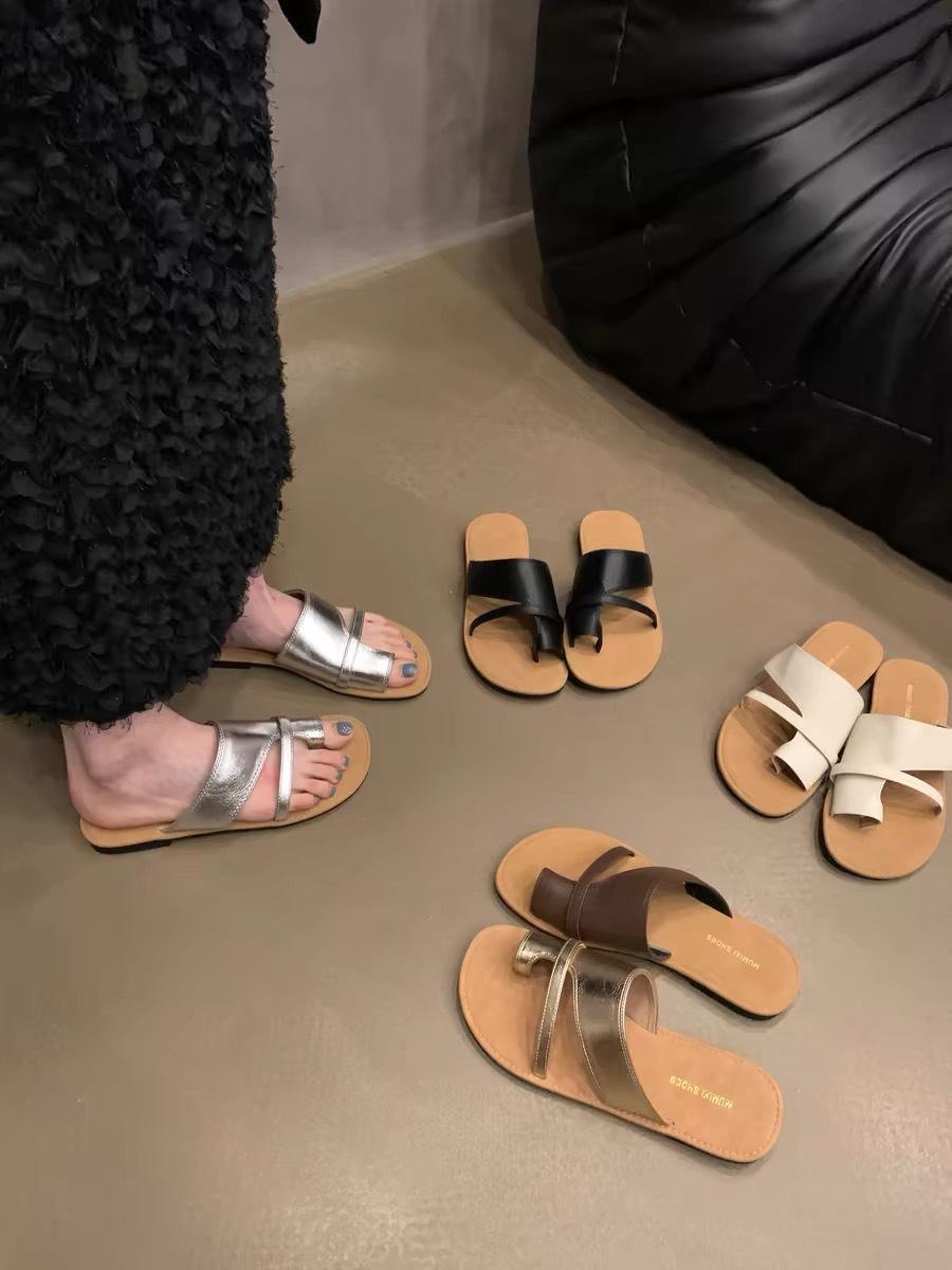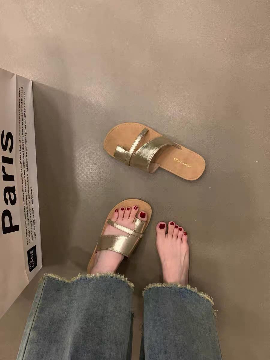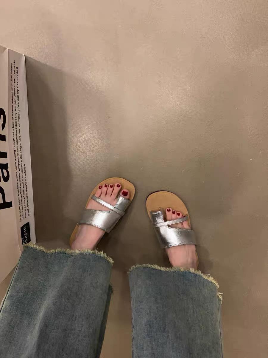 Pantuflas de Punta Cubierta de Manga Retro Estilo Coreano para Mujer Verano 2024 Nuevo Nicho Plano Suela Suave Sandalias de Playa