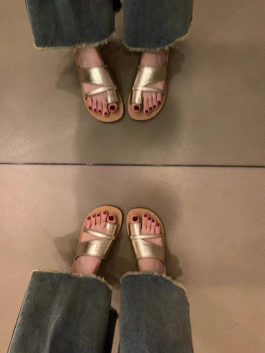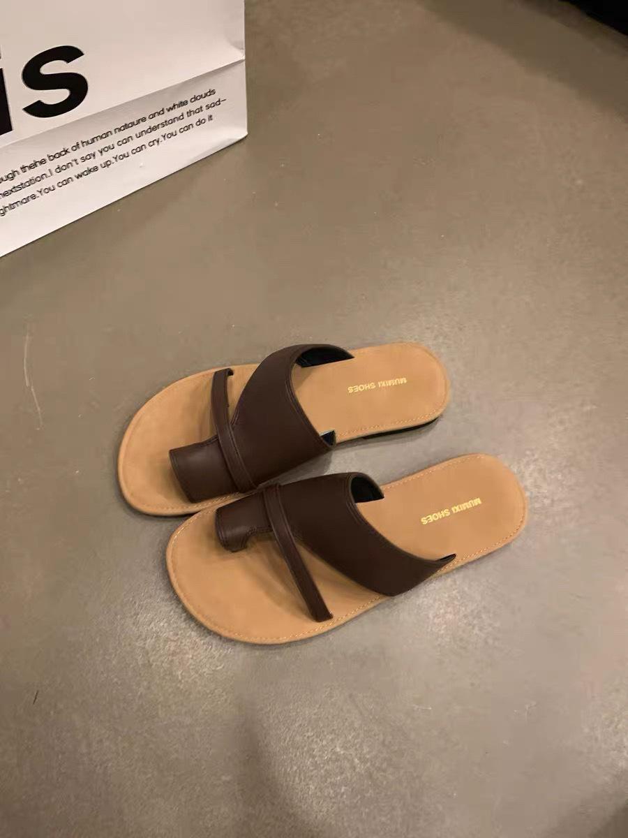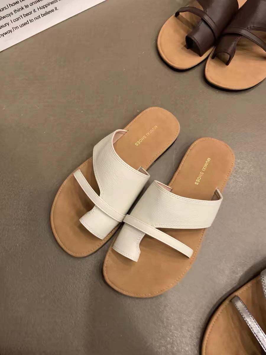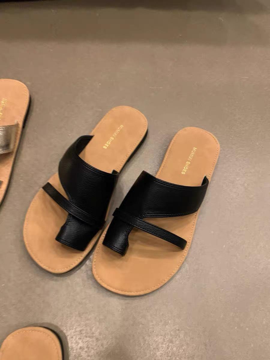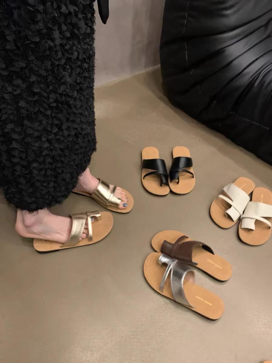 Pantuflas de Punta Cubierta de Manga Retro Estilo Coreano para Mujer Verano 2024 Nuevo Nicho Plano Suela Suave Sandalias de Playa
