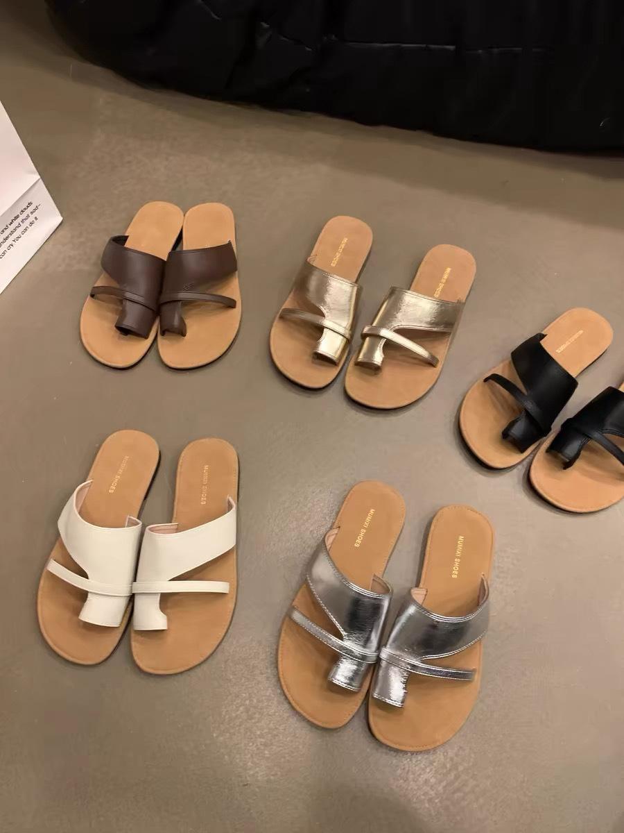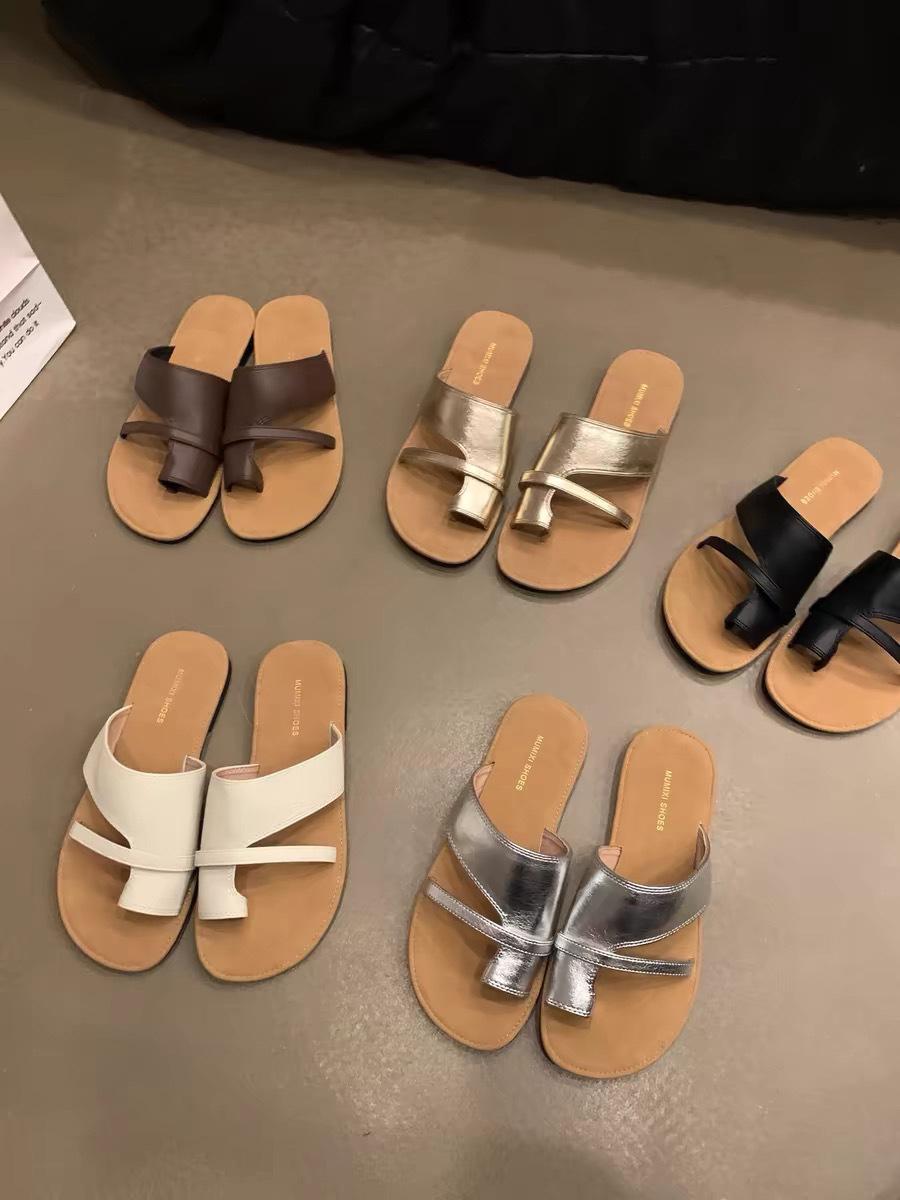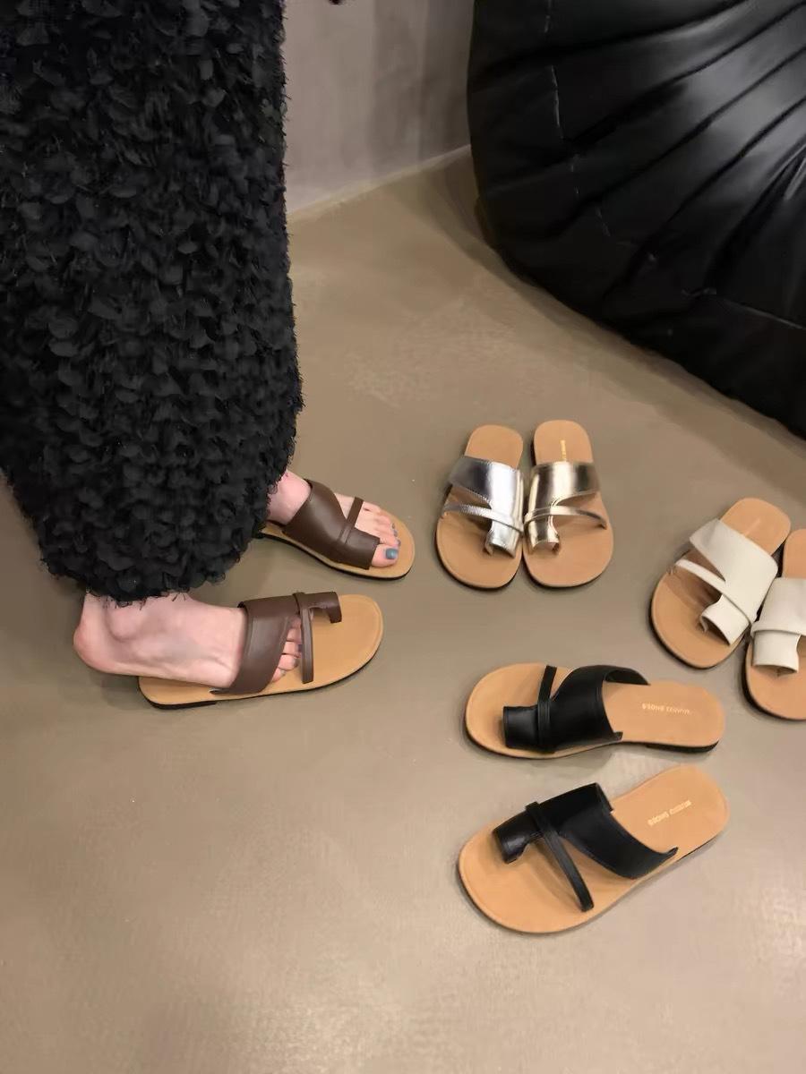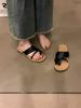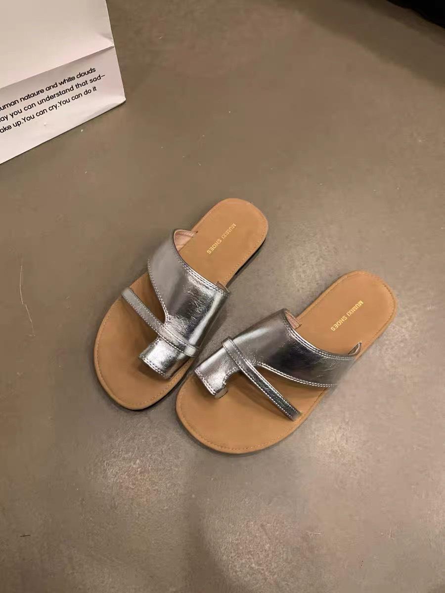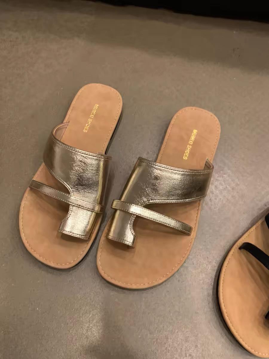 Pantuflas de Punta Cubierta de Manga Retro Estilo Coreano para Mujer Verano 2024 Nuevo Nicho Plano Suela Suave Sandalias de Playa