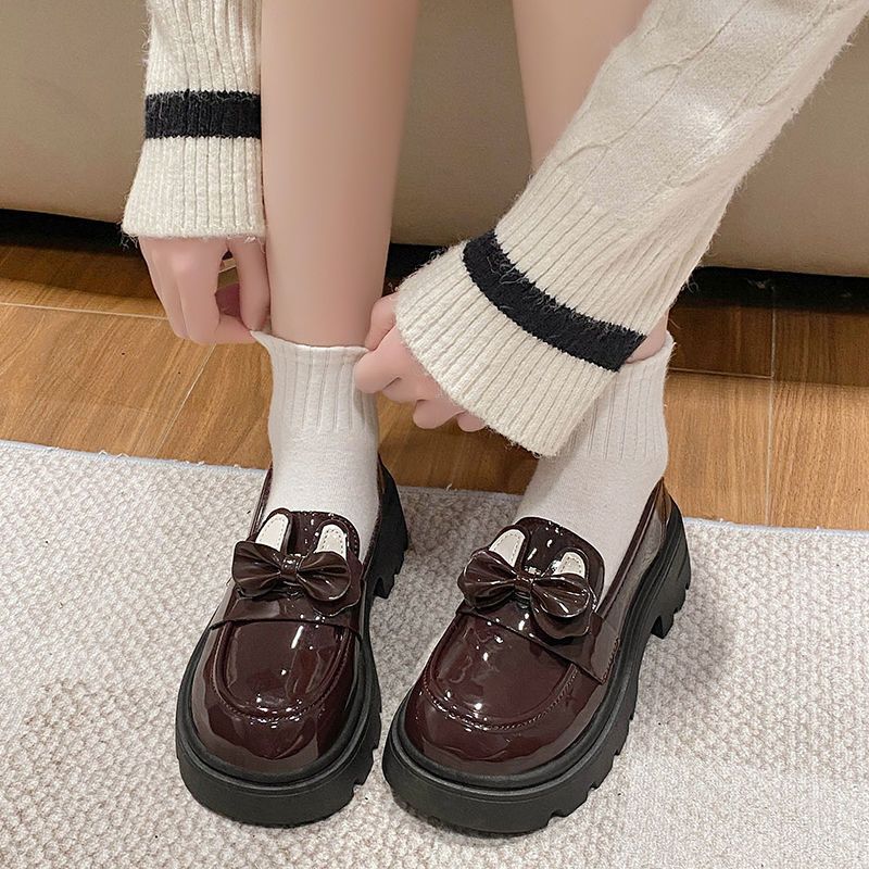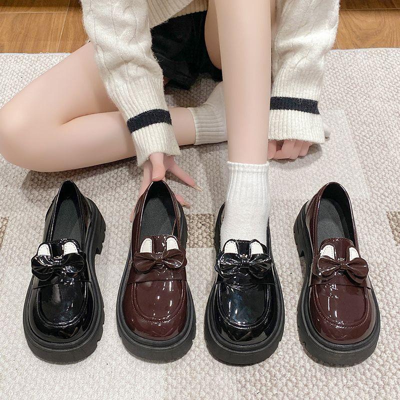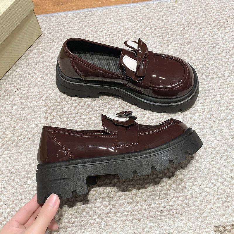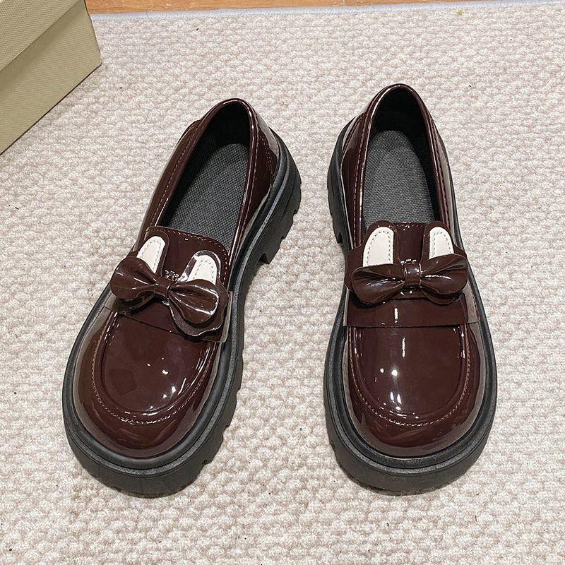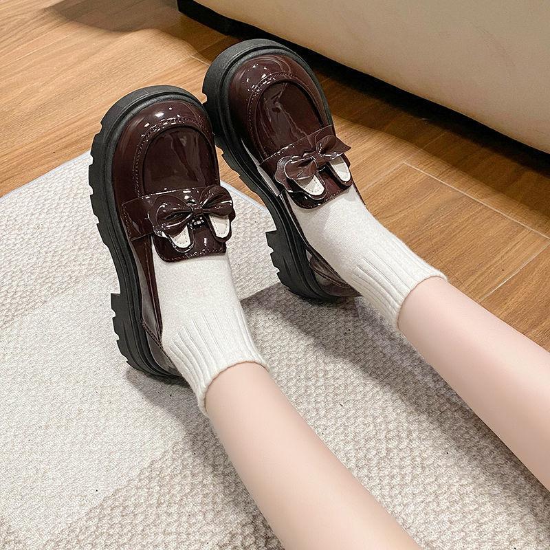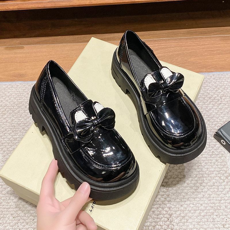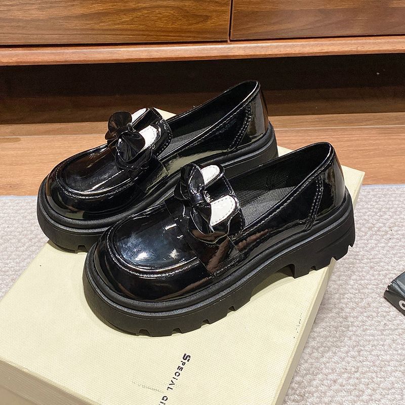 Zapatos de Cuero Pequeños Slip-On Negros con Lazo para Mujer 2025 Primavera y Otoño Nuevos Flats Loafers Estilo Británico
