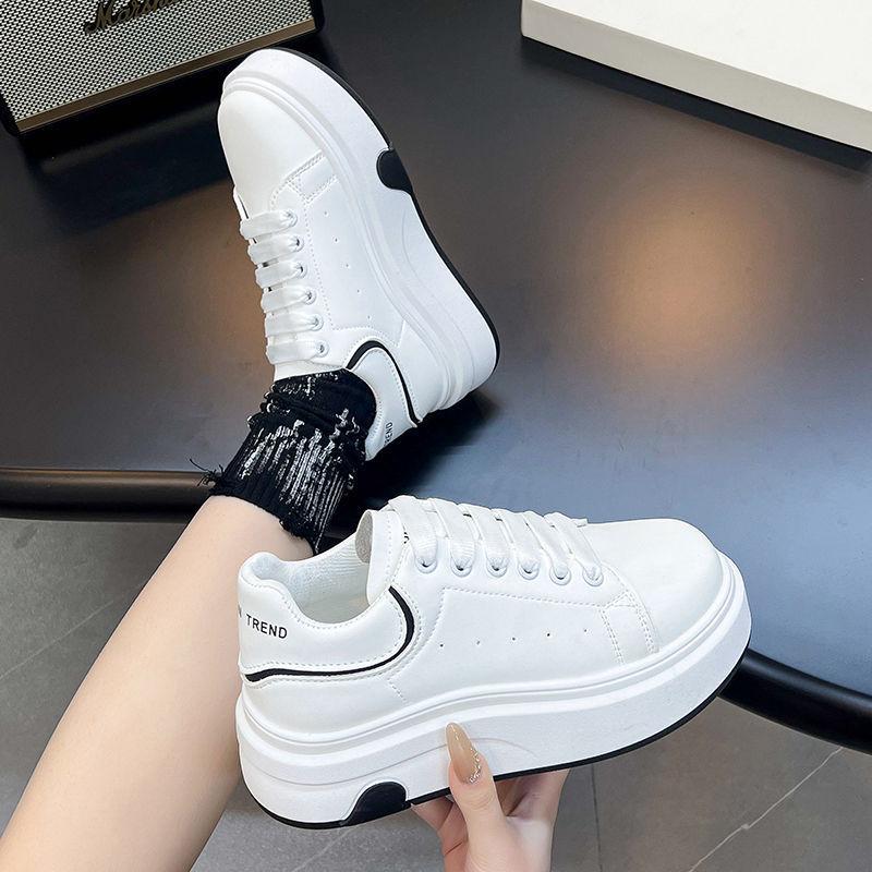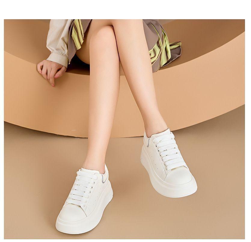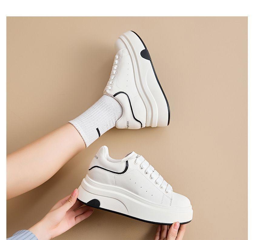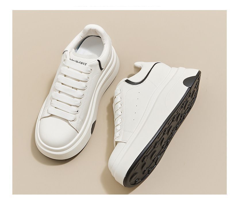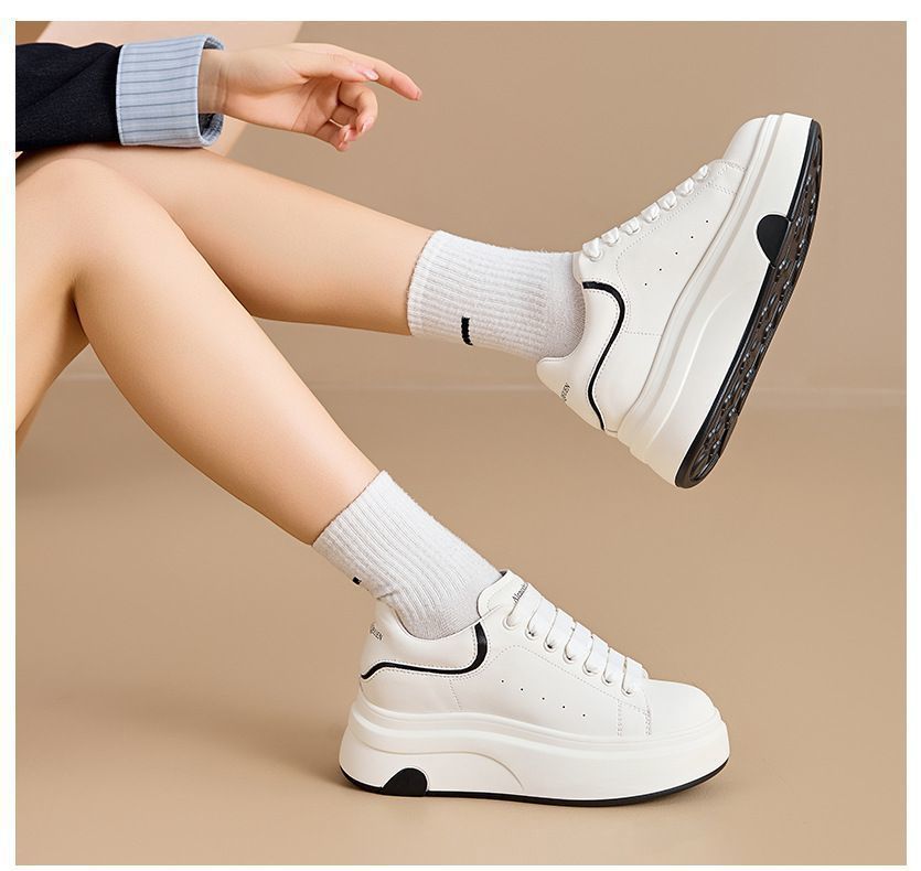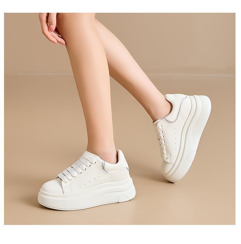 Zapatos Blancos Populares de Suela Gruesa para Mujer 2025 Primavera Nuevo Estilo Zapatillas Casuales Pequeñas para Aumentar la Altura Zapatos de Plataforma Versátiles Ins