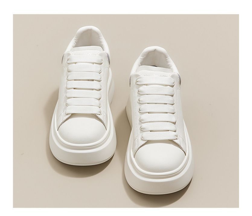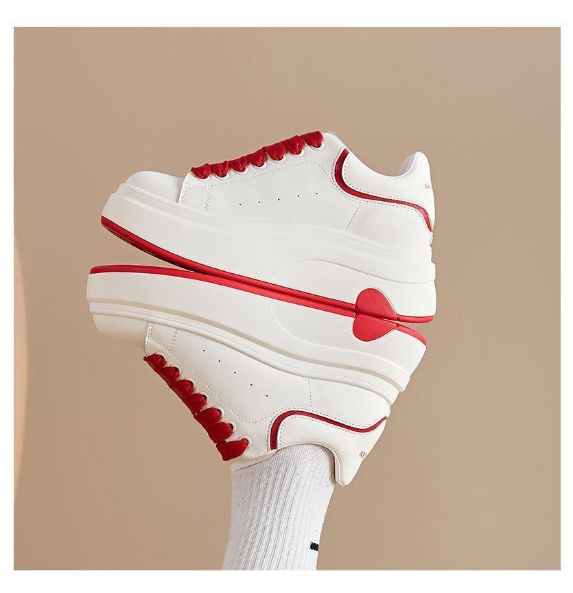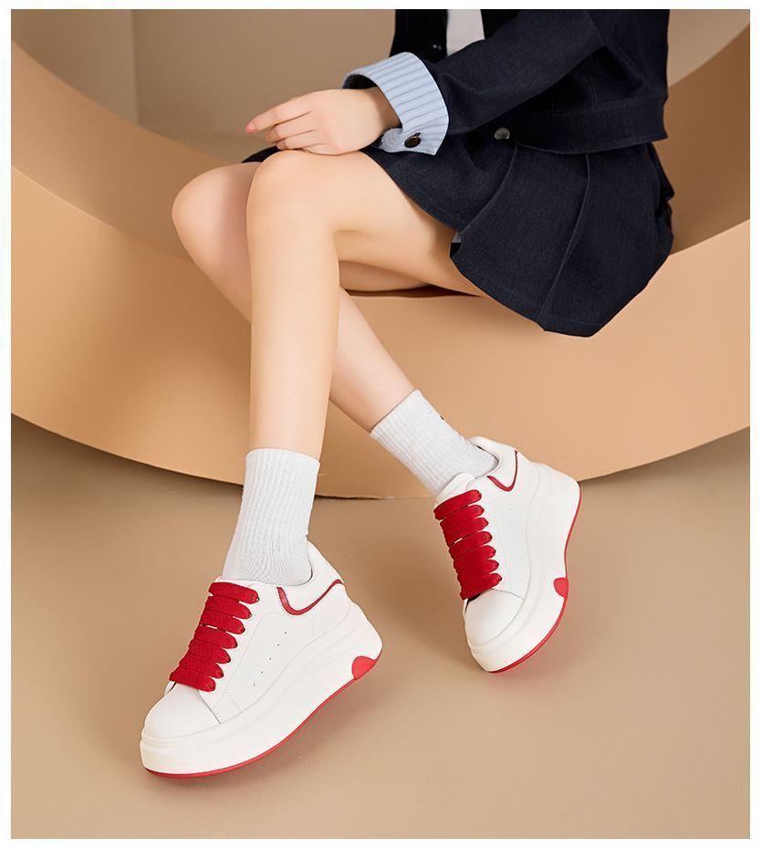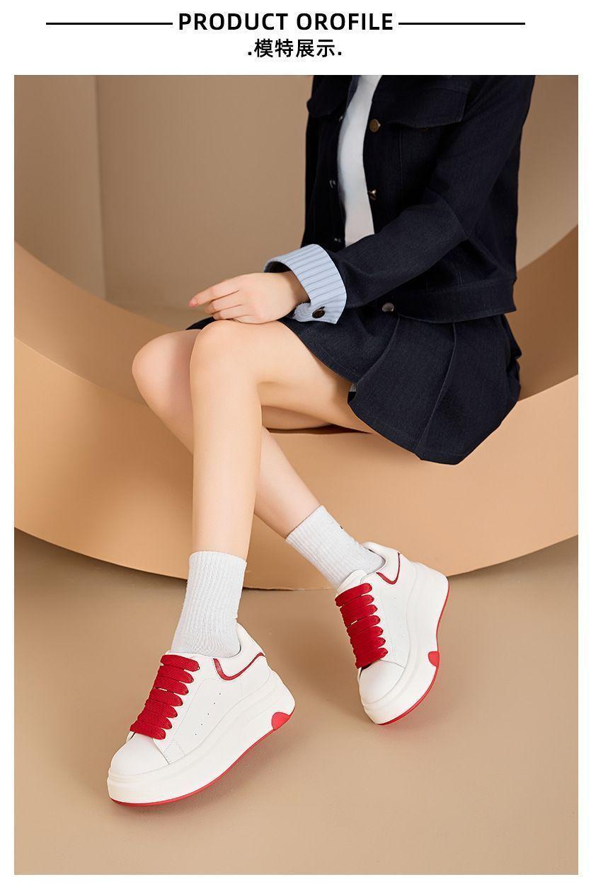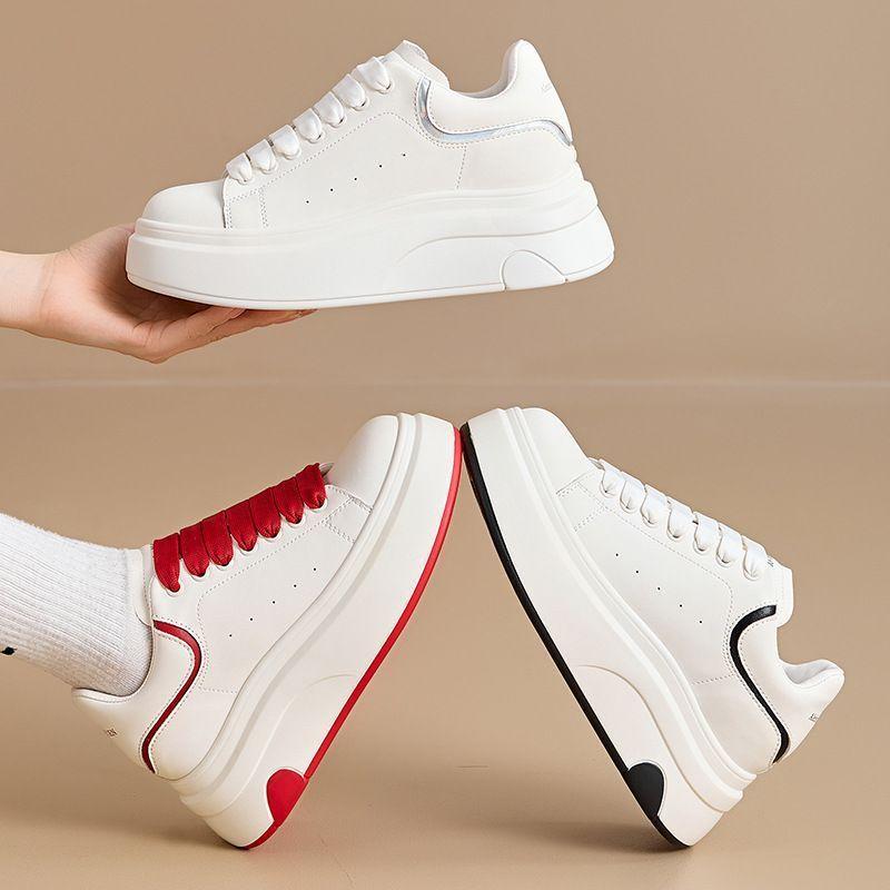 Zapatos Blancos Populares de Suela Gruesa para Mujer 2025 Primavera Nuevo Estilo Zapatillas Casuales Pequeñas para Aumentar la Altura Zapatos de Plataforma Versátiles Ins