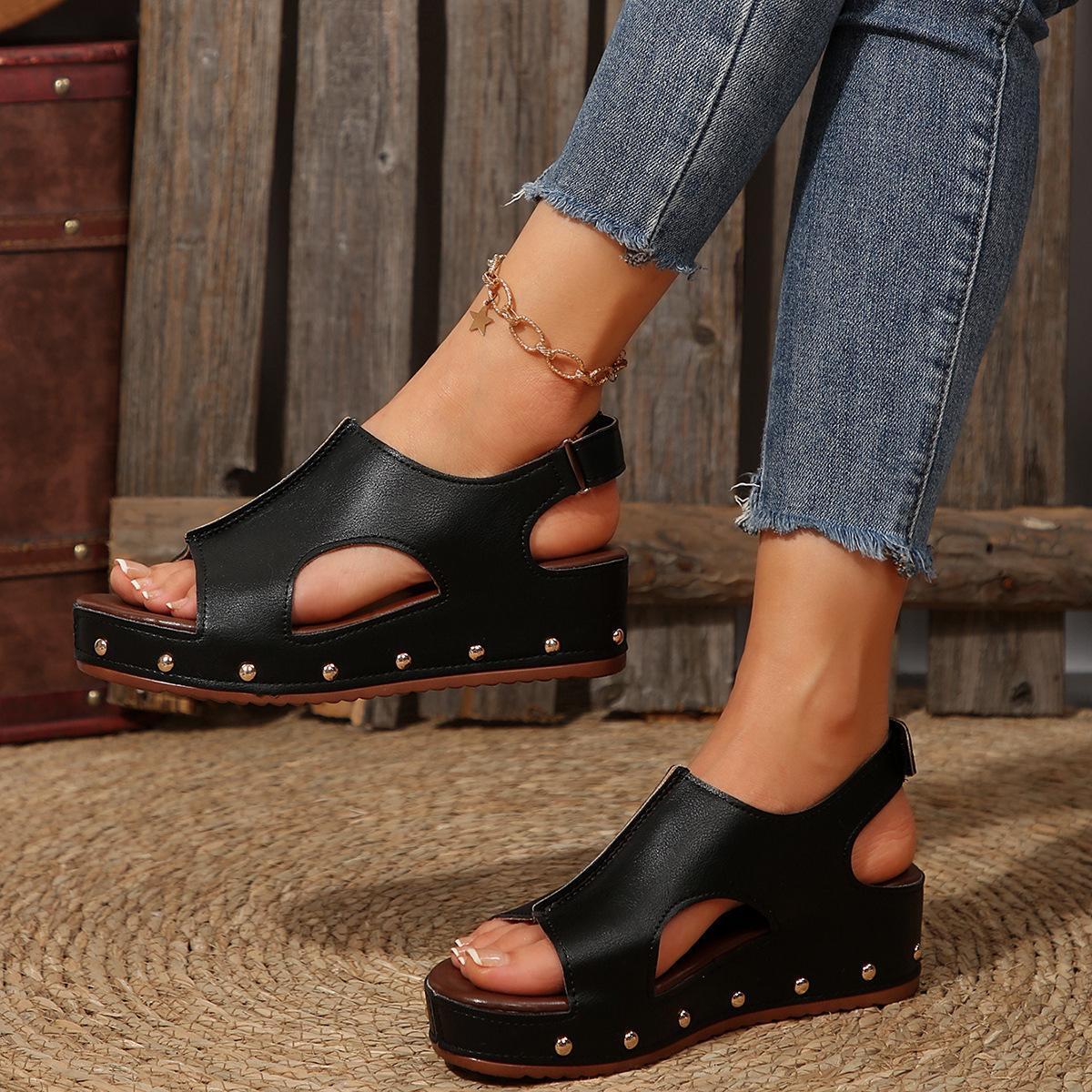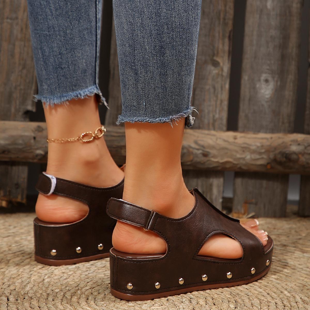 Sandalias de Velcro de Talla Grande para Comercio Exterior con Suela Gruesa en Stock 2025 Nuevas Sandalias de Verano de Boca de Pez con Suela Gruesa para Mujer Transfronterizas