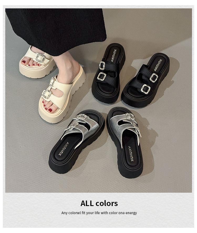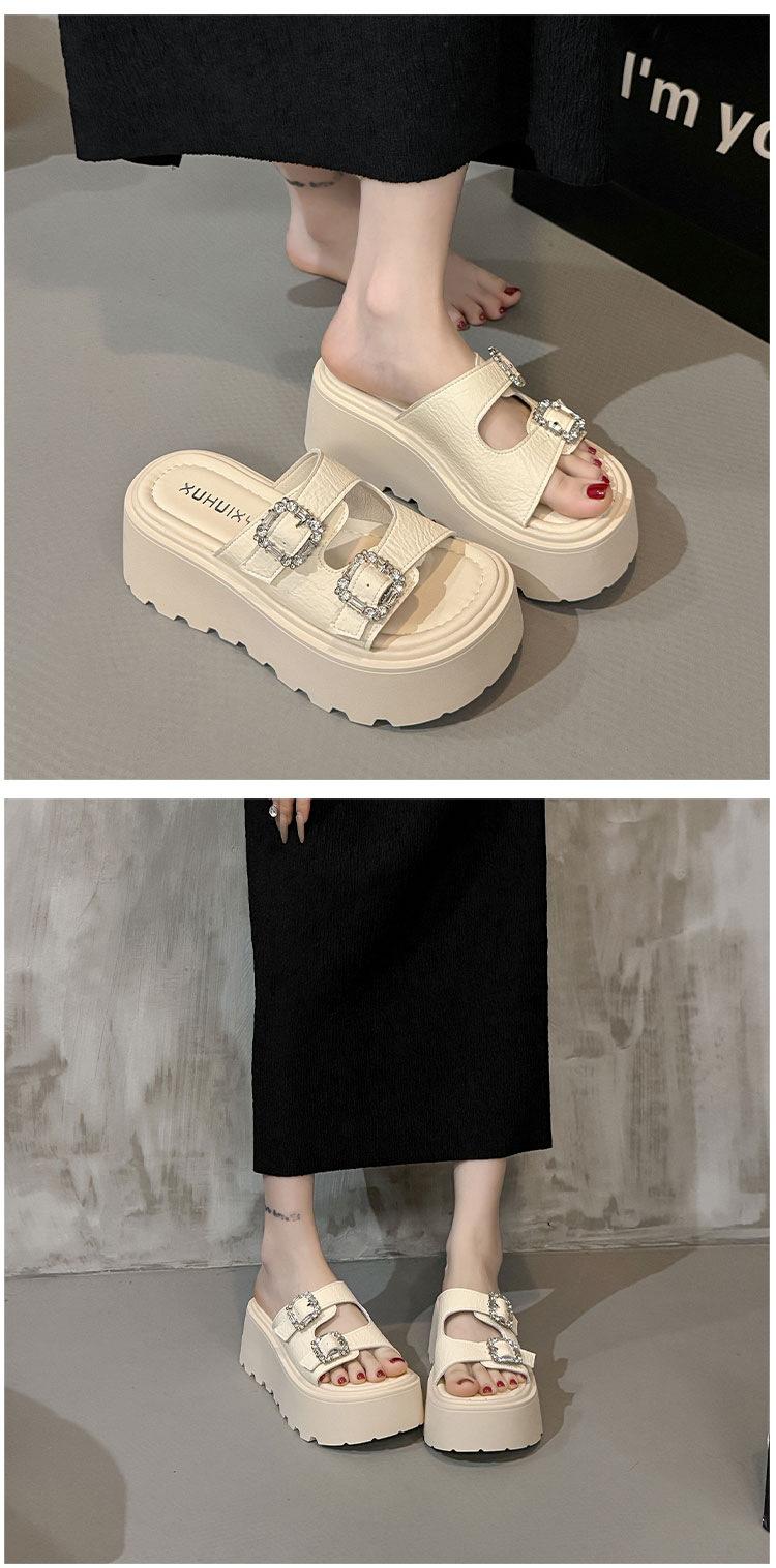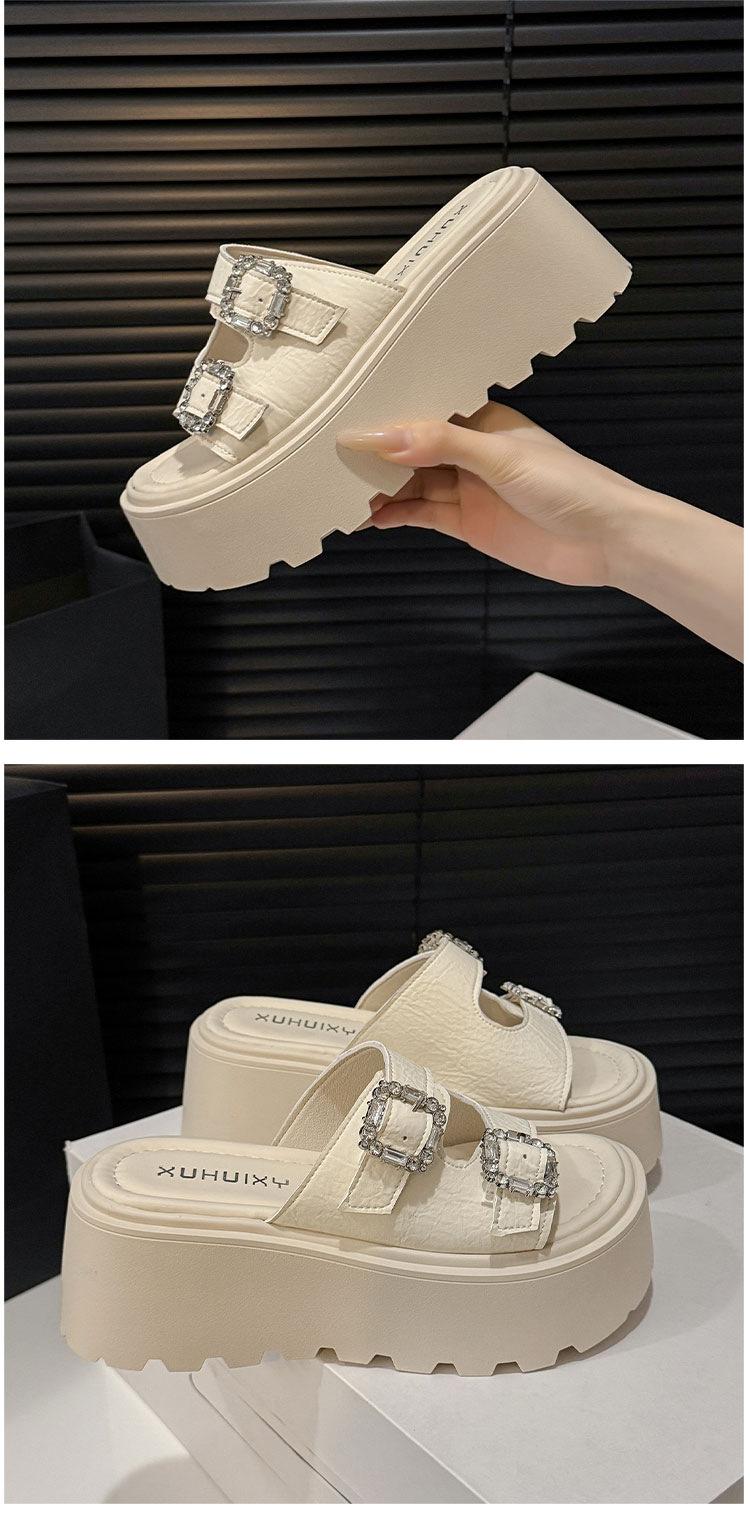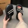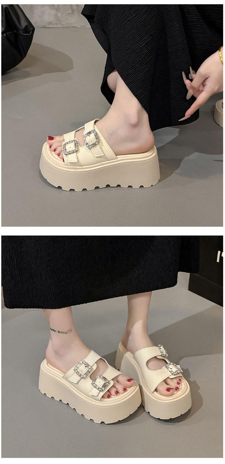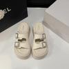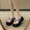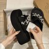 Pantuflas de Pedrería de Suela Gruesa para Mujer Verano 2025 Nuevo Estilo Pantuflas de Plataforma Pequeña para Aumentar la Altura para Exterior Pantuflas de Playa