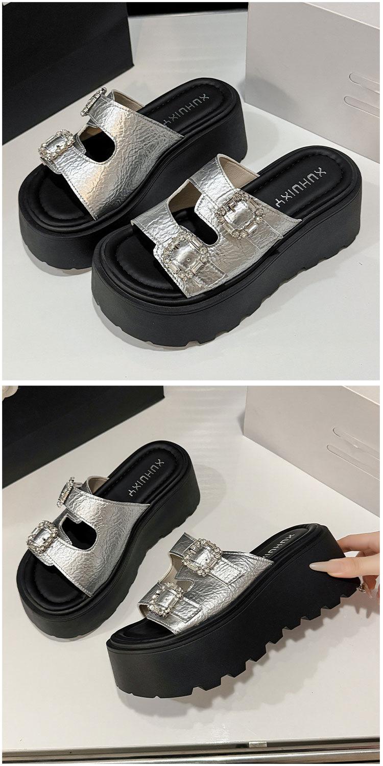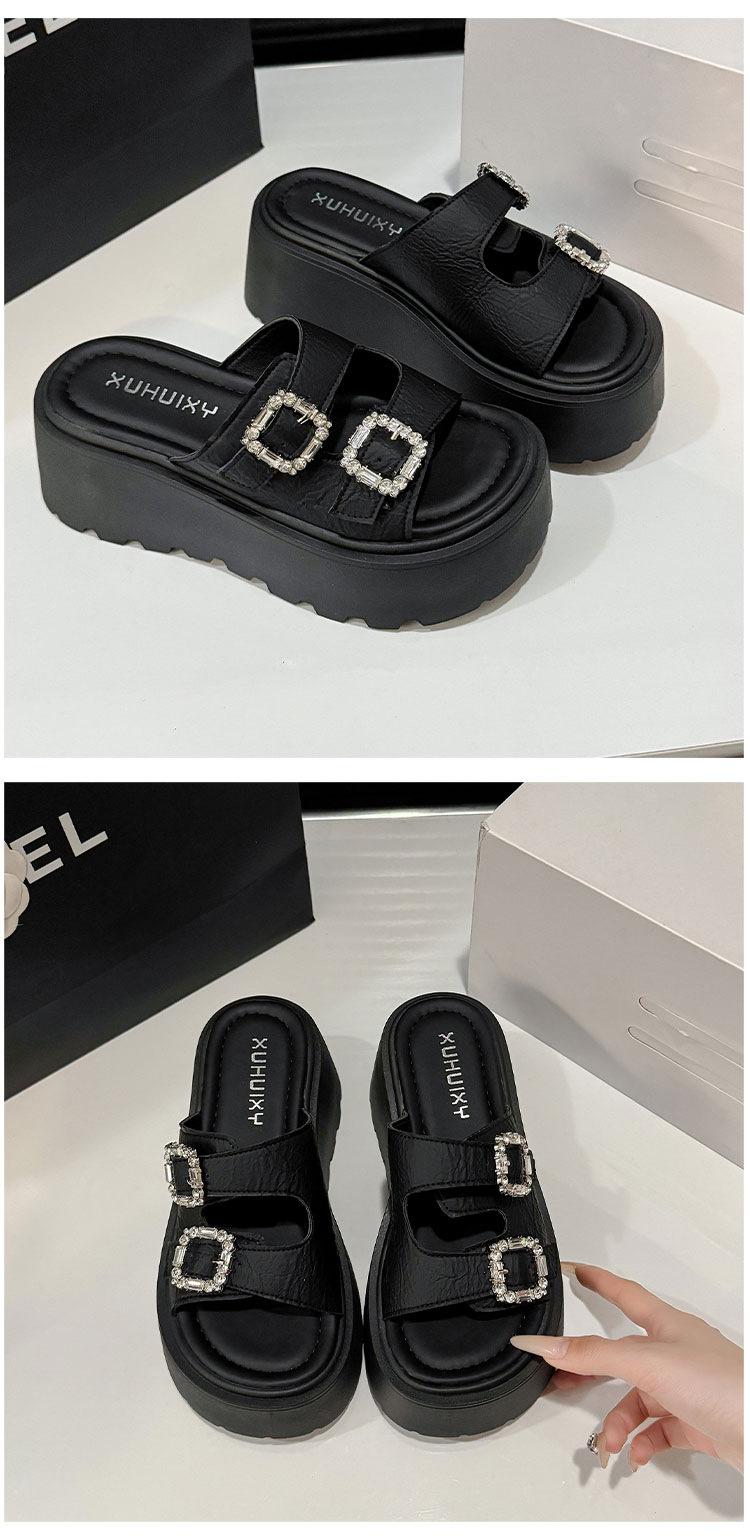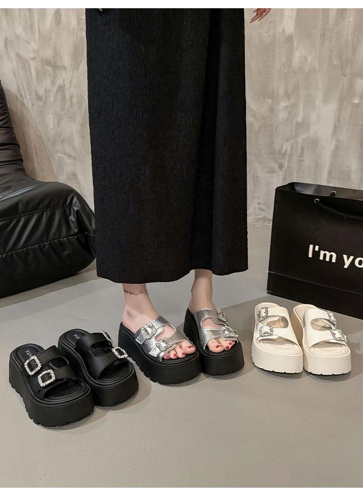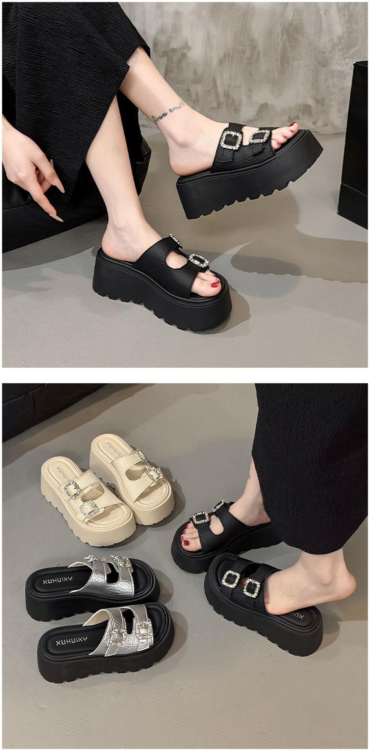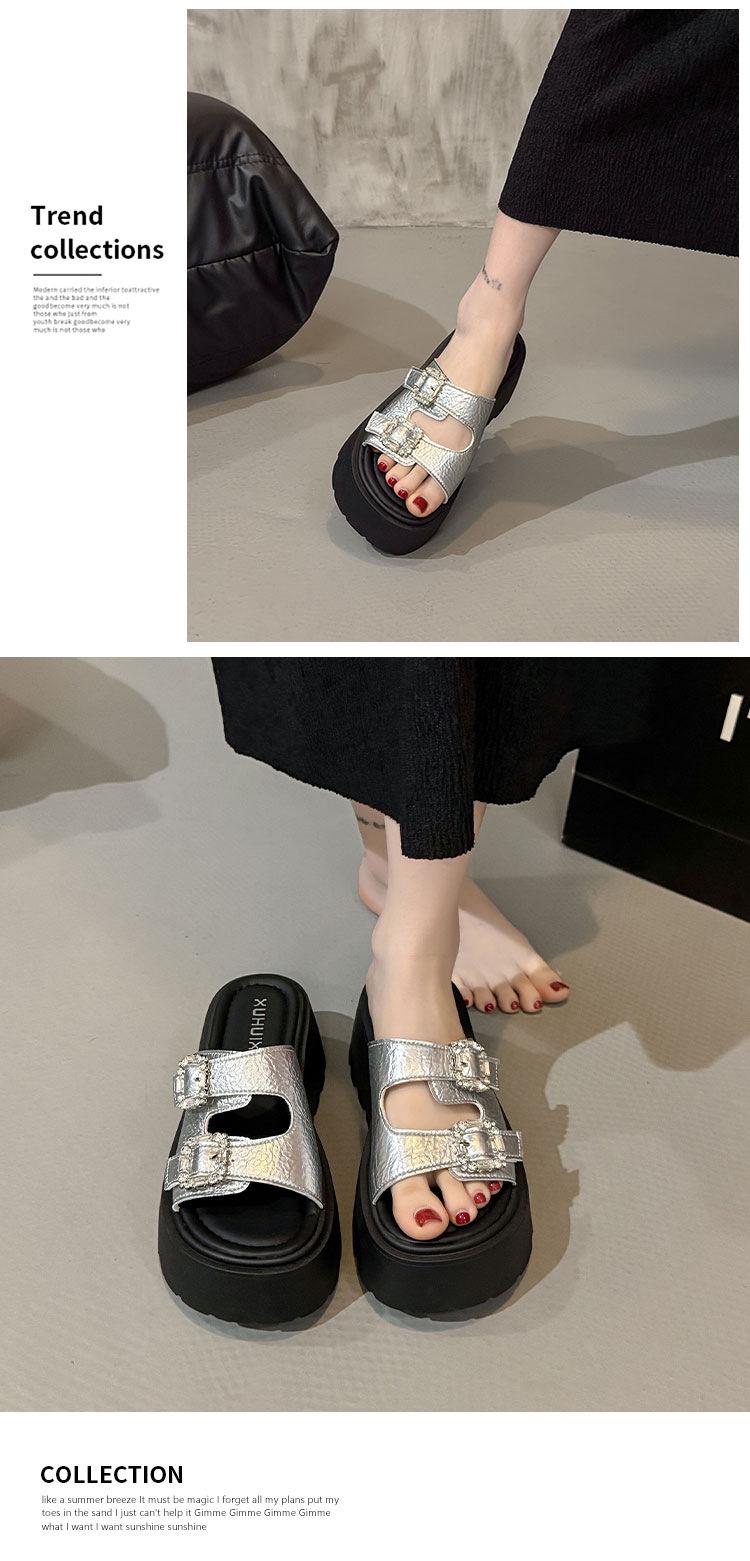 Pantuflas de Pedrería de Suela Gruesa para Mujer Verano 2025 Nuevo Estilo Pantuflas de Plataforma Pequeña para Aumentar la Altura para Exterior Pantuflas de Playa