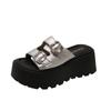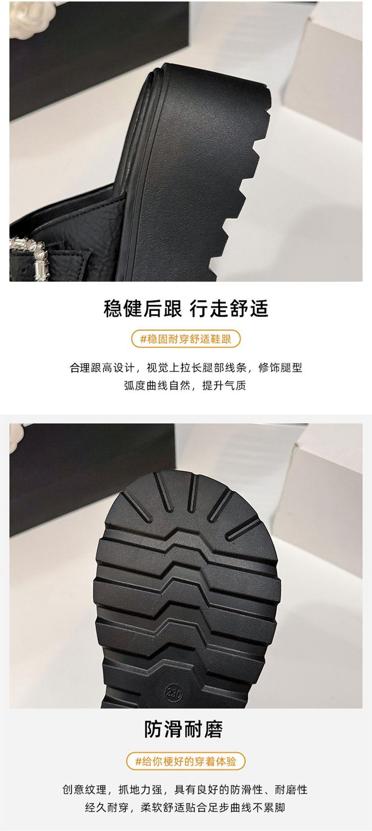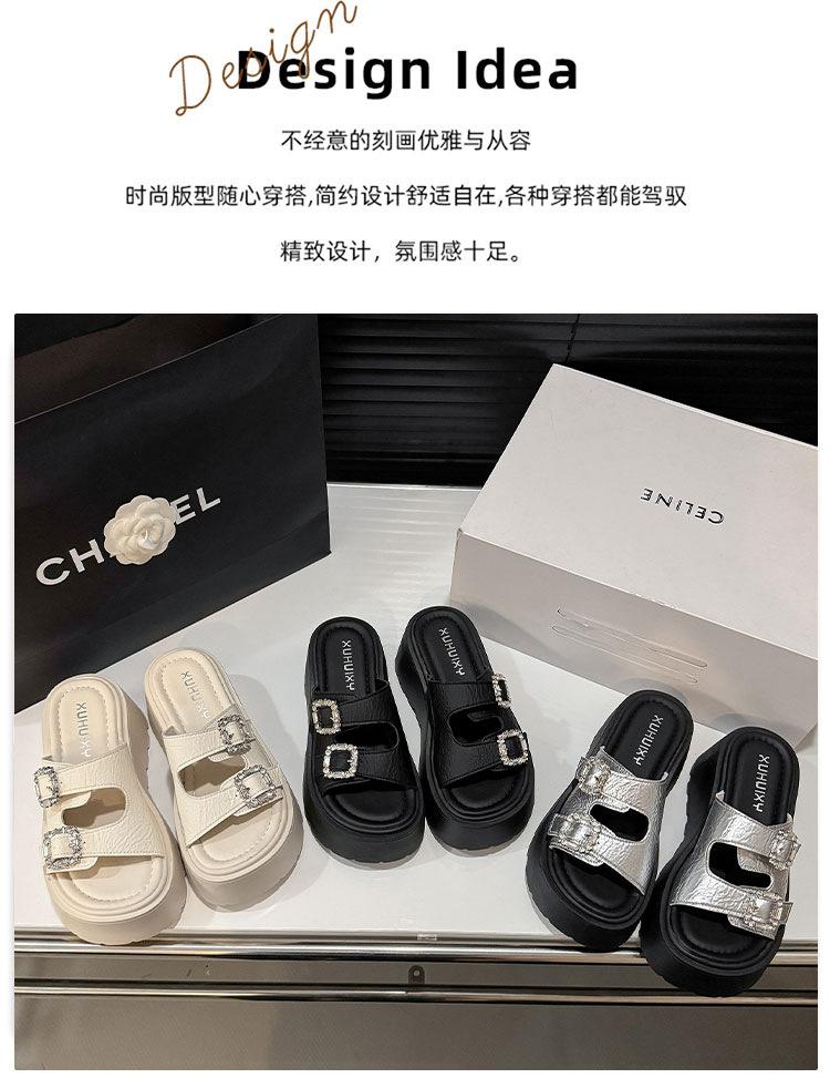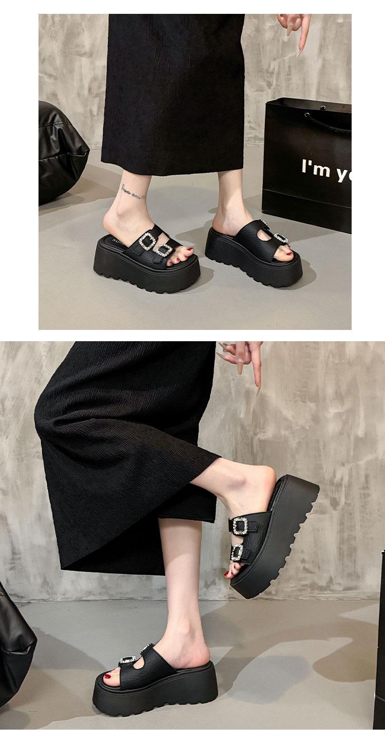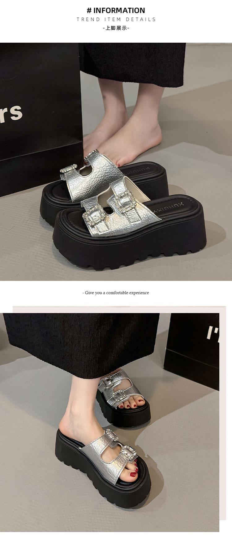 Pantuflas de Pedrería de Suela Gruesa para Mujer Verano 2025 Nuevo Estilo Pantuflas de Plataforma Pequeña para Aumentar la Altura para Exterior Pantuflas de Playa