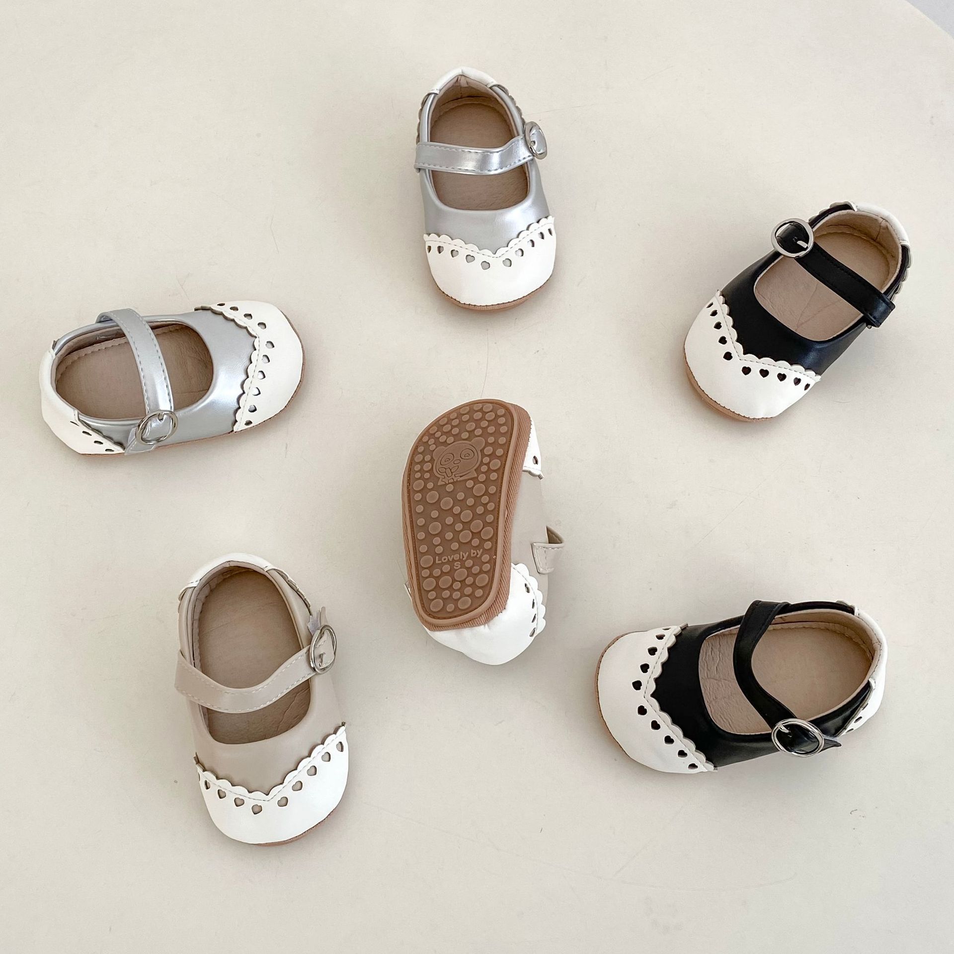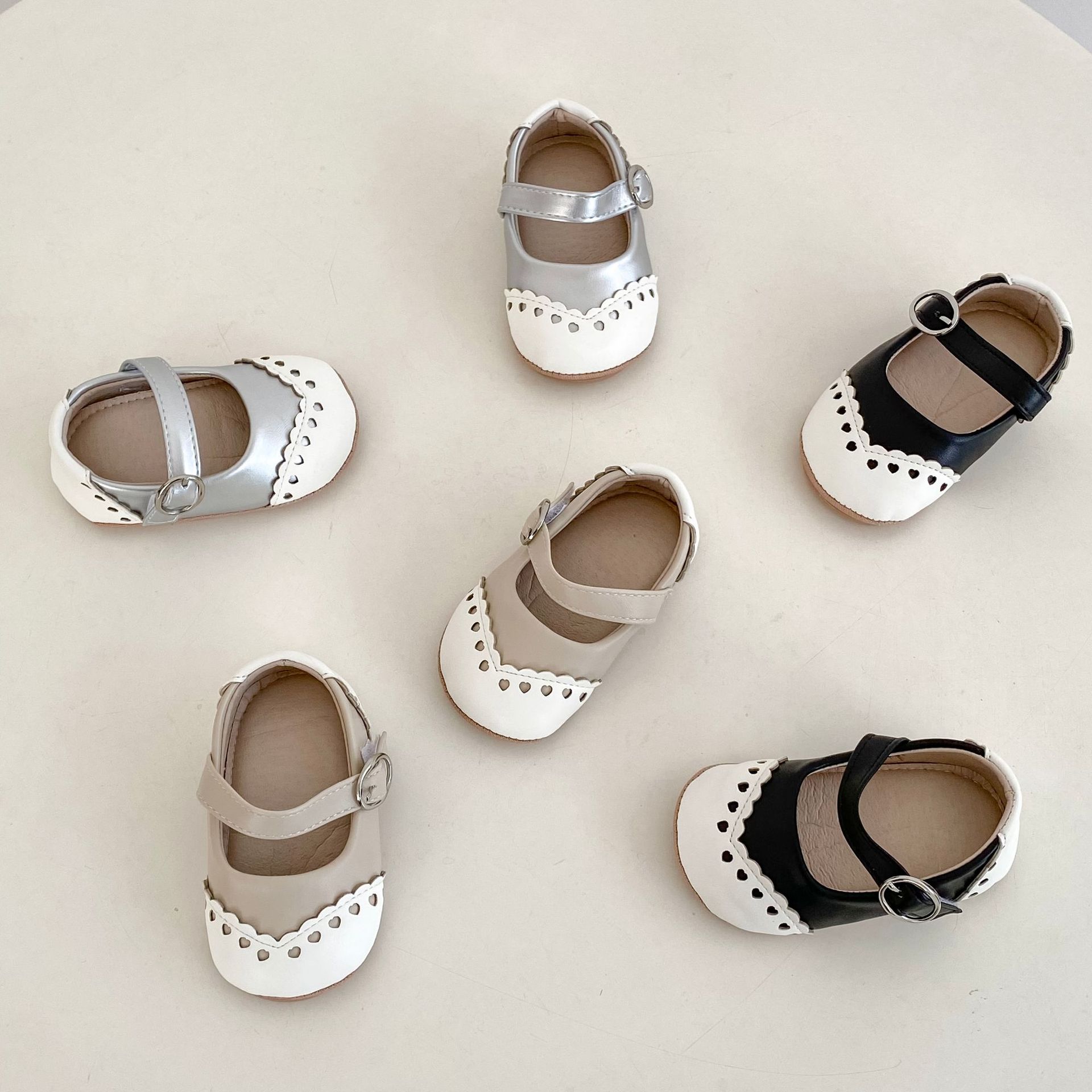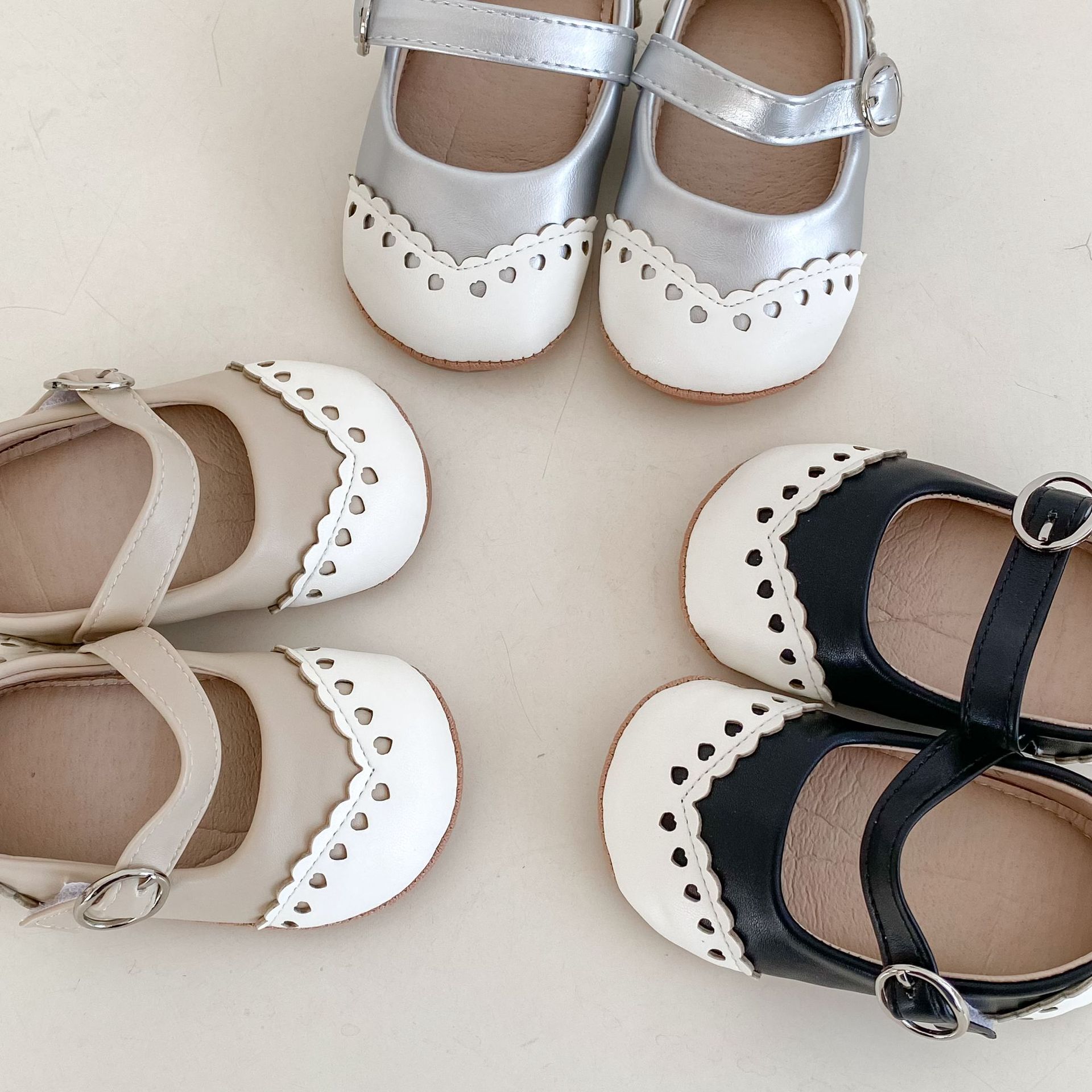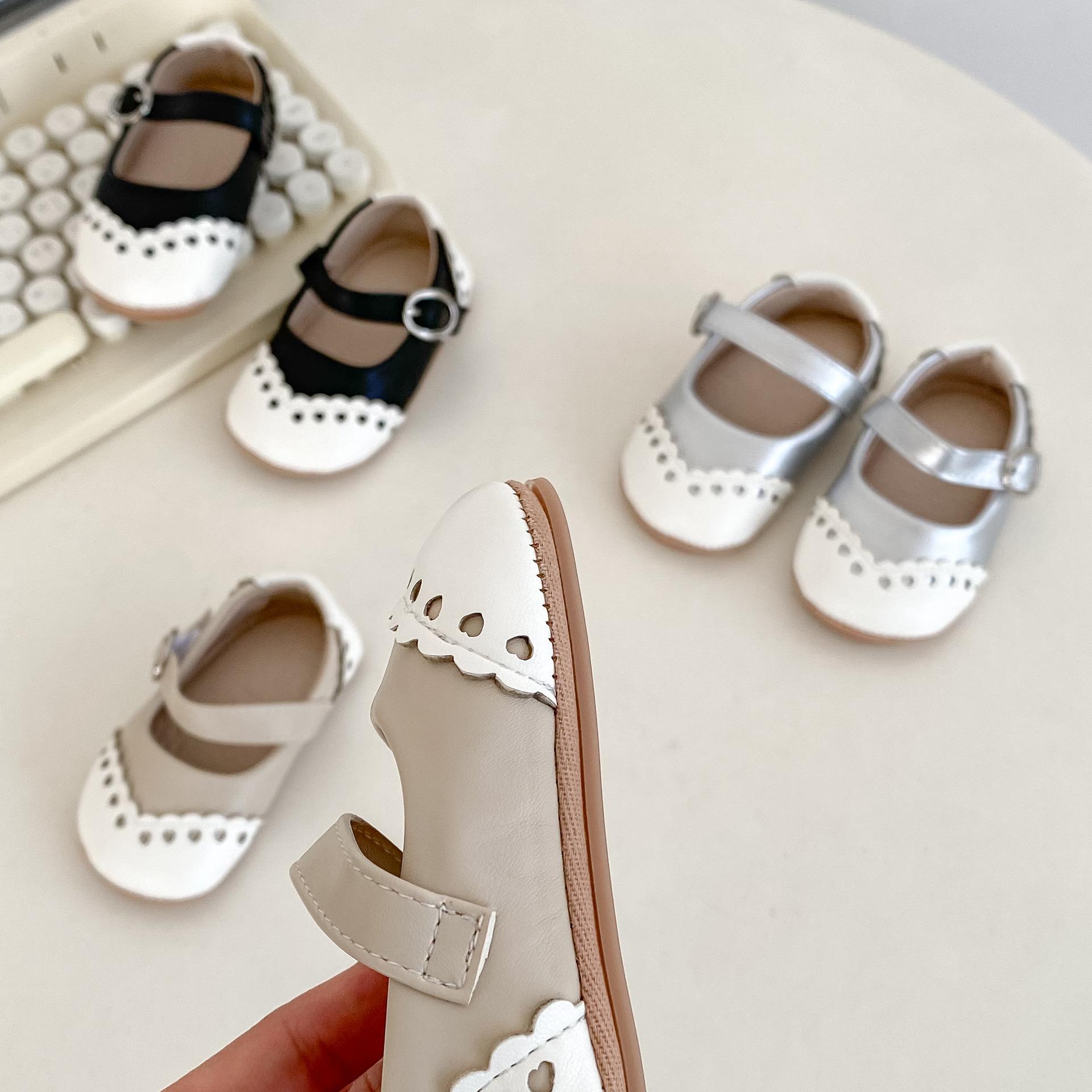 Zapatos de Cuero Pequeños para Bebé Zapatos Planos de Contraste de Hoja Calada de Moda para Niña Zapatos de Princesa para Niña Zapatos de Suela Blanda para Niño Pequeño