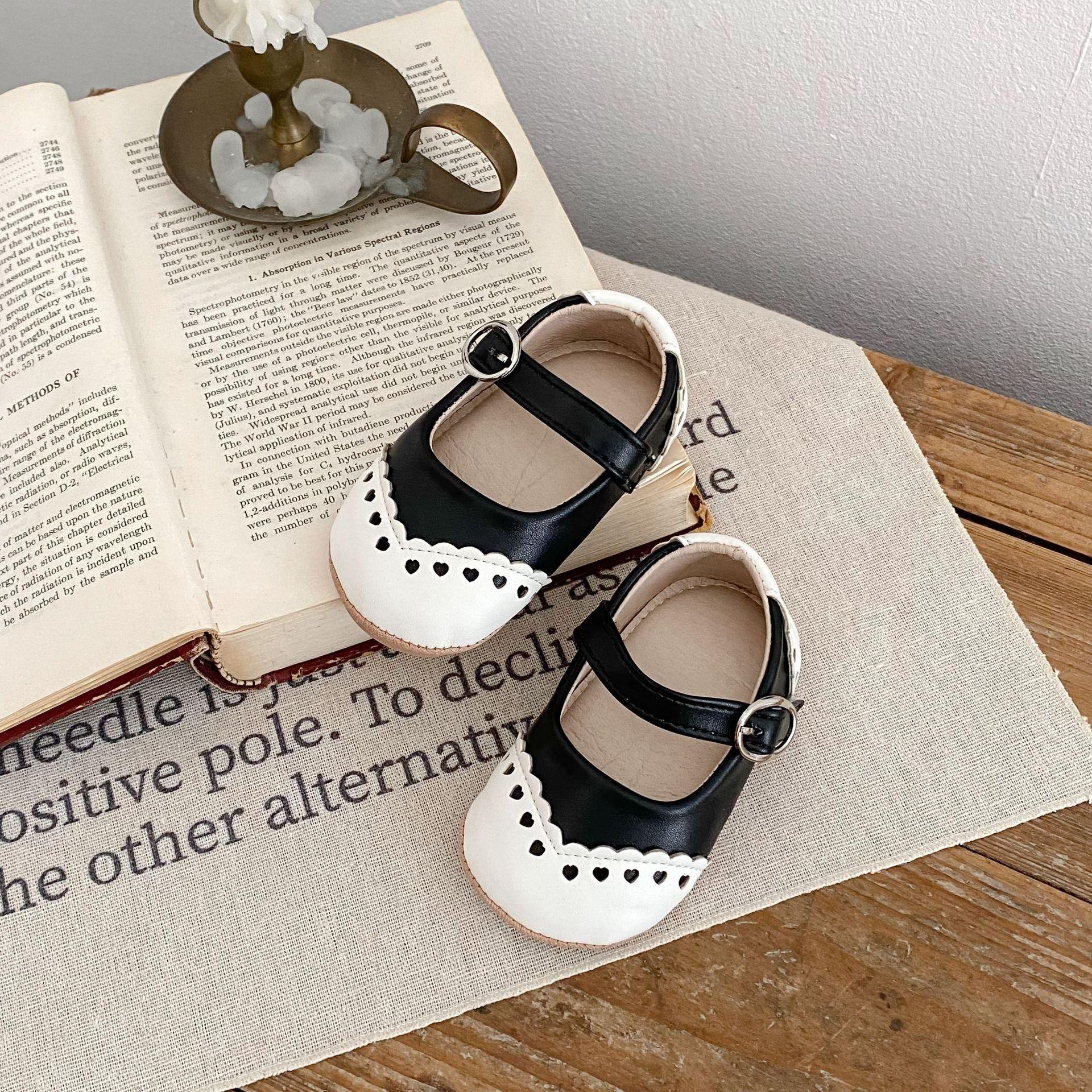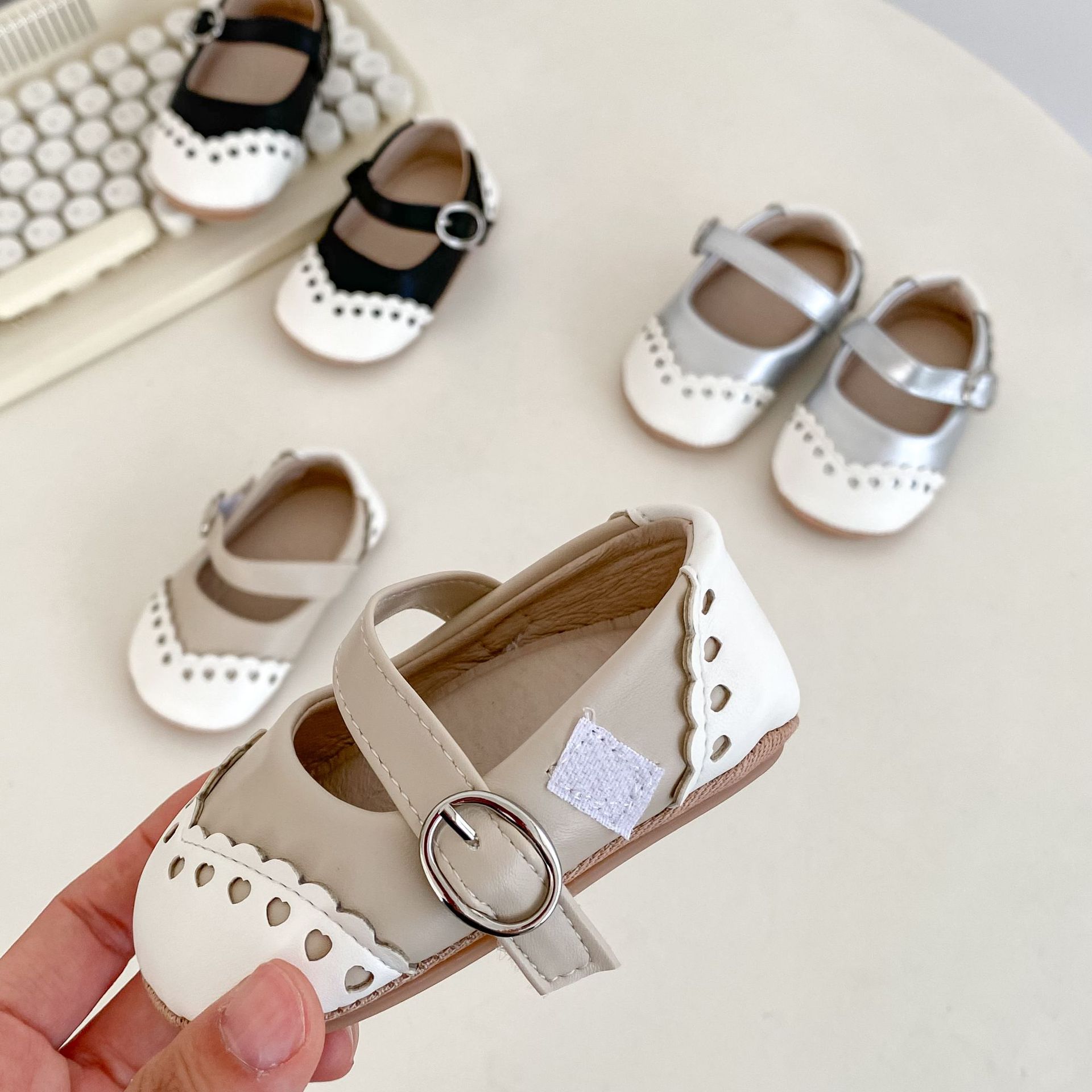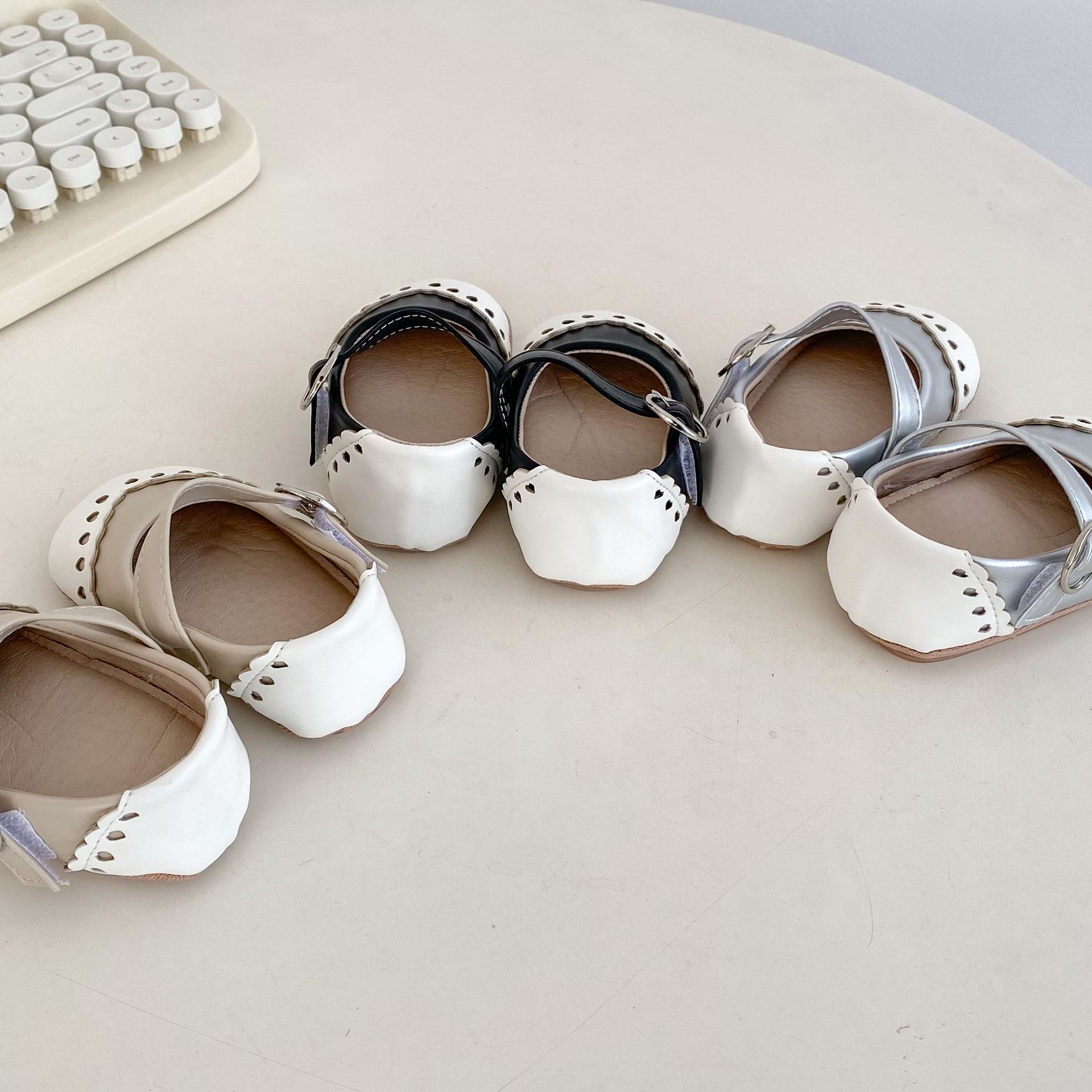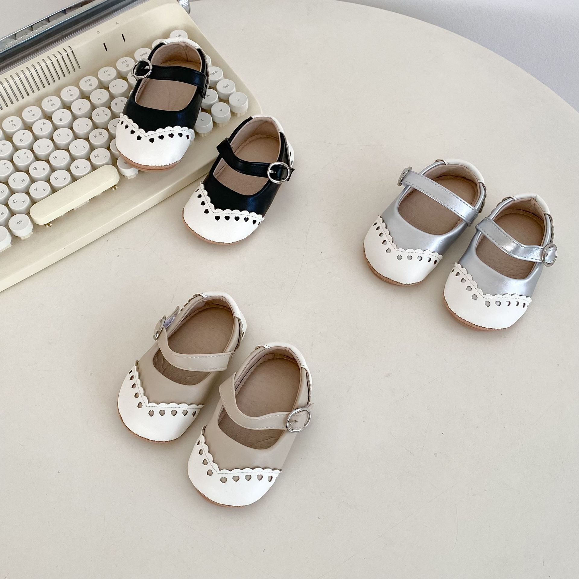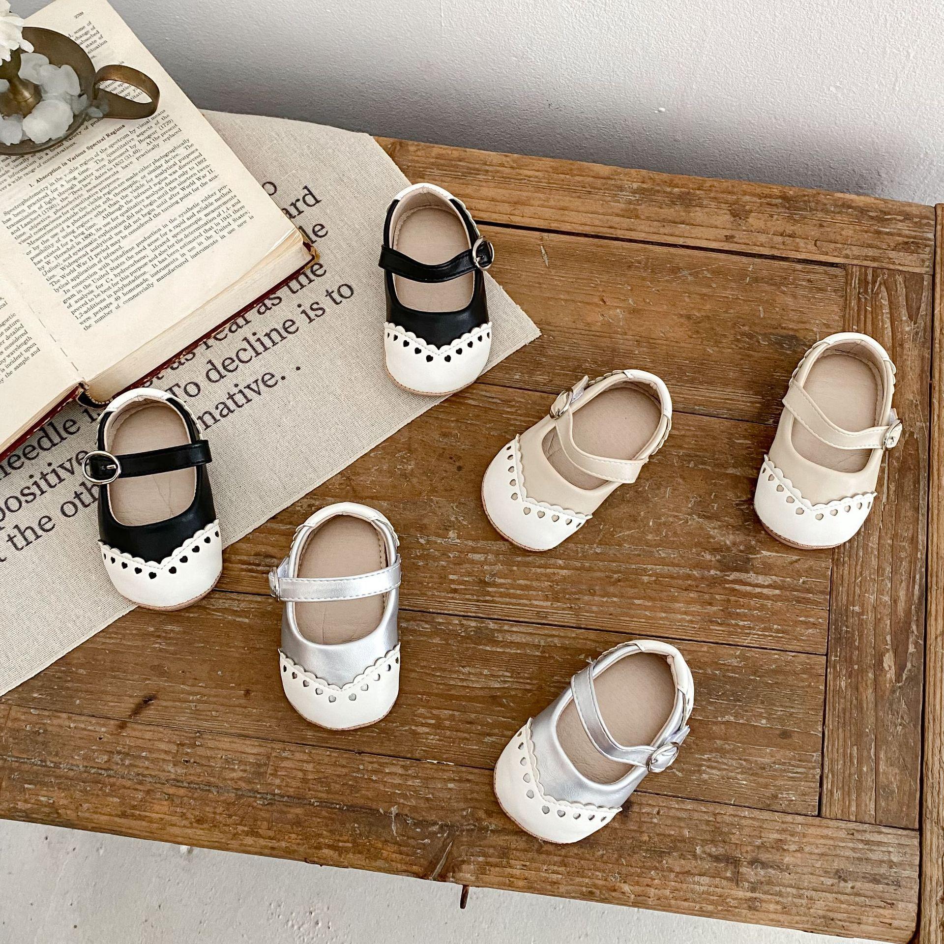 Zapatos de Cuero Pequeños para Bebé Zapatos Planos de Contraste de Hoja Calada de Moda para Niña Zapatos de Princesa para Niña Zapatos de Suela Blanda para Niño Pequeño