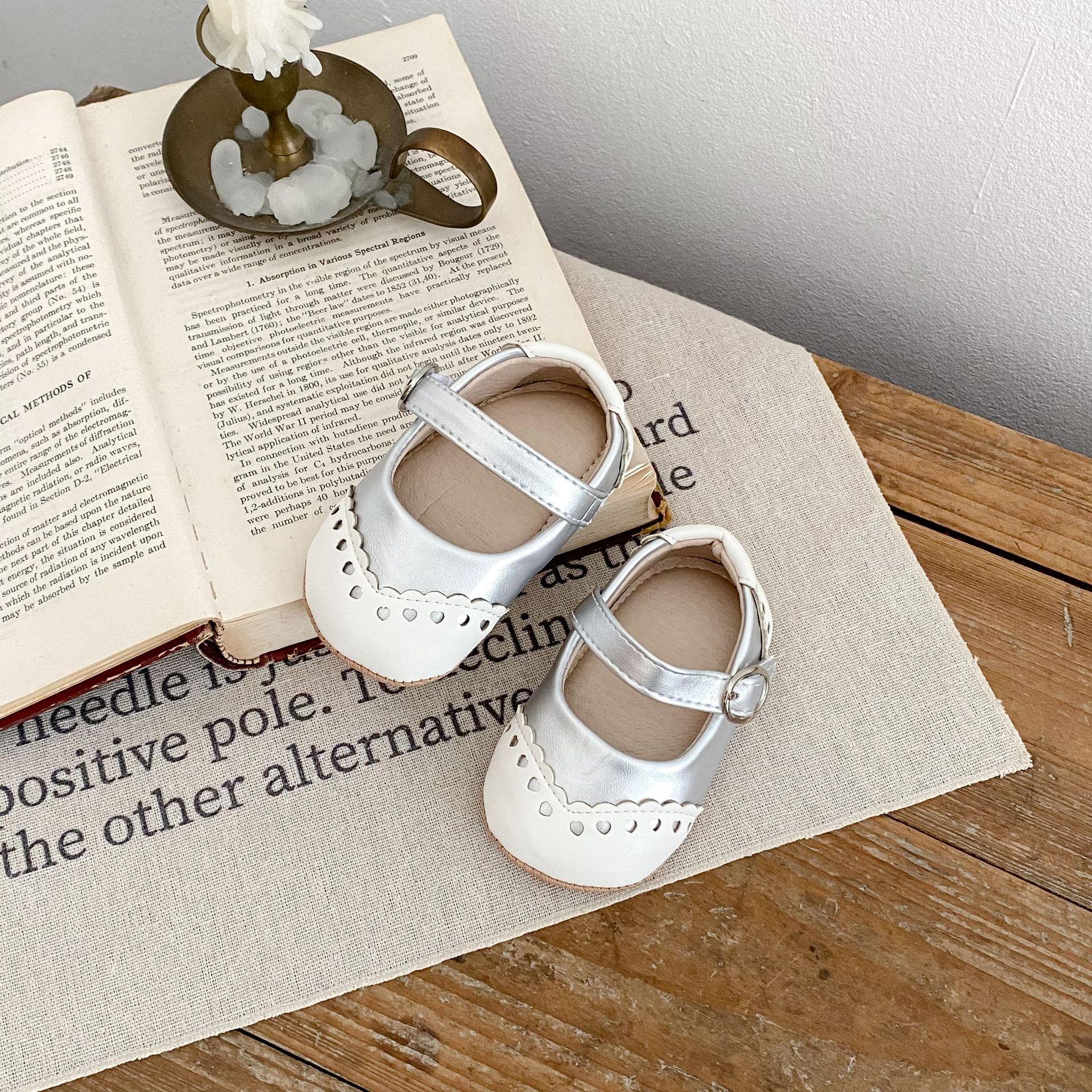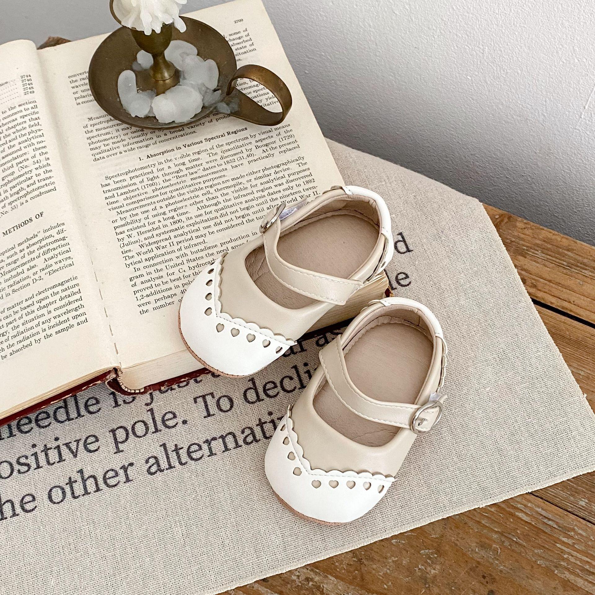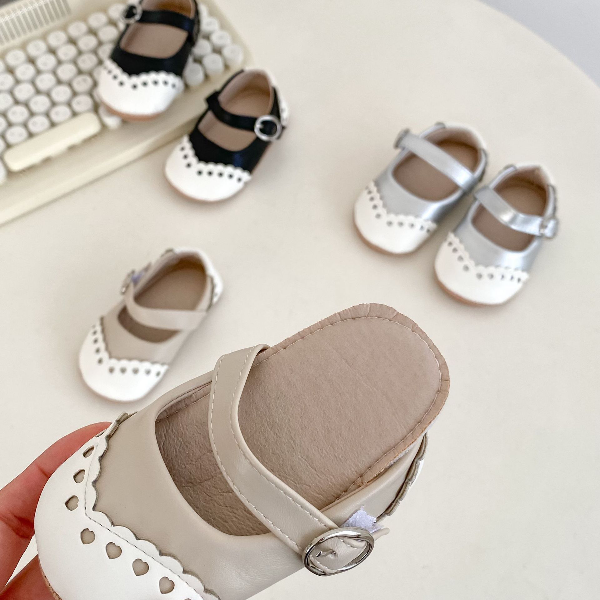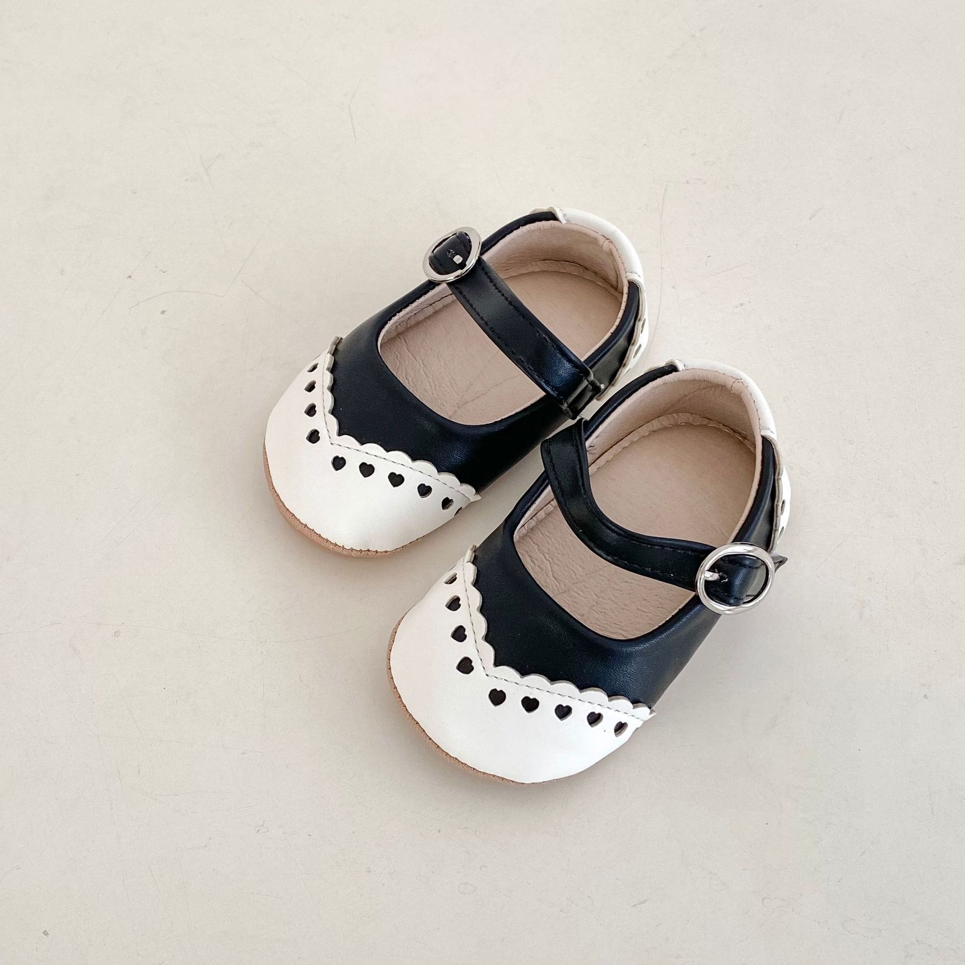 Zapatos de Cuero Pequeños para Bebé Zapatos Planos de Contraste de Hoja Calada de Moda para Niña Zapatos de Princesa para Niña Zapatos de Suela Blanda para Niño Pequeño