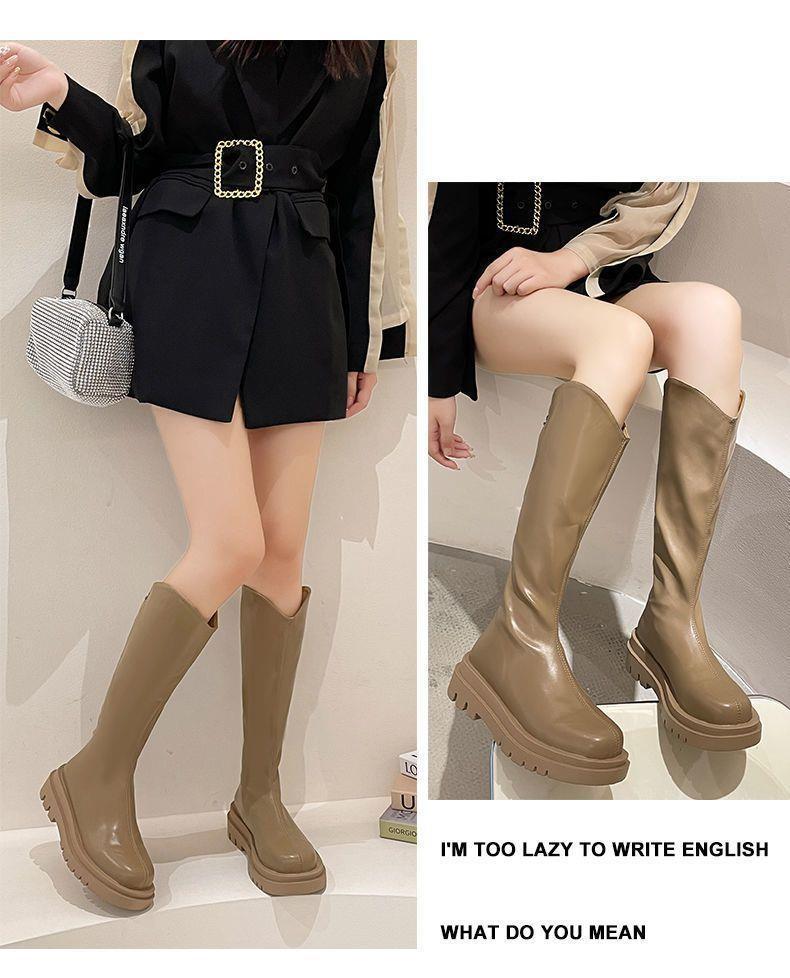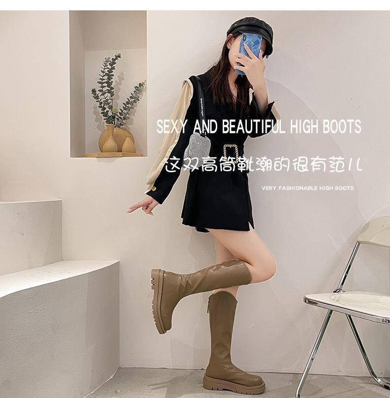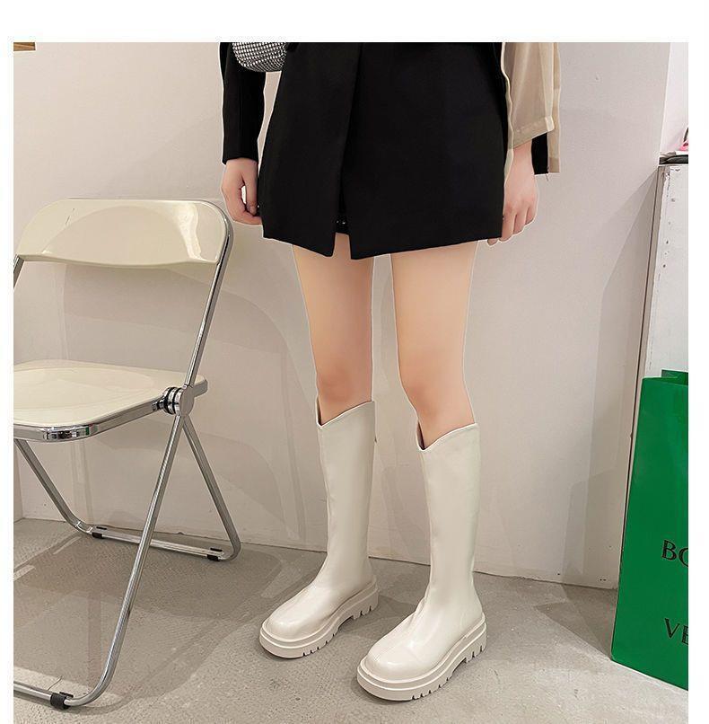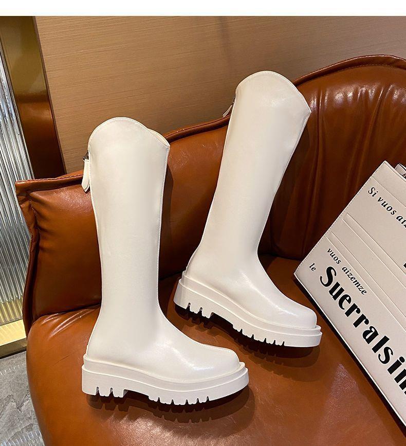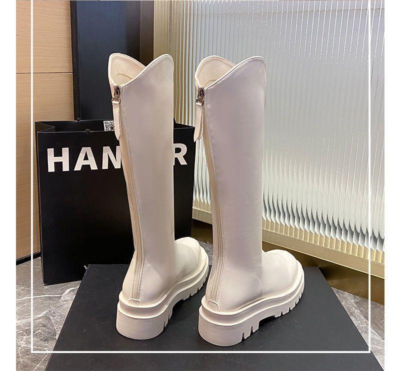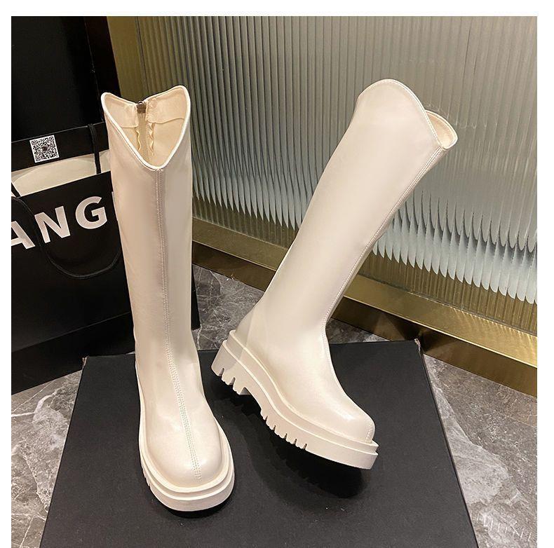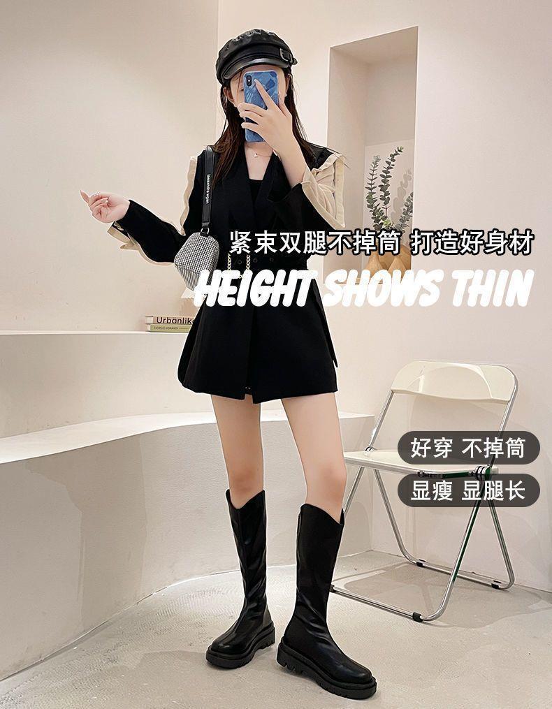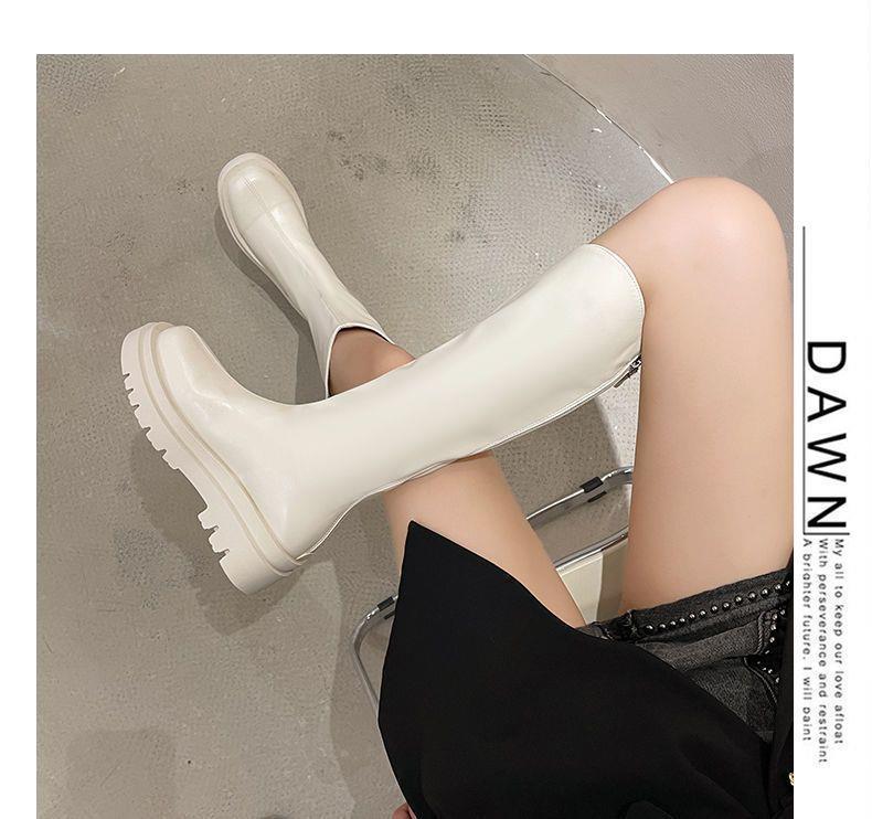 2022 otoño e invierno Nueva Moda botas delgadas de felpa roja de red con cremallera de fondo grueso pero botas largas hasta la rodilla botas altas de Caballero