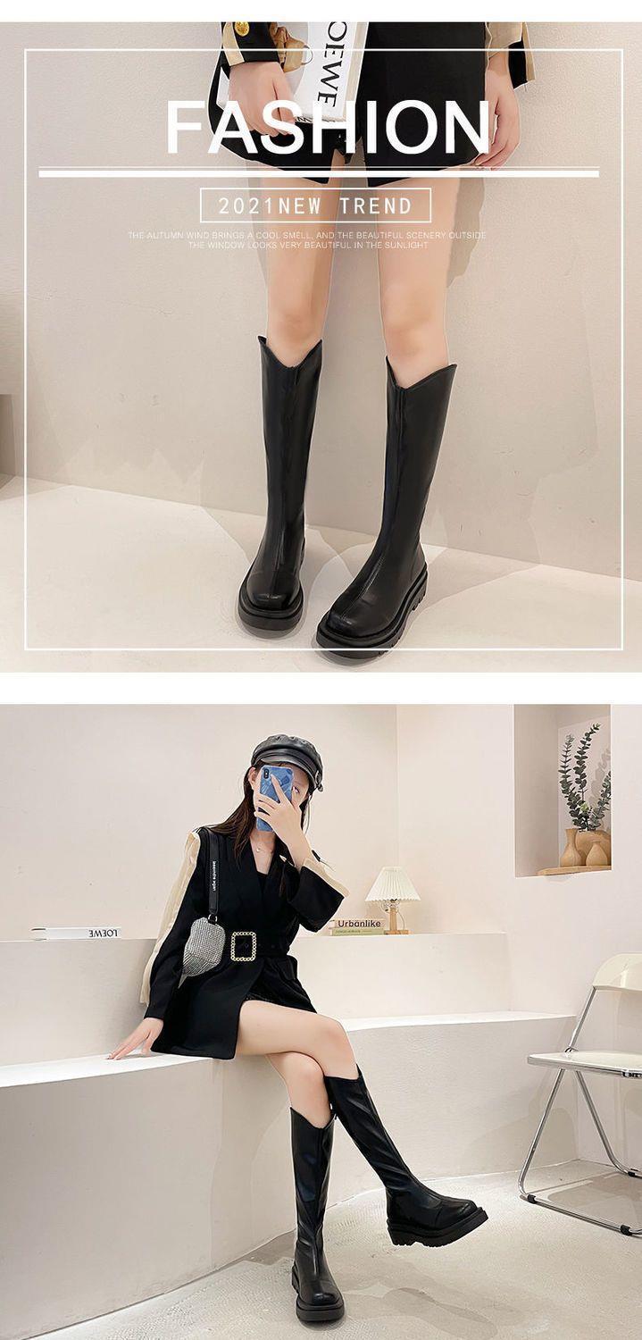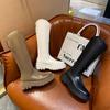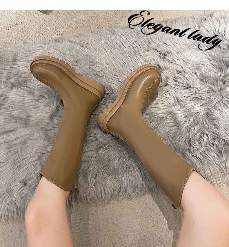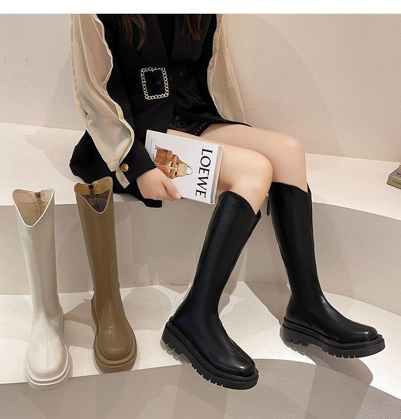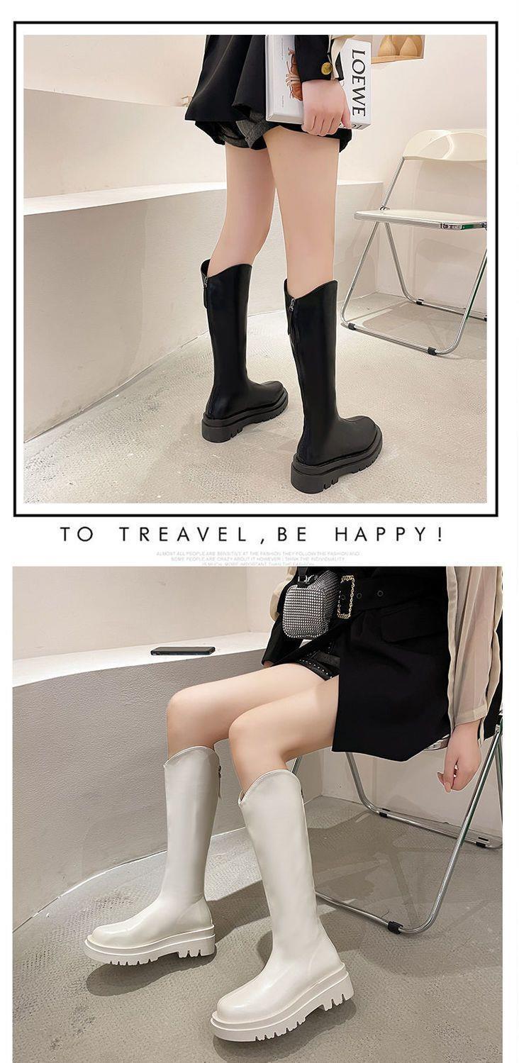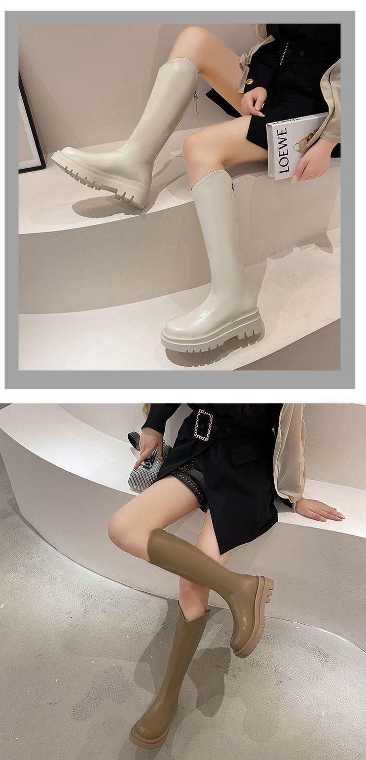 2022 otoño e invierno Nueva Moda botas delgadas de felpa roja de red con cremallera de fondo grueso pero botas largas hasta la rodilla botas altas de Caballero