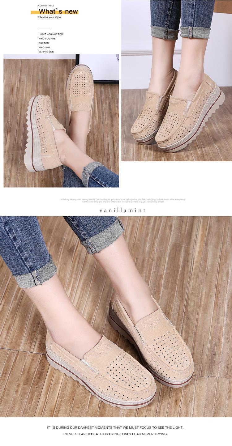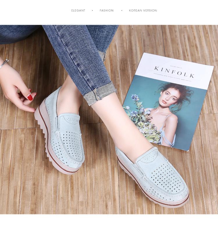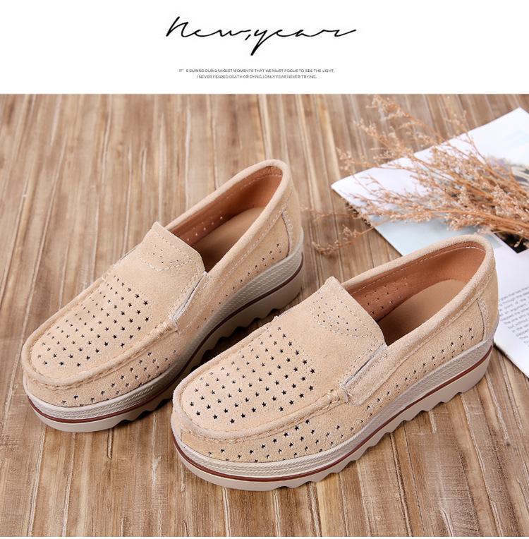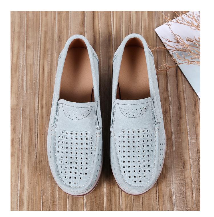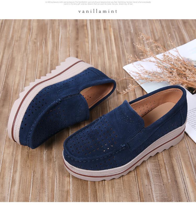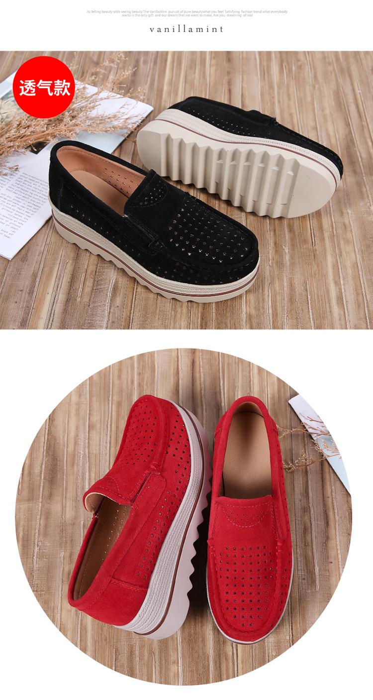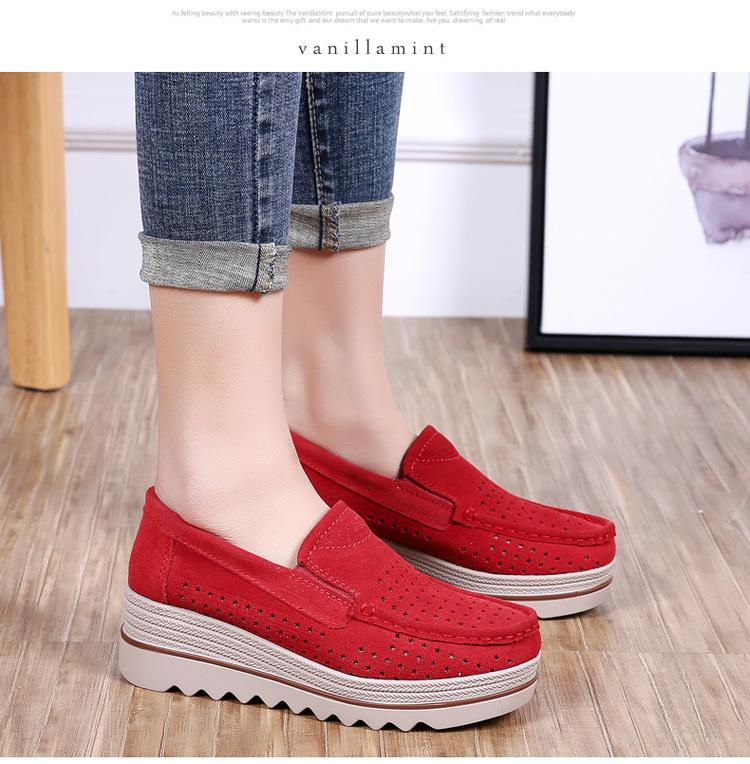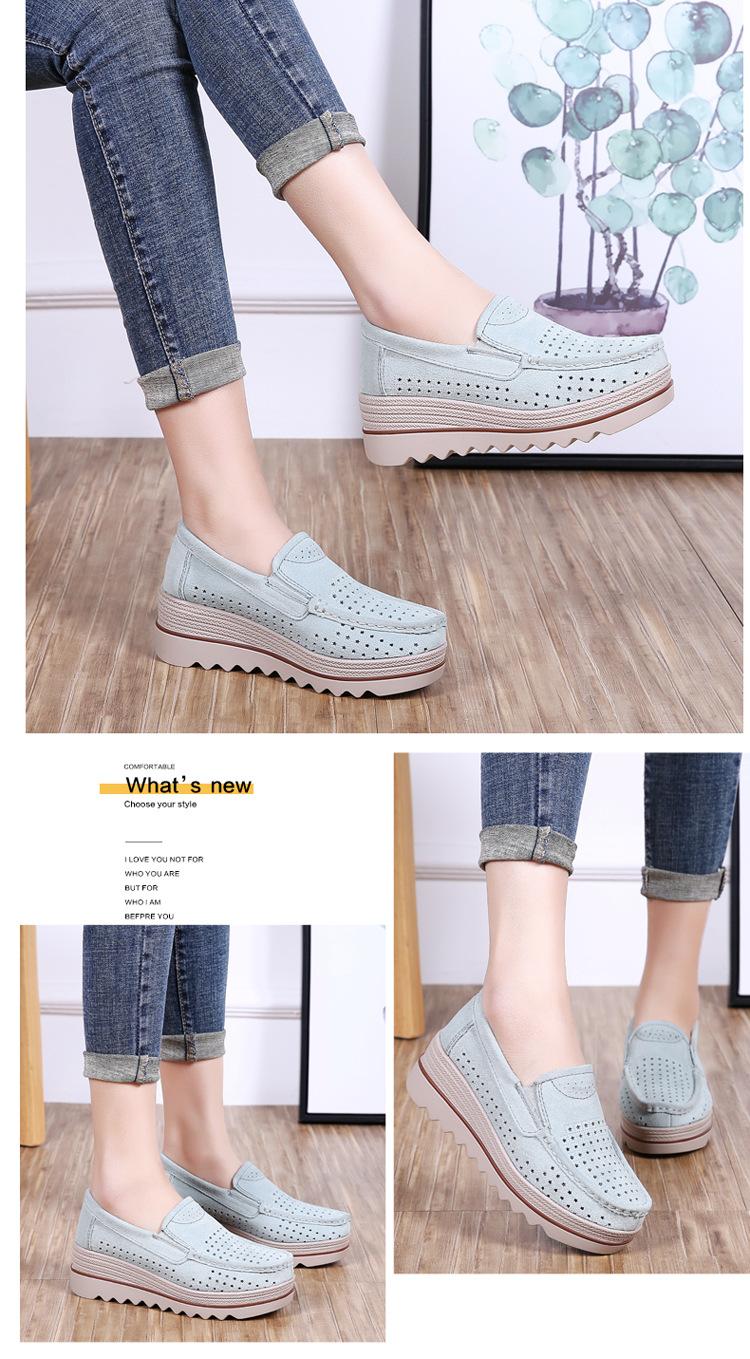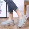 Zapatos Deportivos Populares Transfronterizos de Primavera de Cuero Genuino para Mujer, Zapatos Rocking de Verano Calados para Comercio Exterior, Tacones de Cuña de Suela Gruesa, Zapatos de Mamá Transpirables