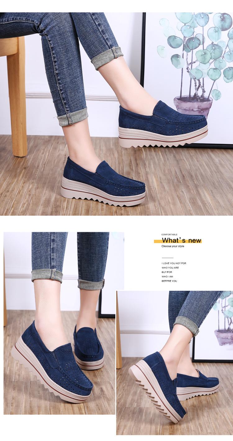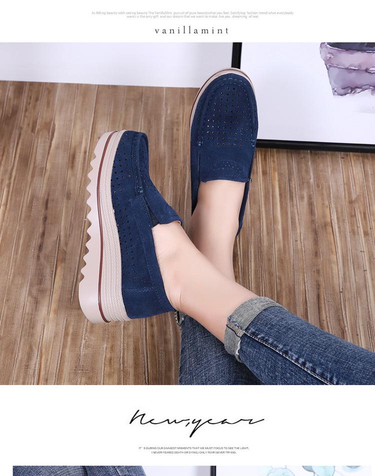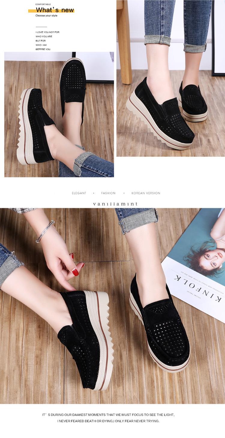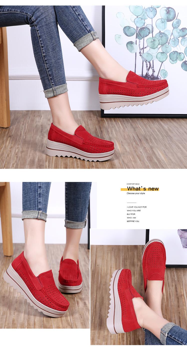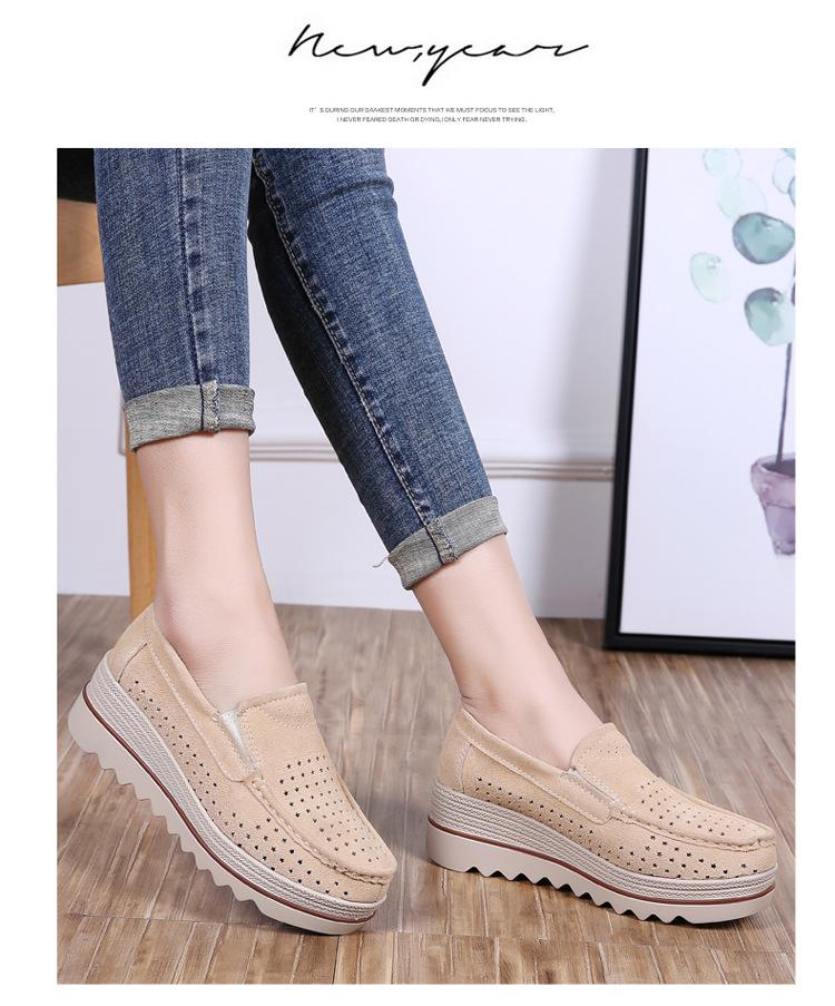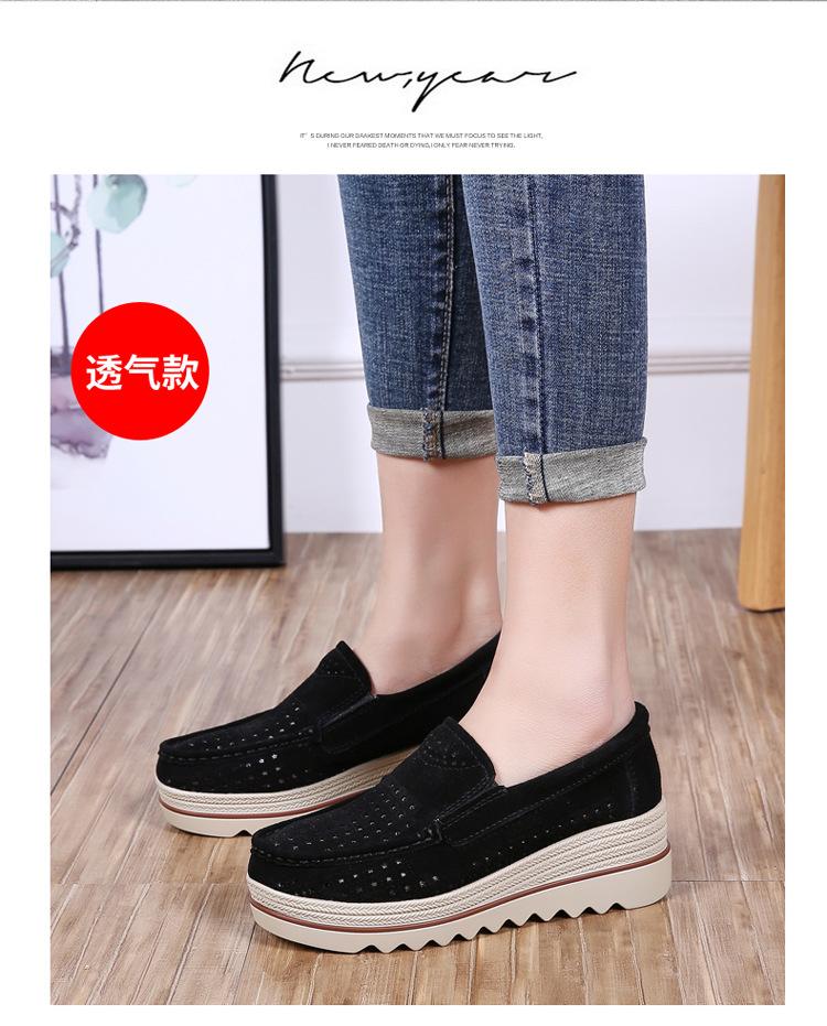 Zapatos Deportivos Populares Transfronterizos de Primavera de Cuero Genuino para Mujer, Zapatos Rocking de Verano Calados para Comercio Exterior, Tacones de Cuña de Suela Gruesa, Zapatos de Mamá Transpirables