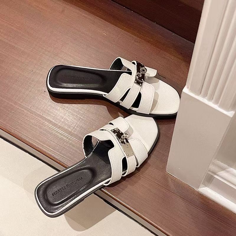 Pantuflas de Estilo Francés Moda 2025 Nuevas Sandalias Planas de Playa de Verano para Mujer