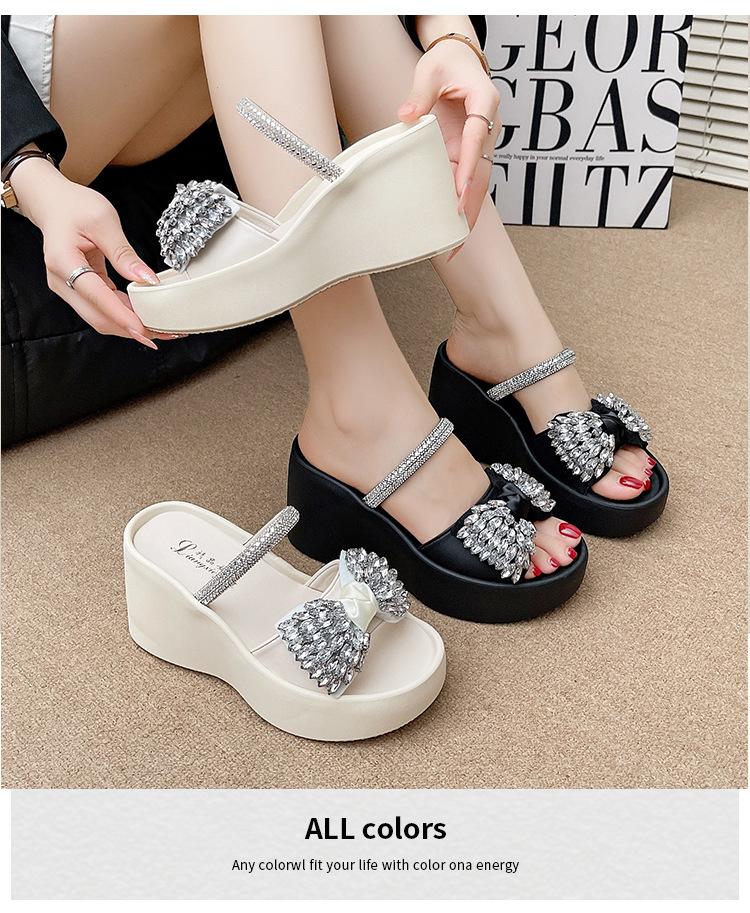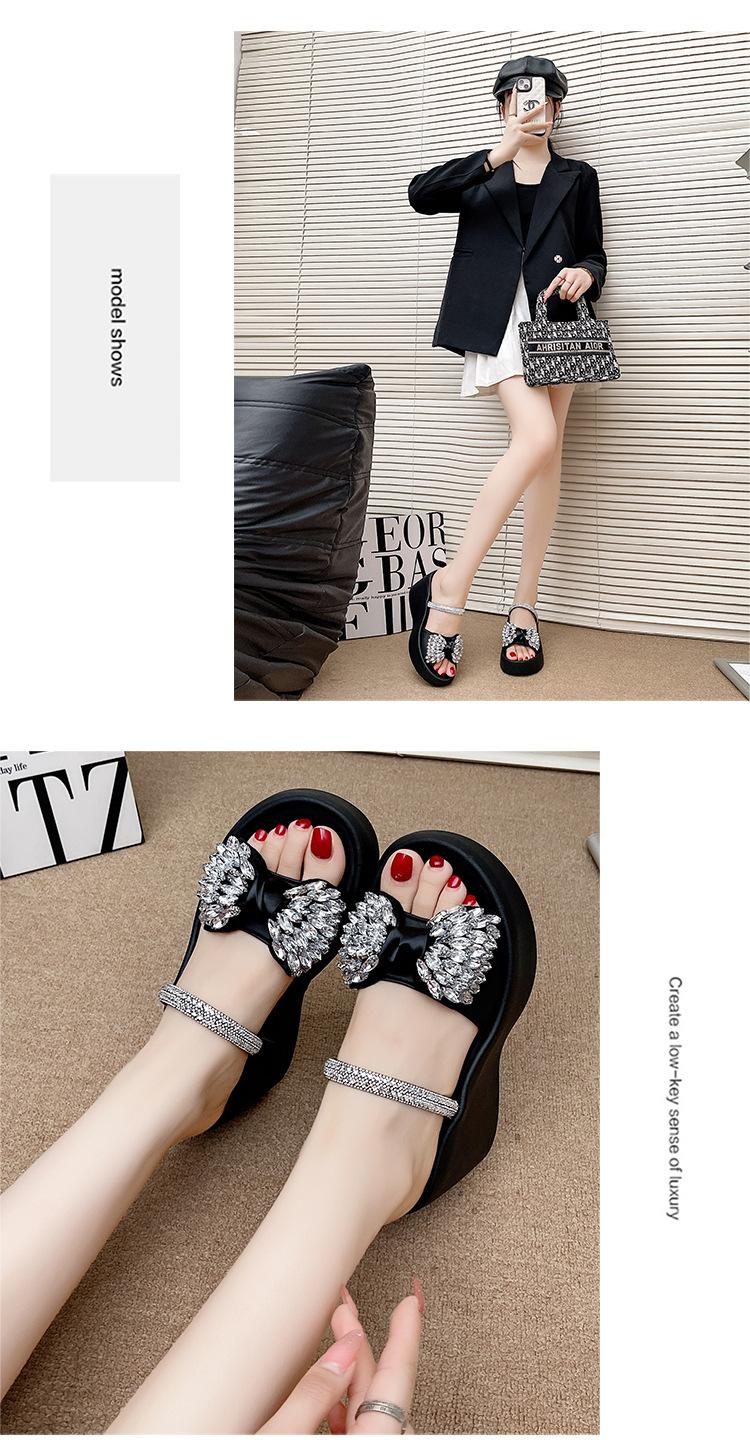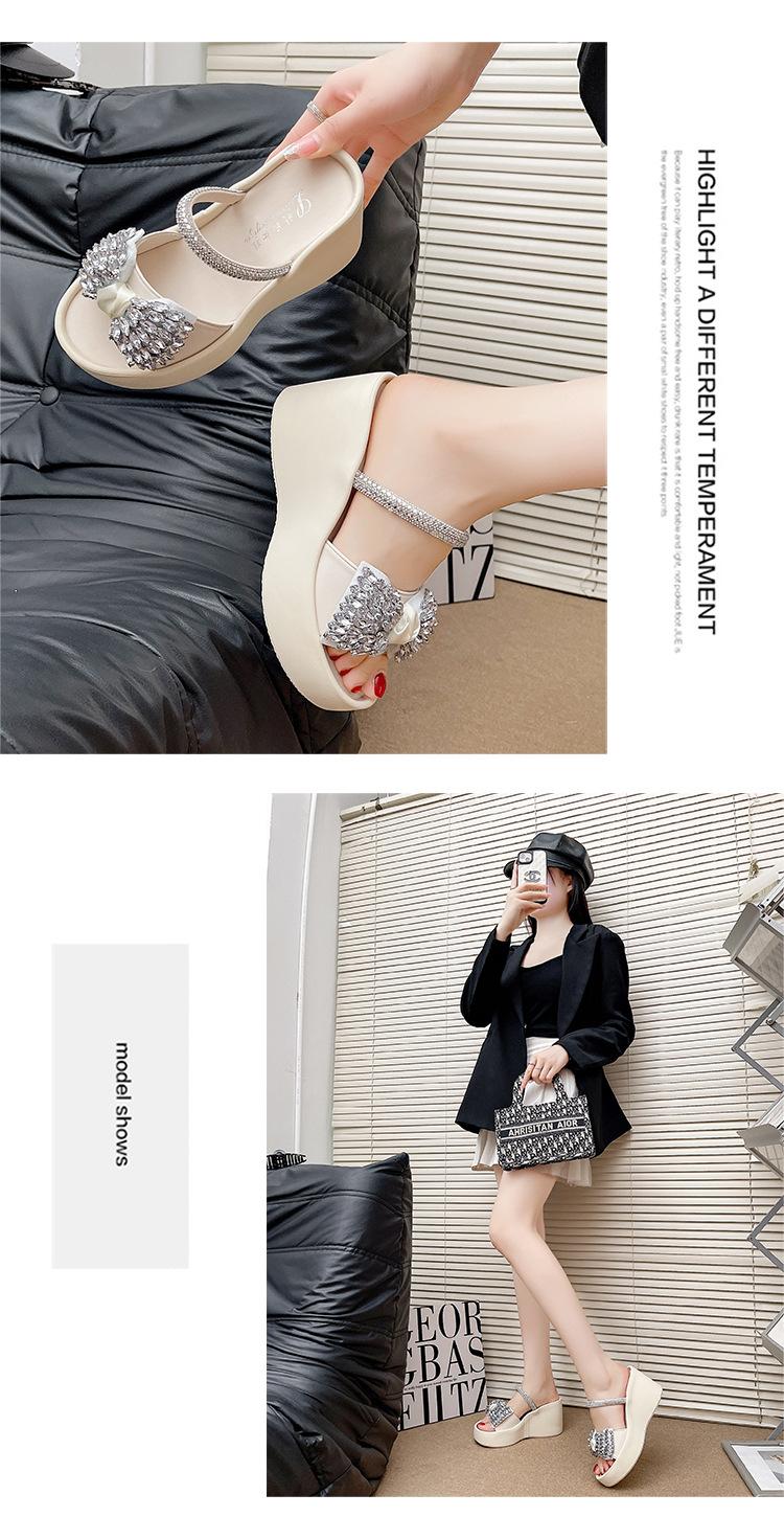2025 Nuevas Zapatillas Mary Jane con Lazo de Pedrería Sandalias de Playa Casuales para Vacaciones Zapatillas para Exterior Zapatos de Mujer