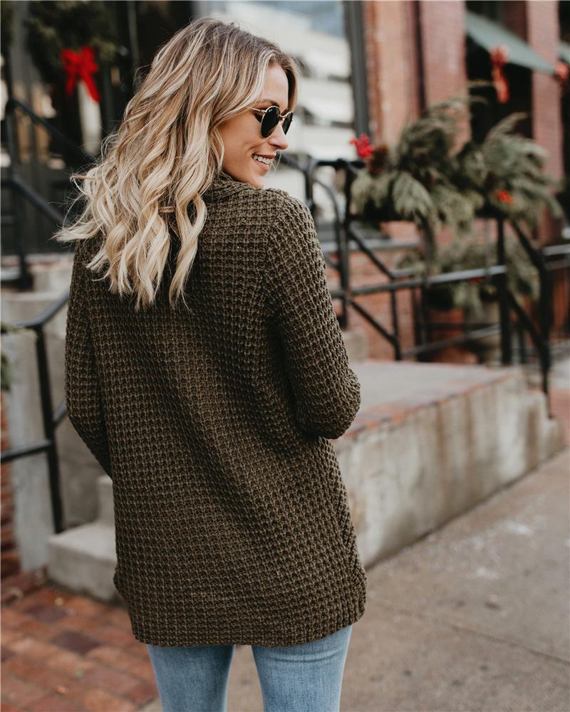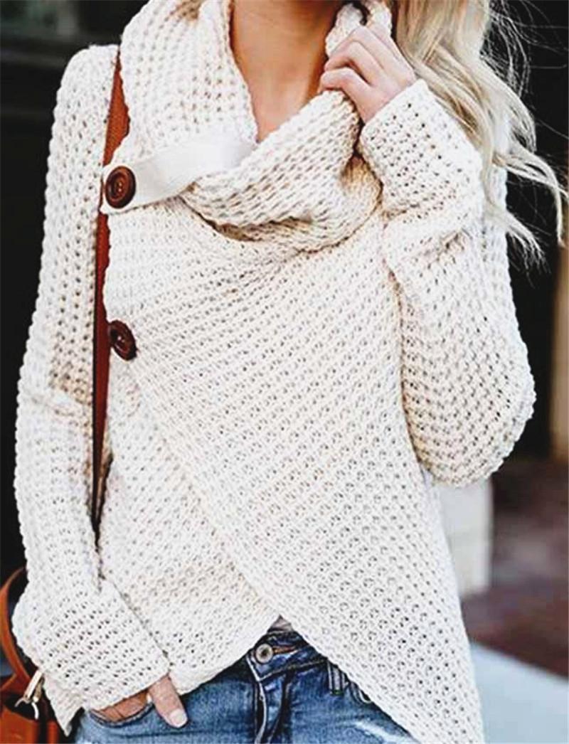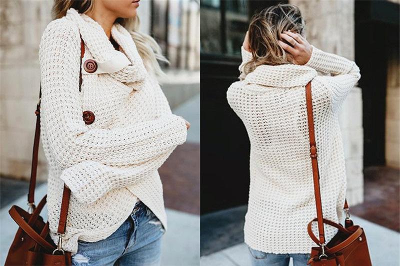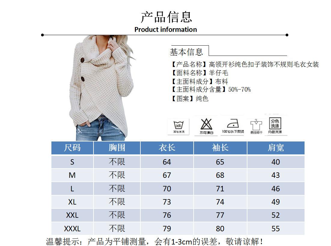 Suéteres Otoño Invierno 2018 Amazon AliExpress Cuello Alto Cárdigan Color Sólido Decoración de Botones Suéter Irregular Ropa de Mujer