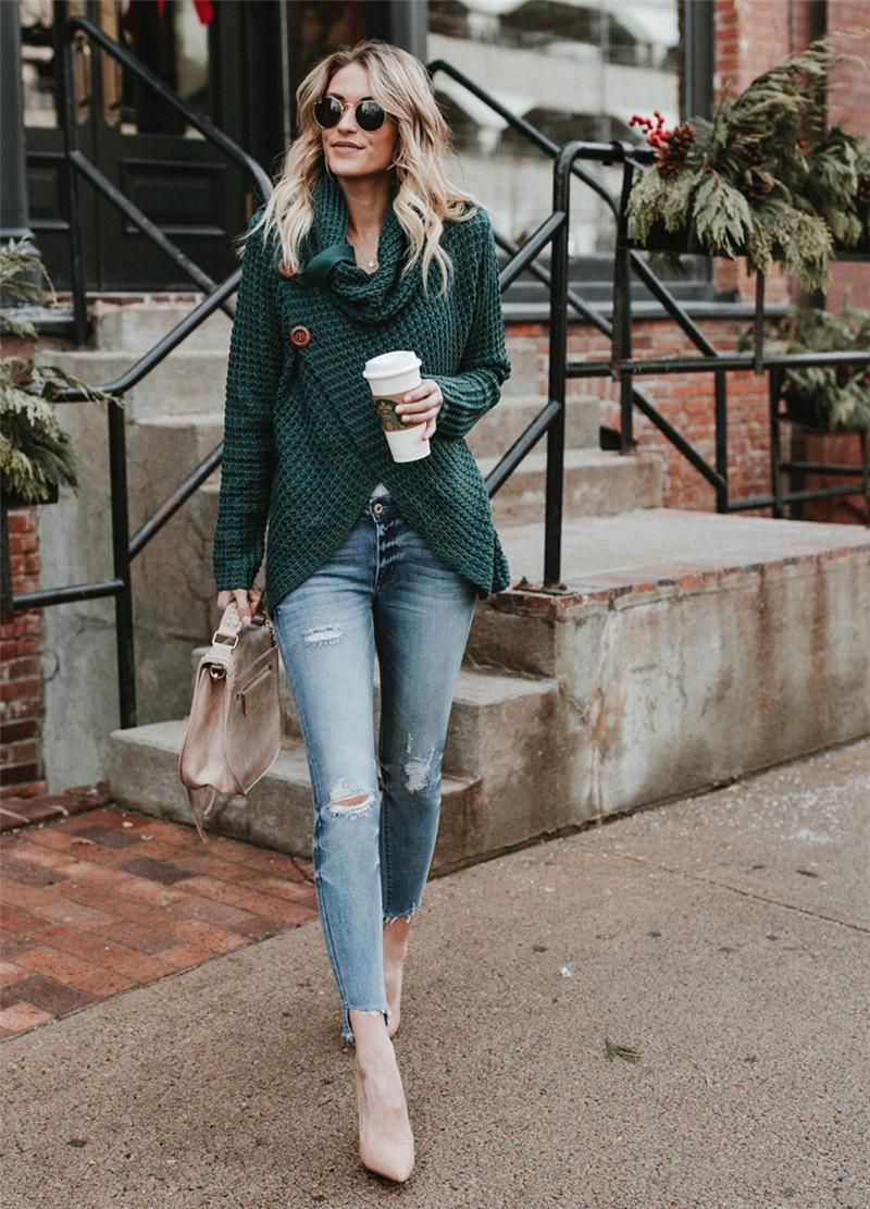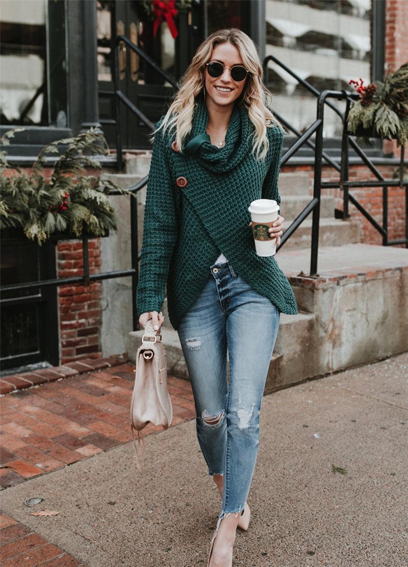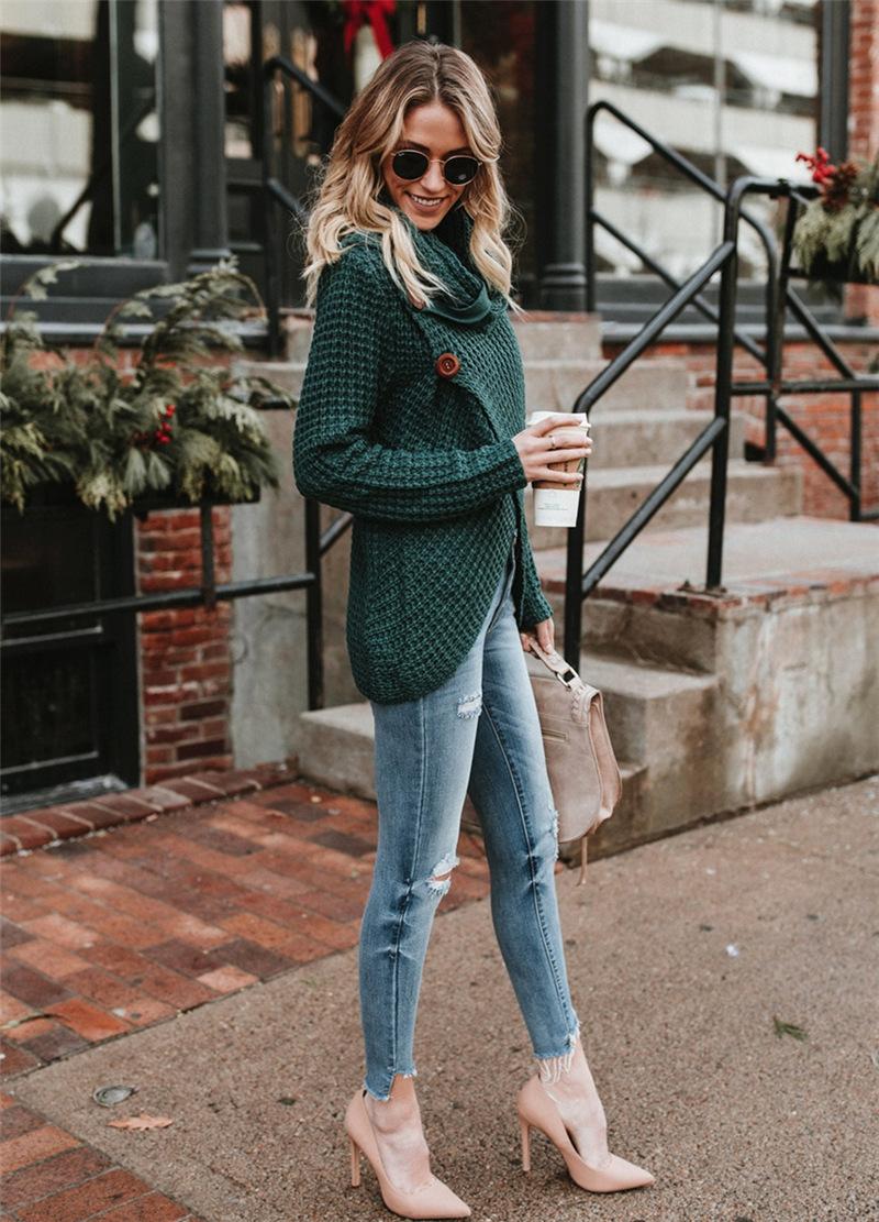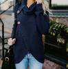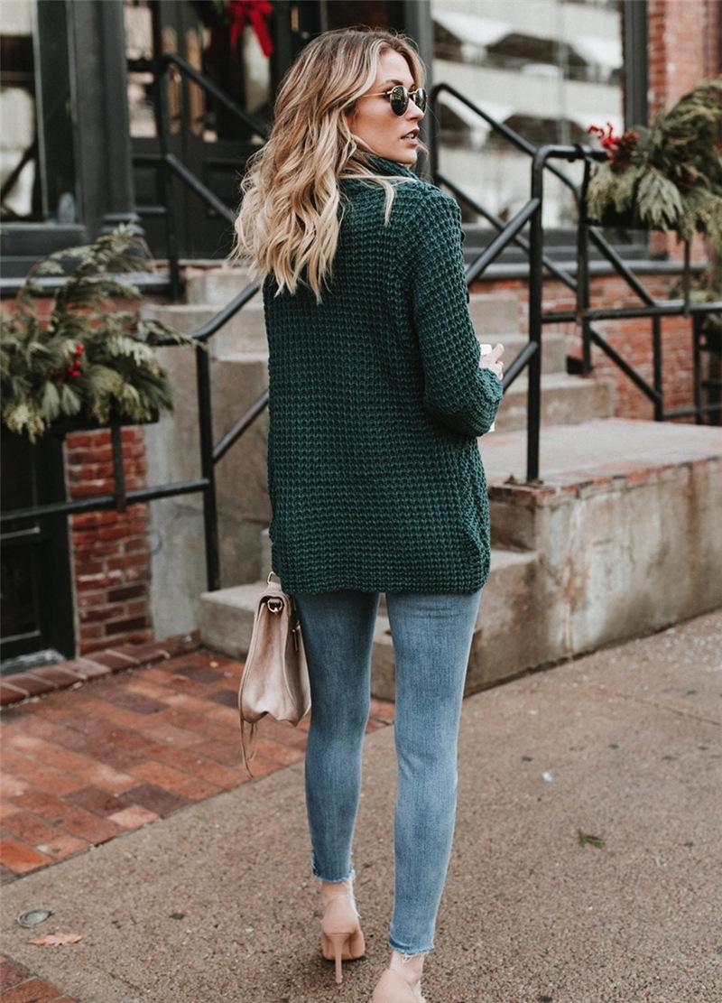 Suéteres Otoño Invierno 2018 Amazon AliExpress Cuello Alto Cárdigan Color Sólido Decoración de Botones Suéter Irregular Ropa de Mujer