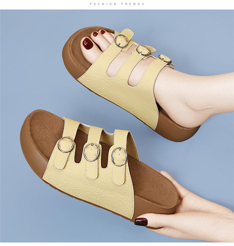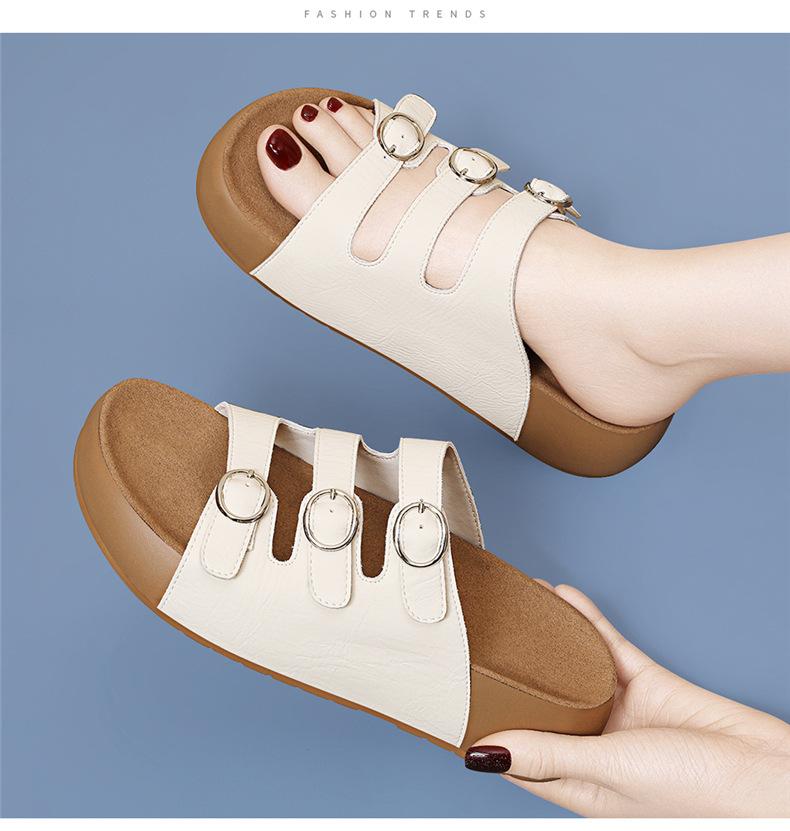 2025 Nuevas Pantuflas Retro de Estilo Francés de Suela Gruesa para Mujer Verano para Exterior Casual Combinan con Todo Sandalias de Playa Antideslizantes Verano