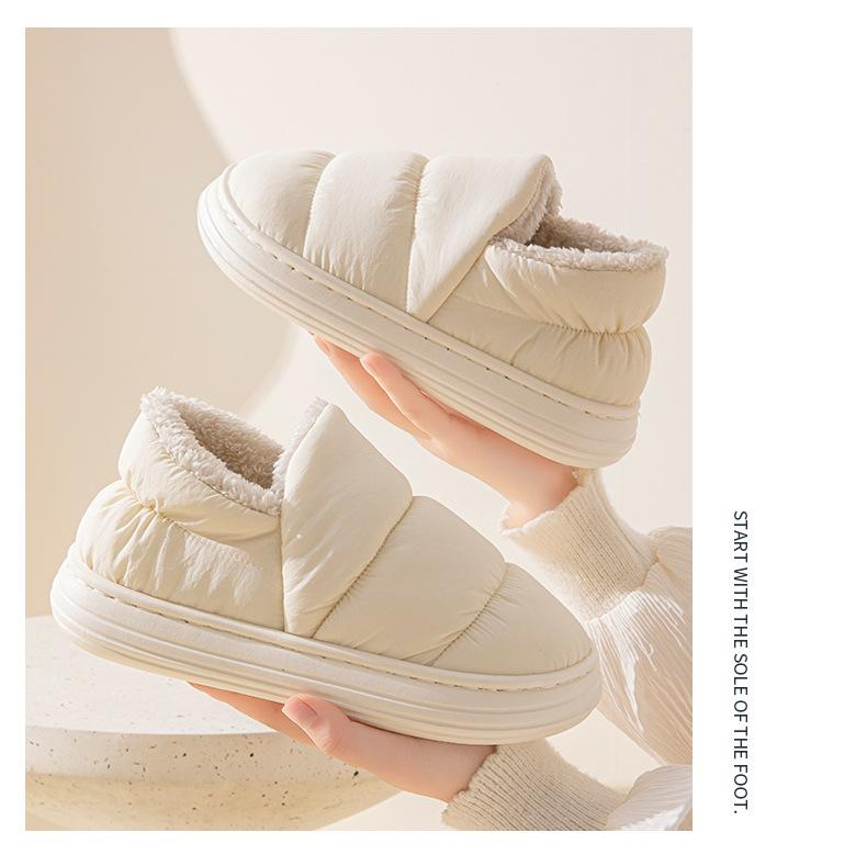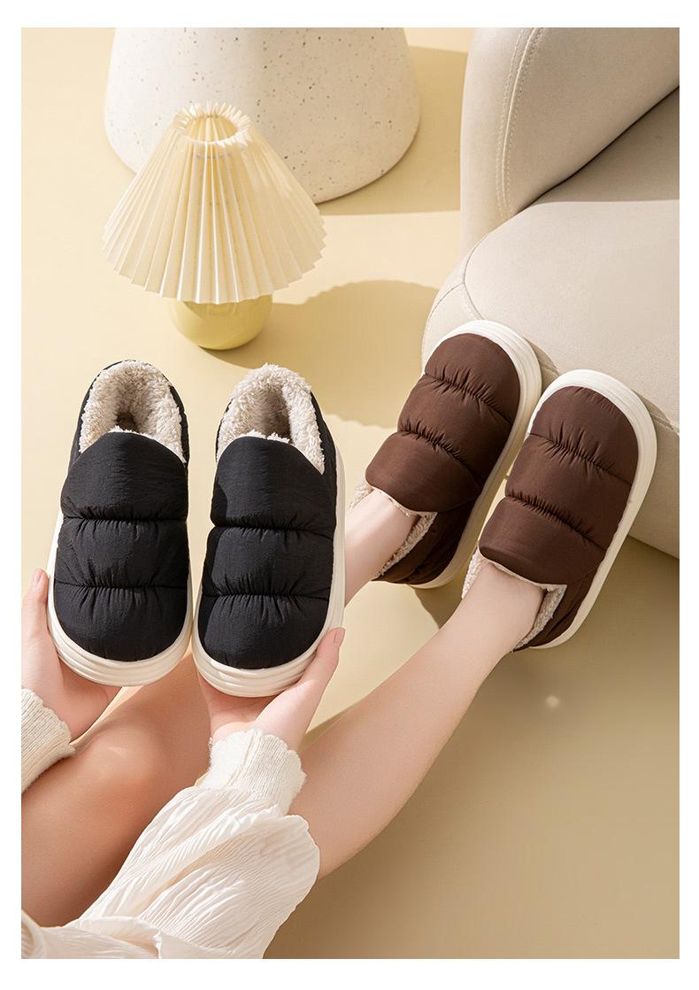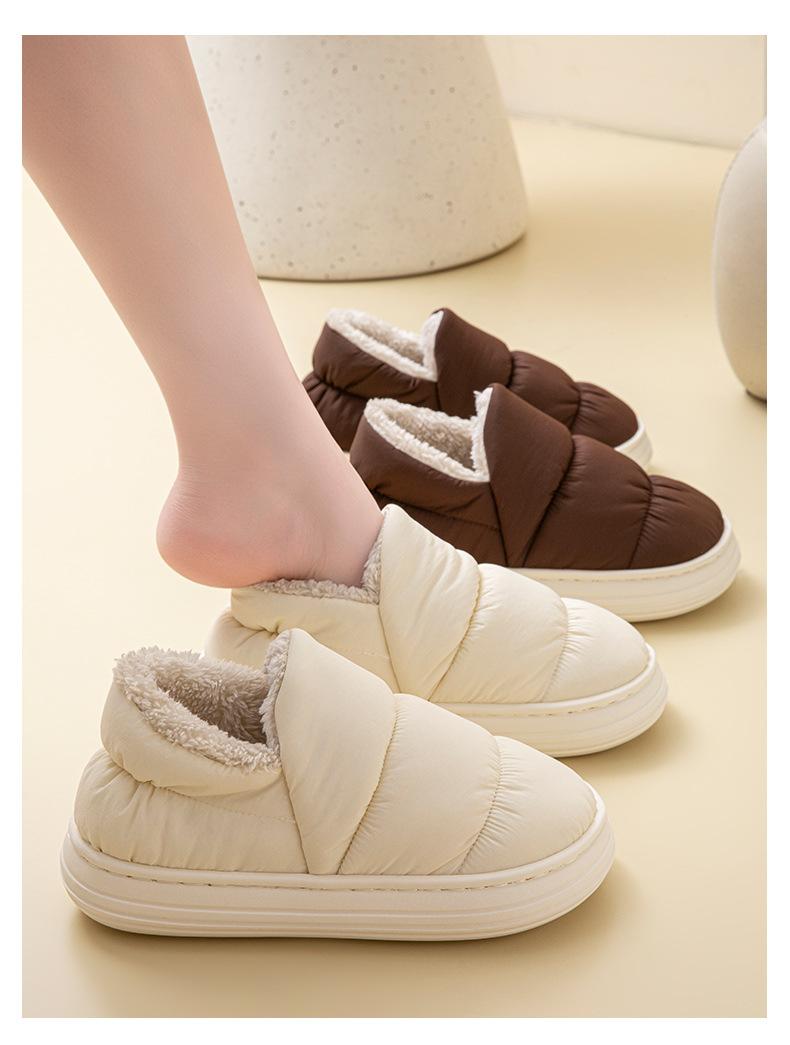 Pantuflas de Algodón Impermeables para Hombre Invierno Silenciosas con Forro Polar Cálidas Suela Gruesa Talón Desodorante Tela de Plumón Pantuflas de Algodón para Mujer Invierno