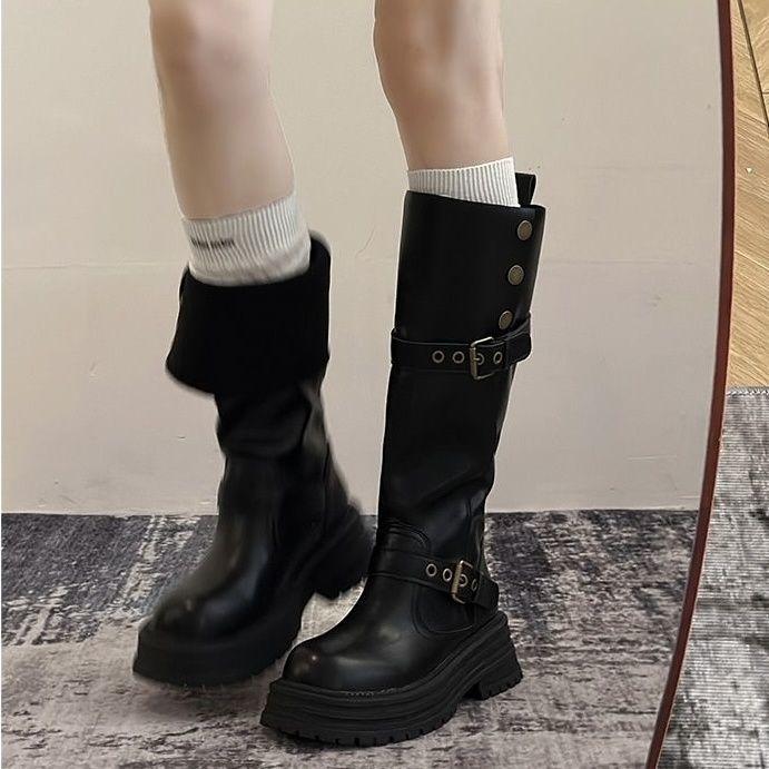 Botas de Moda Versátiles Adelgazantes hasta la Rodilla 2025 Otoño e Invierno Nueva Moda Dos Usos Estilo Británico Botas de Tacón Grueso para Mujer