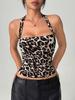 Traje de baño halter para mujer, traje de baño europeo y americano para mujer, tela estampada, traje de baño de playa de verano