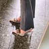 Sandalias Baotou Outfit para Mujer 2025 Verano Nuevo Estilo de Una Pieza Lentejuela Punta Tacón de Aguja Tacones Altos