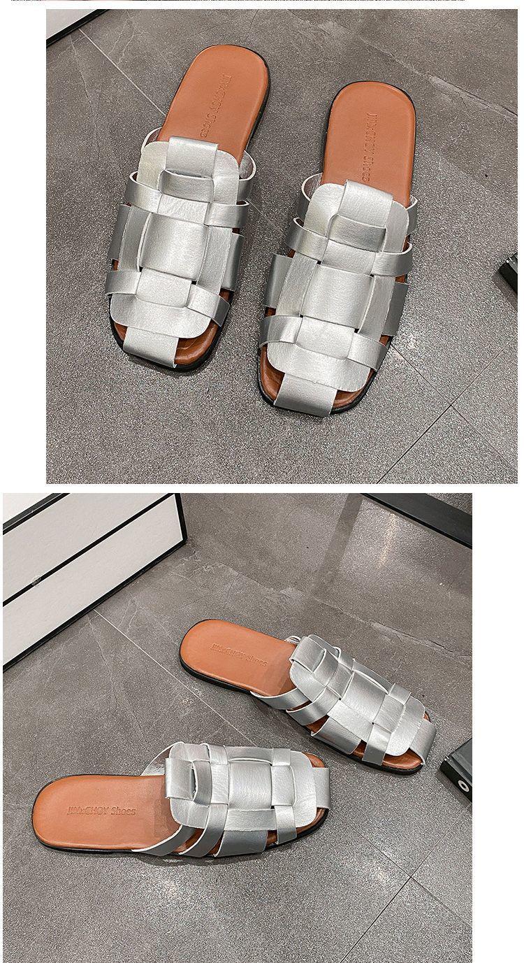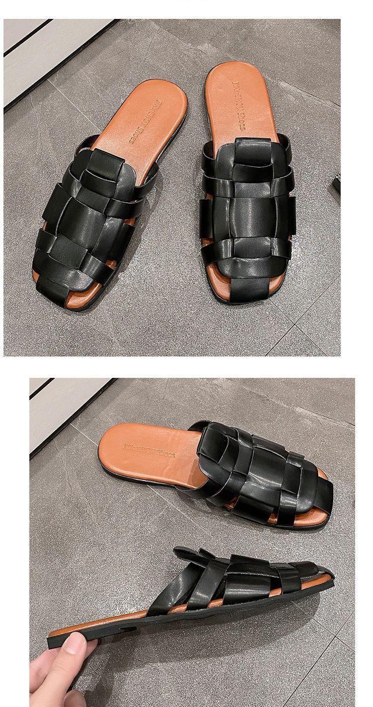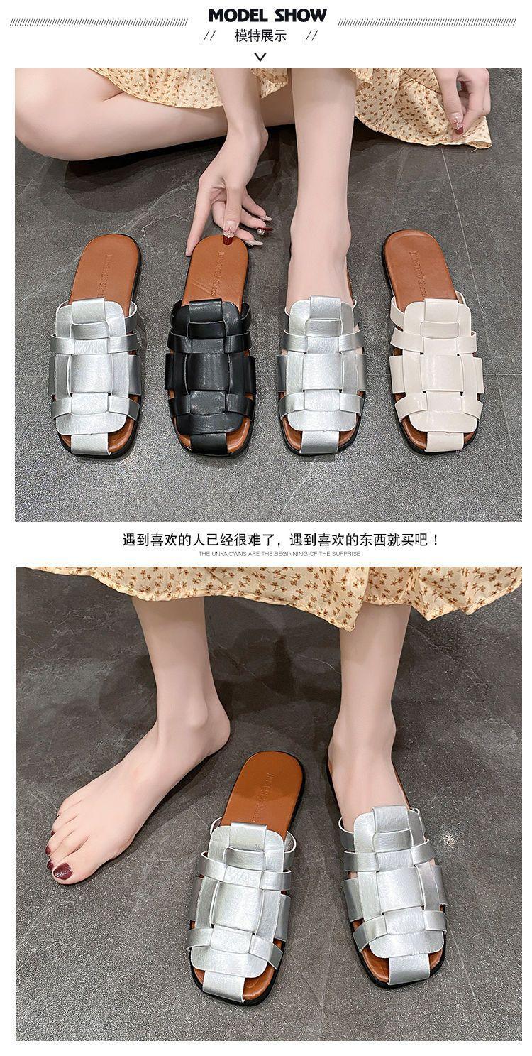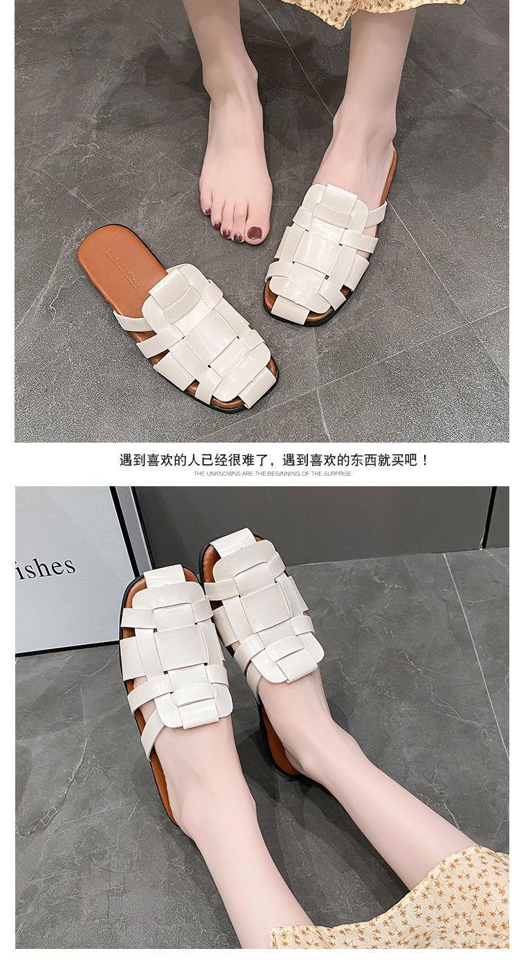 Sandalias planas casuales combinables, estilo popular, tejidas, estilo retro, Baotou, para mujer, ropa exterior de verano, tendencia, 2024