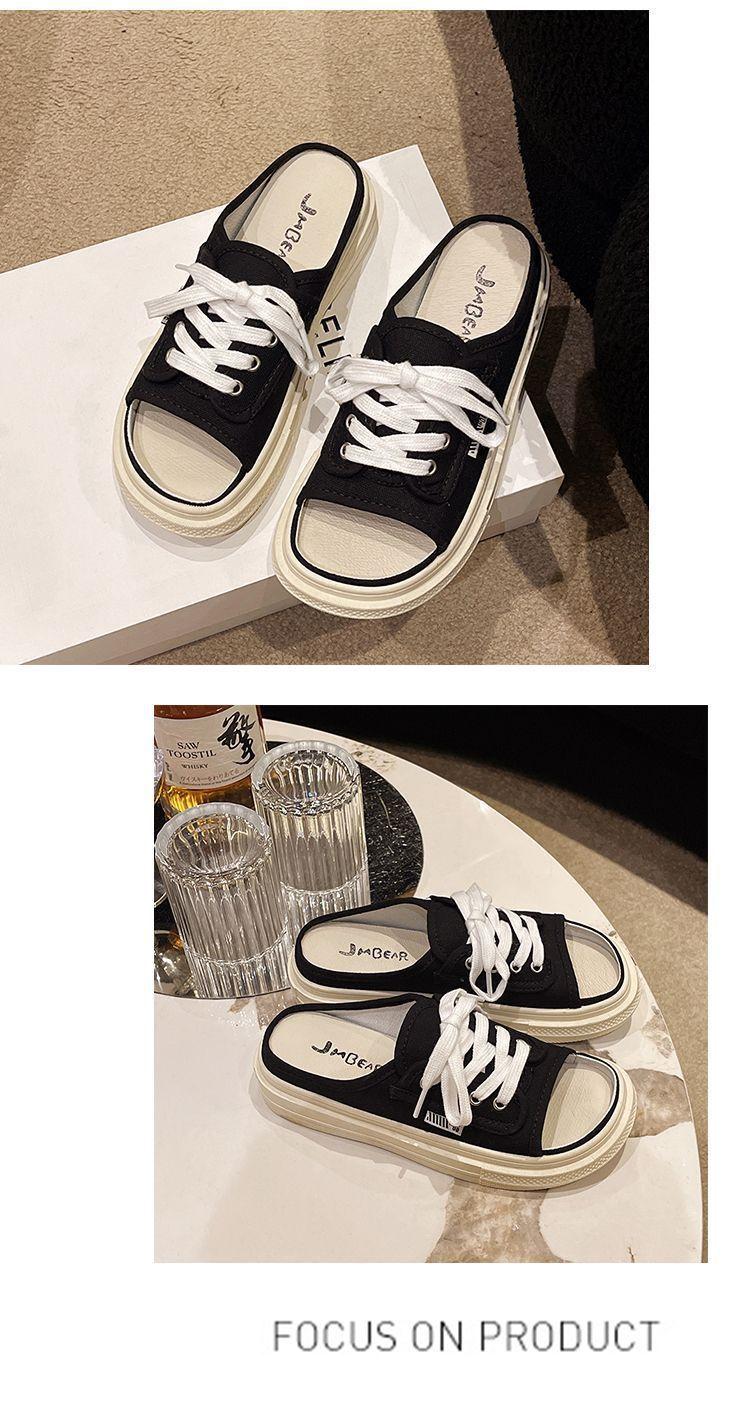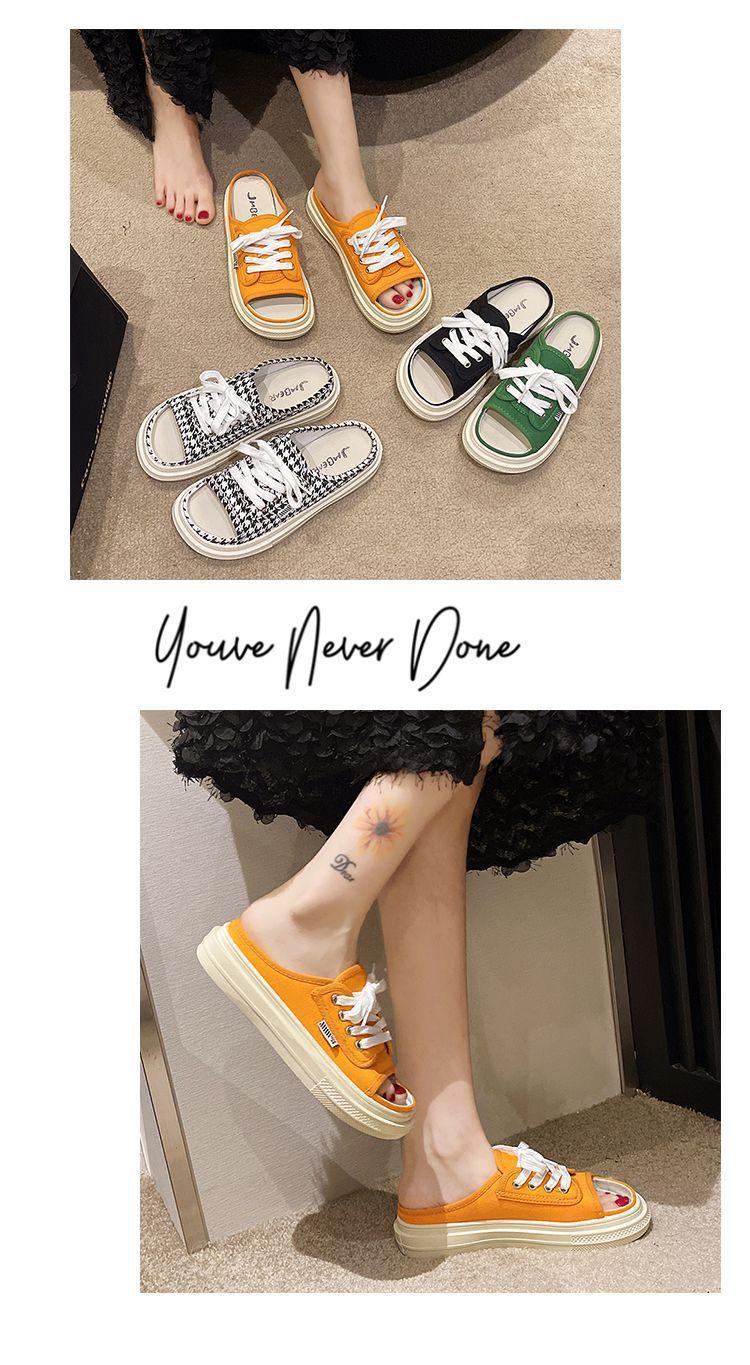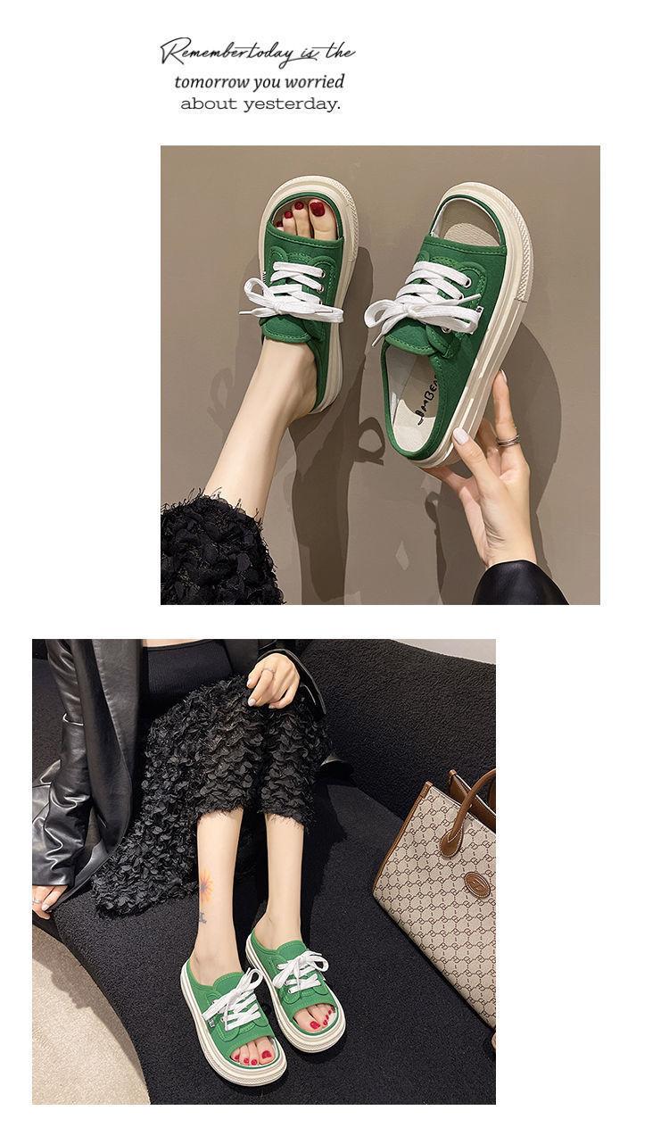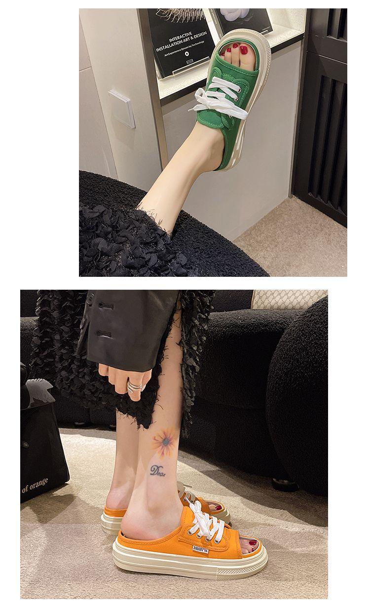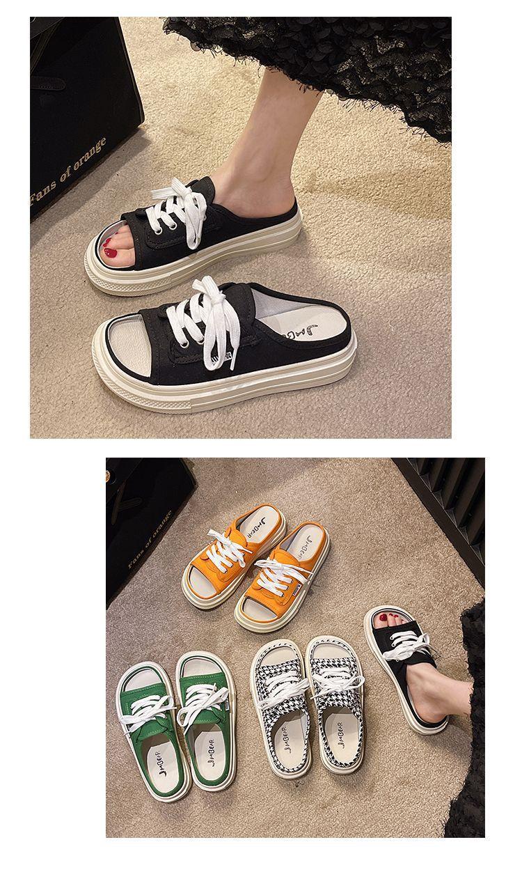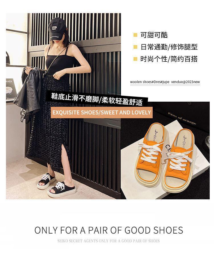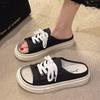 2024 Verano Nueva Moda Versátil Sandalias Slip-On de Suela Gruesa Zapatillas de Lona de Moda para Mujer para Uso en Exteriores En Tendencia