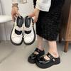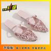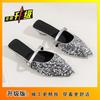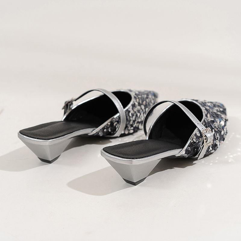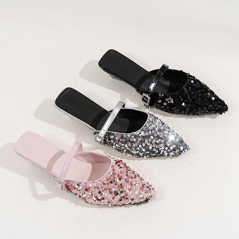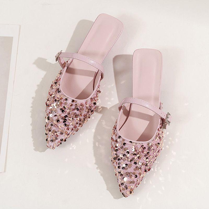 Zapatillas de salón francesas populares de tacón grueso con punta de lentejuelas para mujer para usar estilo de hada flats 2025 primavera y otoño nuevo estilo