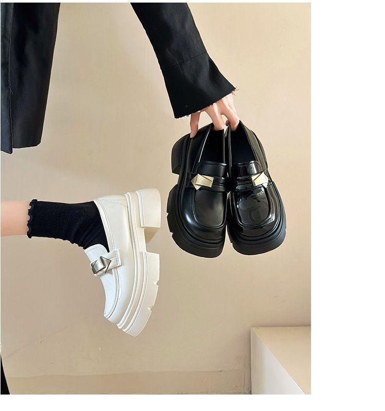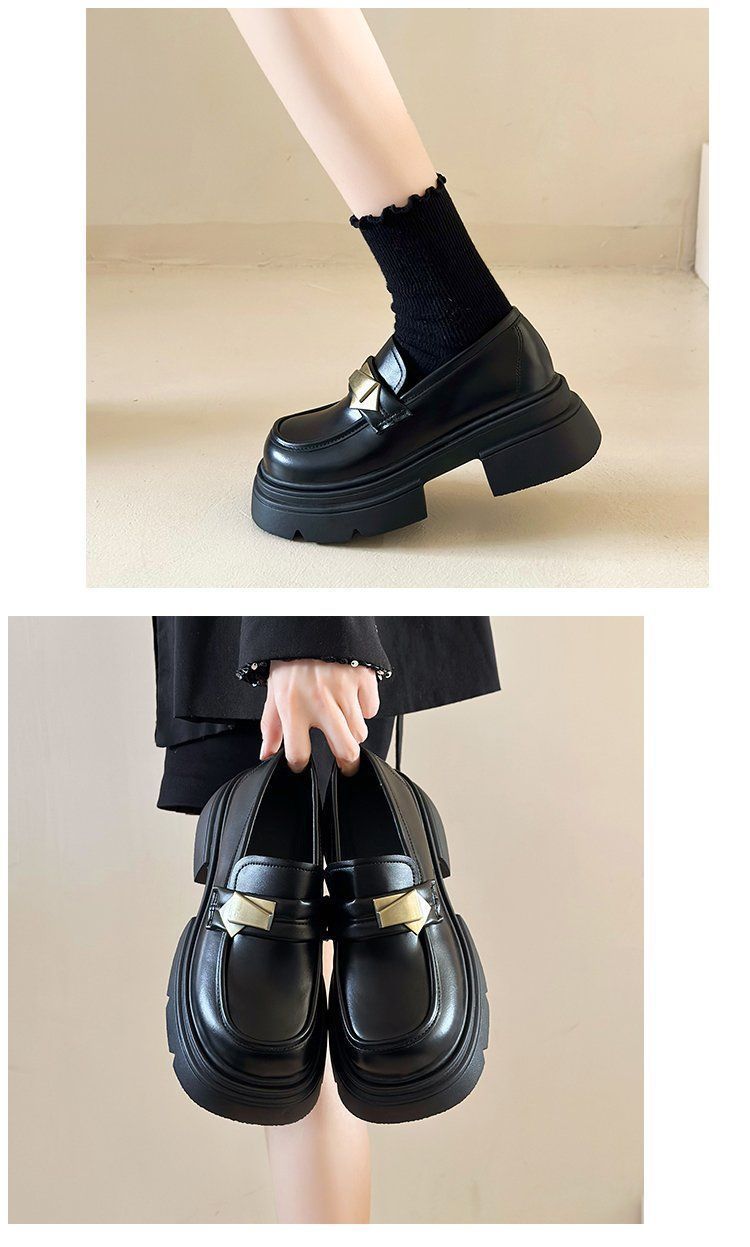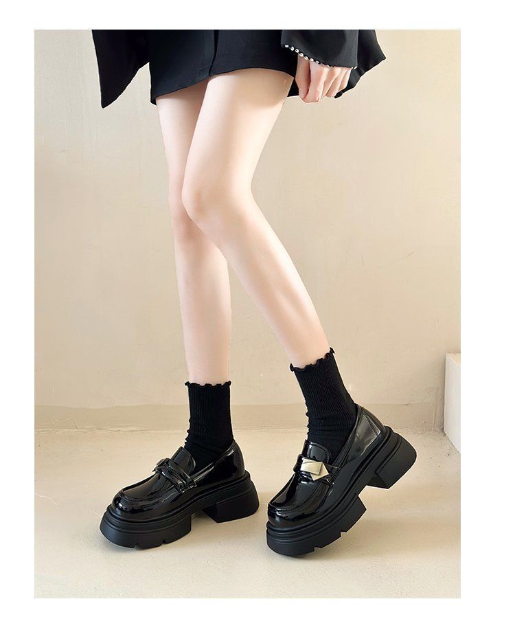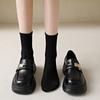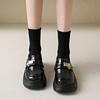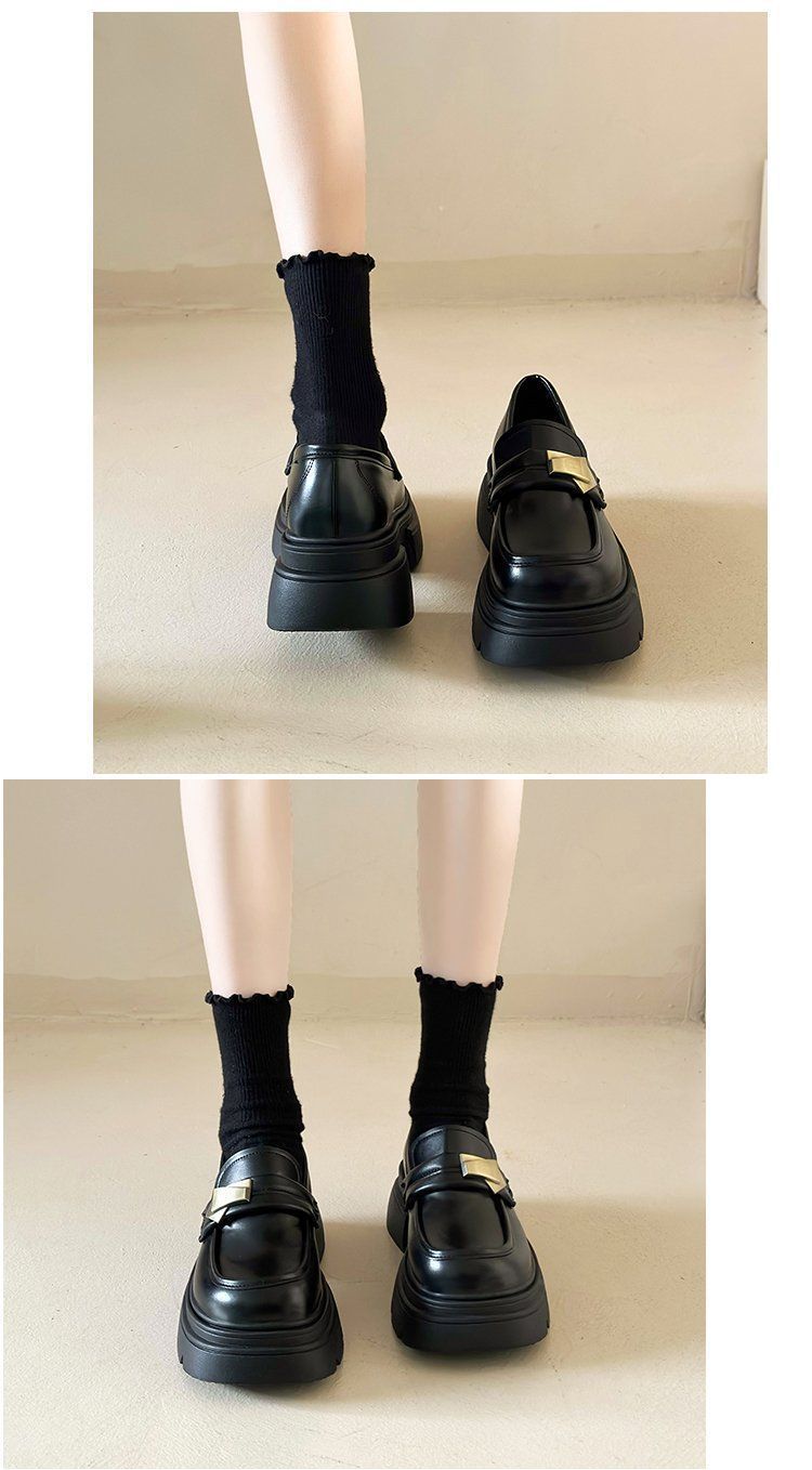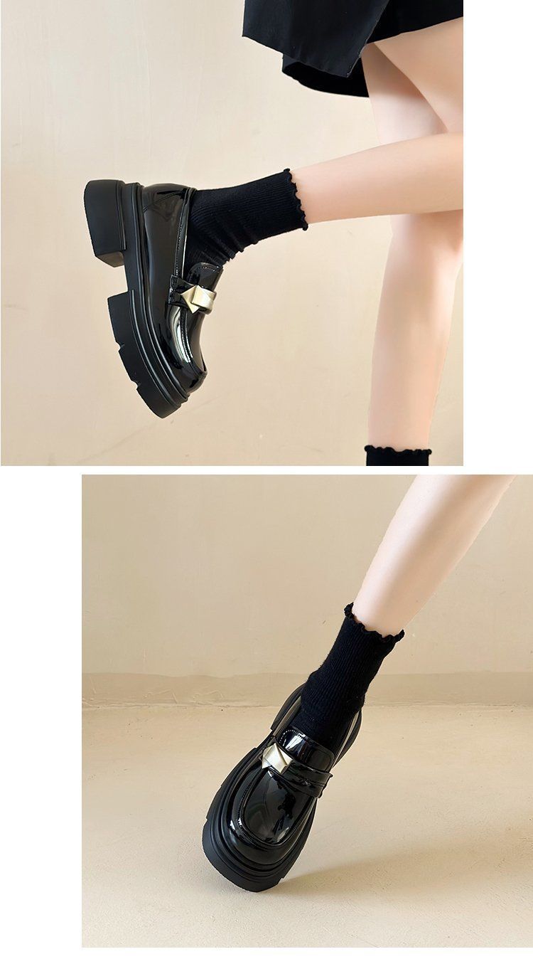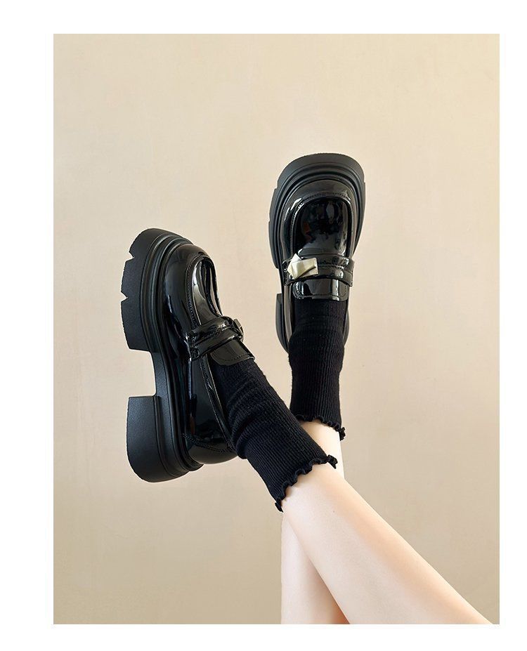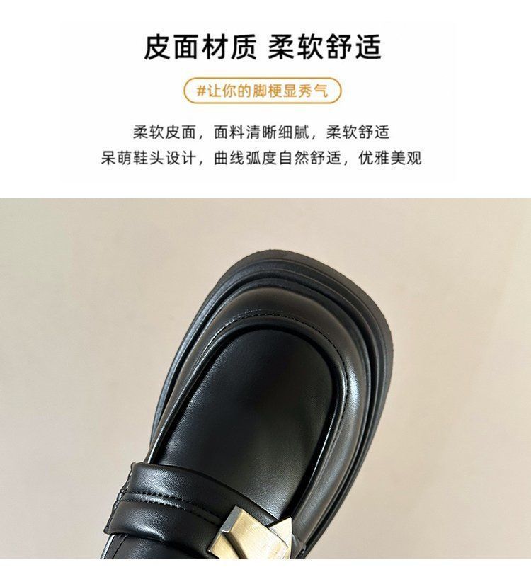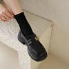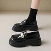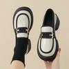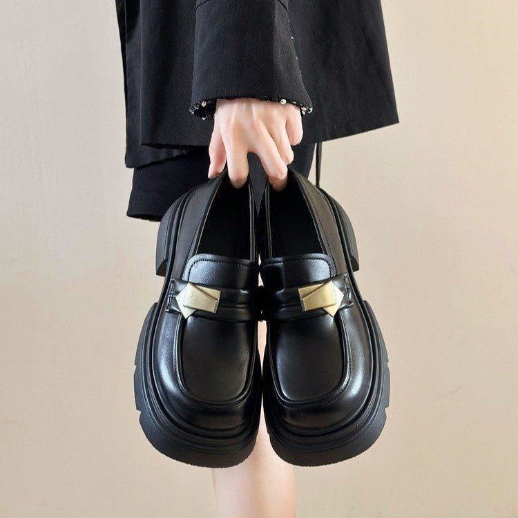 Mocasines Negros Zapatos Slip-on Zapatos Mary Jane para Mujer Primavera 2024 Nuevos Zapatos Pequeños de Cuero de Estilo Británico de Suela Gruesa para Mujer