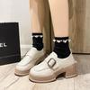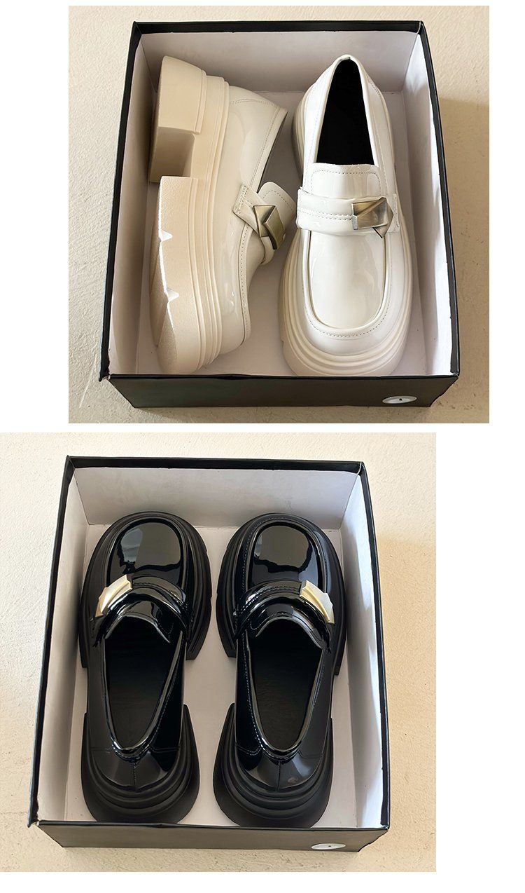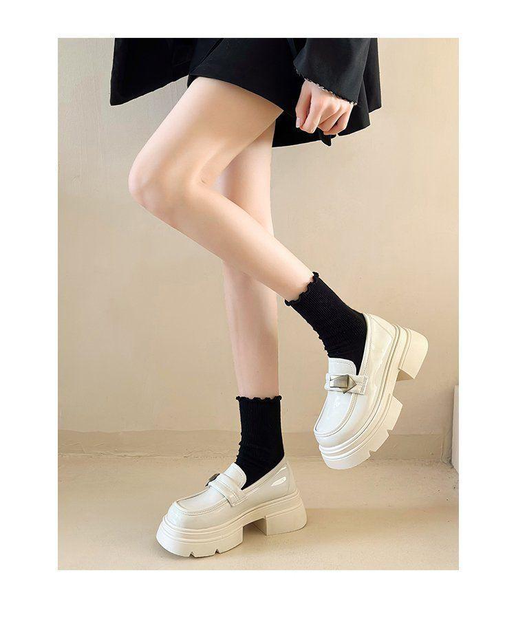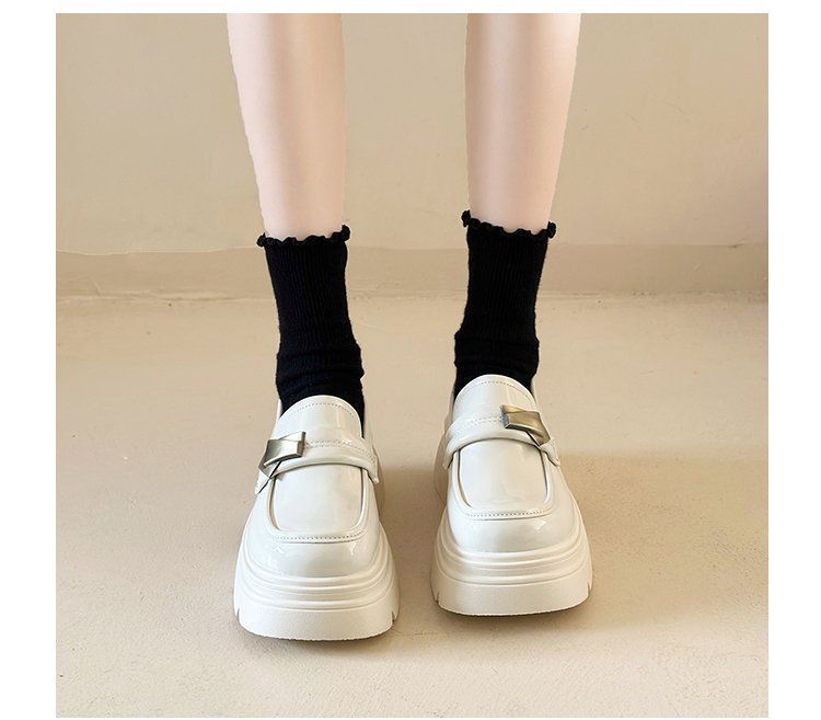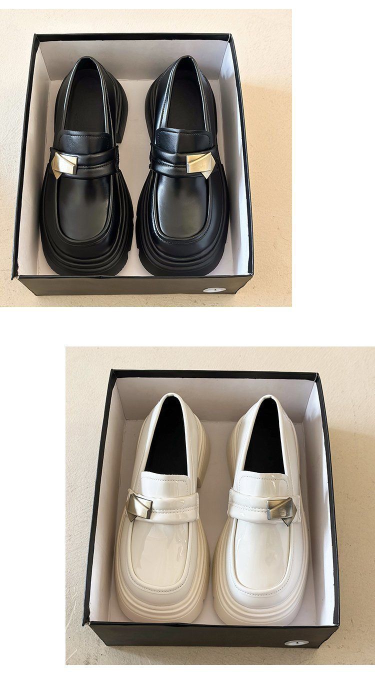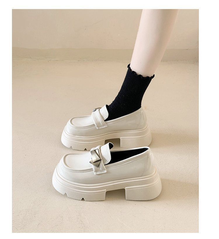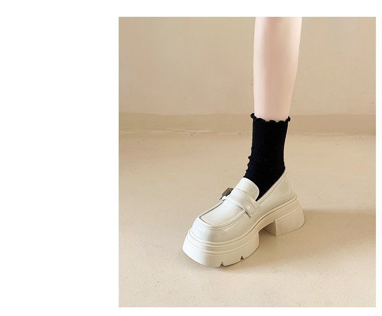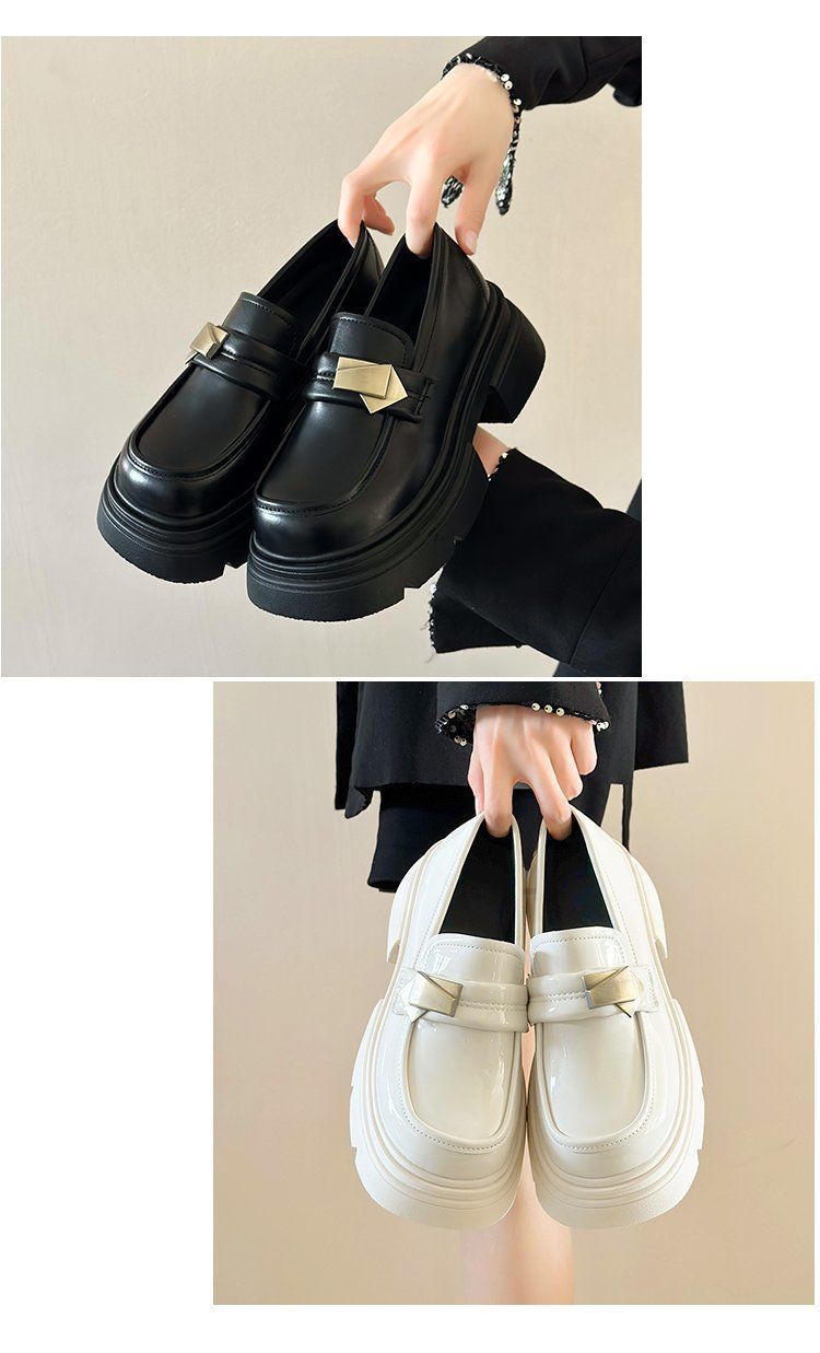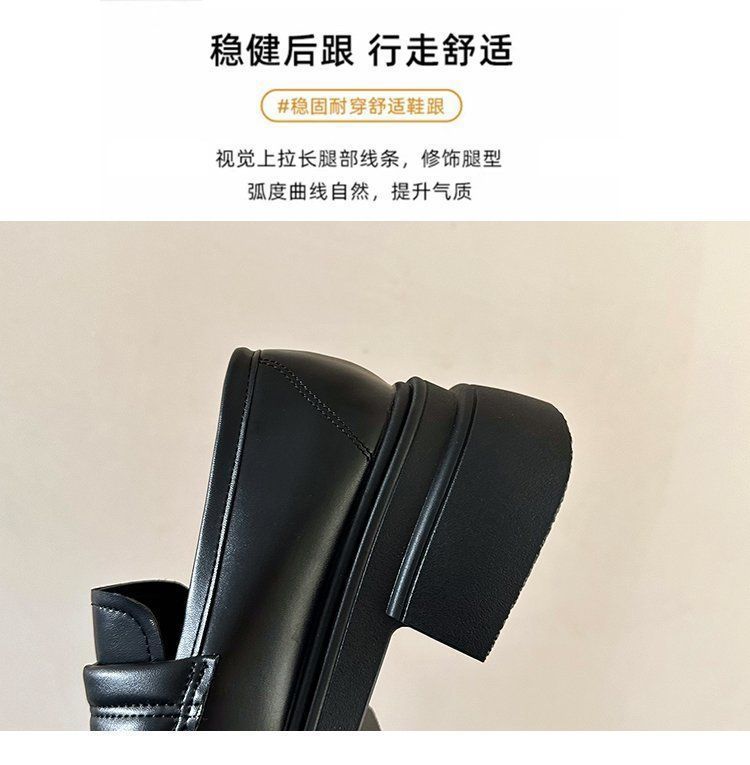 Mocasines Negros Zapatos Slip-on Zapatos Mary Jane para Mujer Primavera 2024 Nuevos Zapatos Pequeños de Cuero de Estilo Británico de Suela Gruesa para Mujer