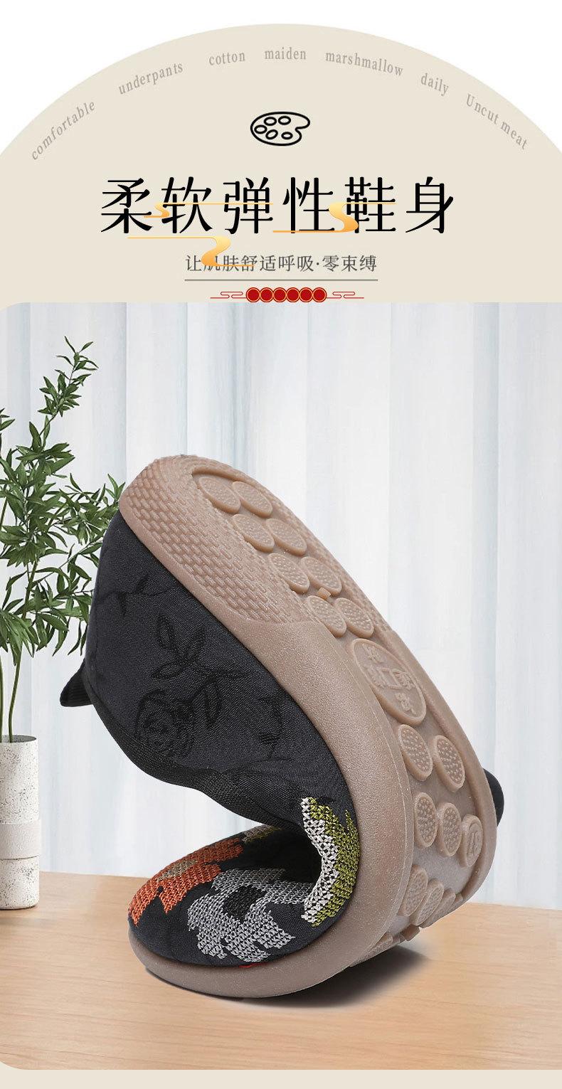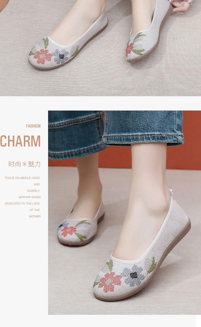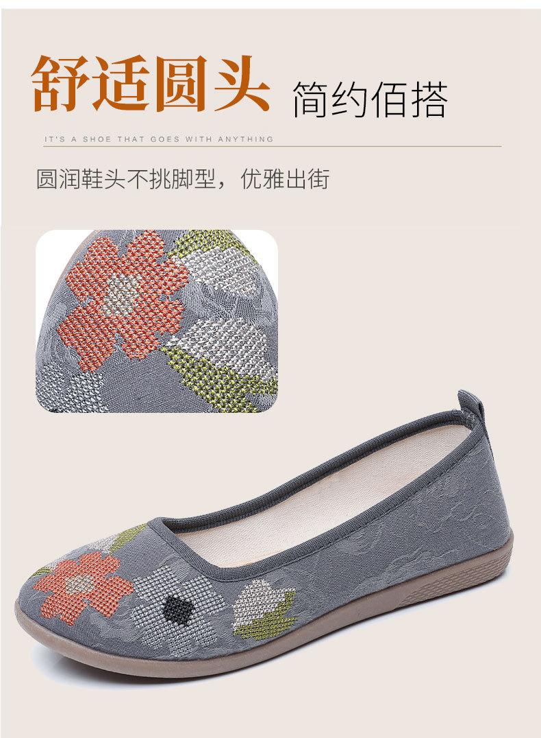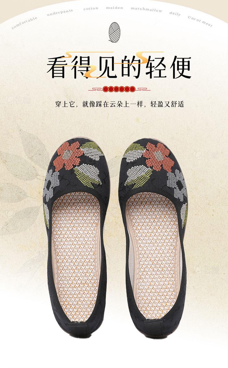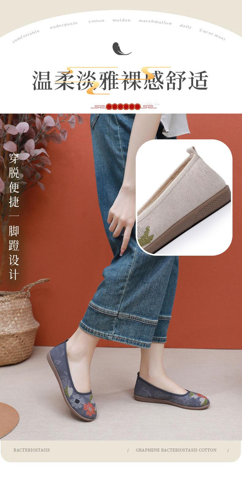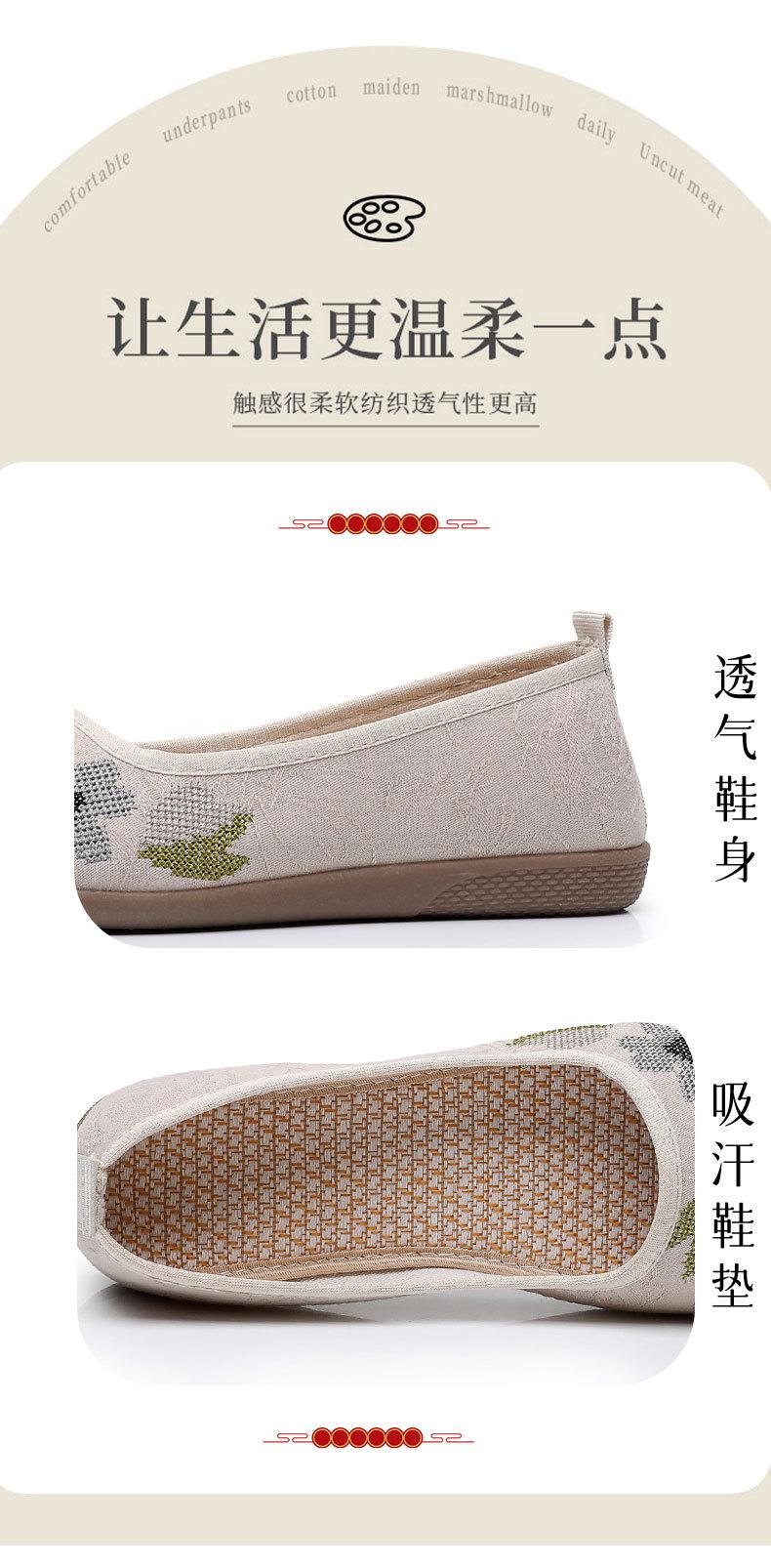 2025 Nuevo Estilo de Verano Zapatos de Tela de Pekín Antiguo para Mujer, Zapatos Cómodos para Madre, Boca Baja, Zapatos Slip-On Bordados Estilo Antiguo para Mujer