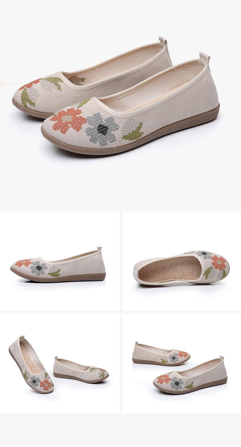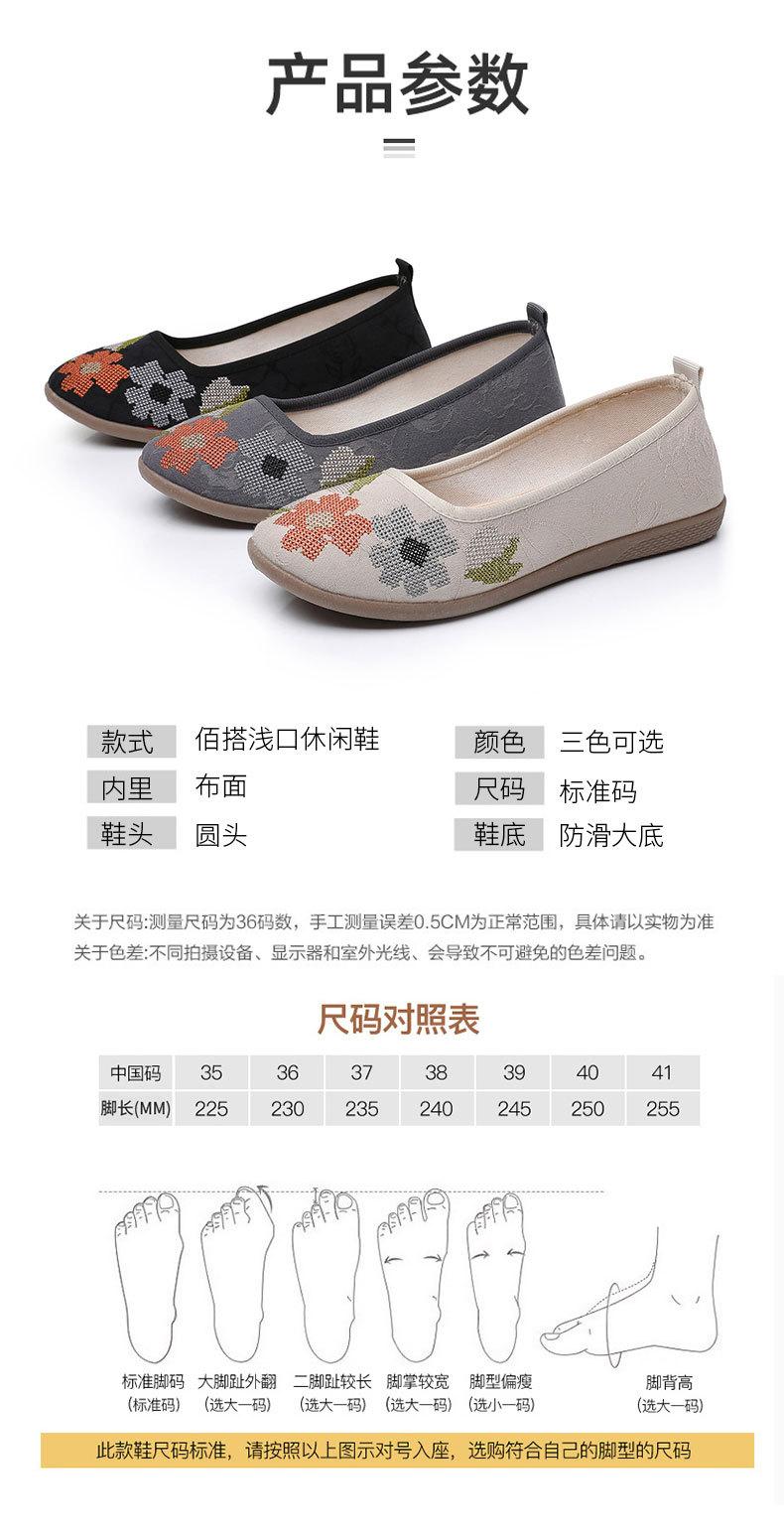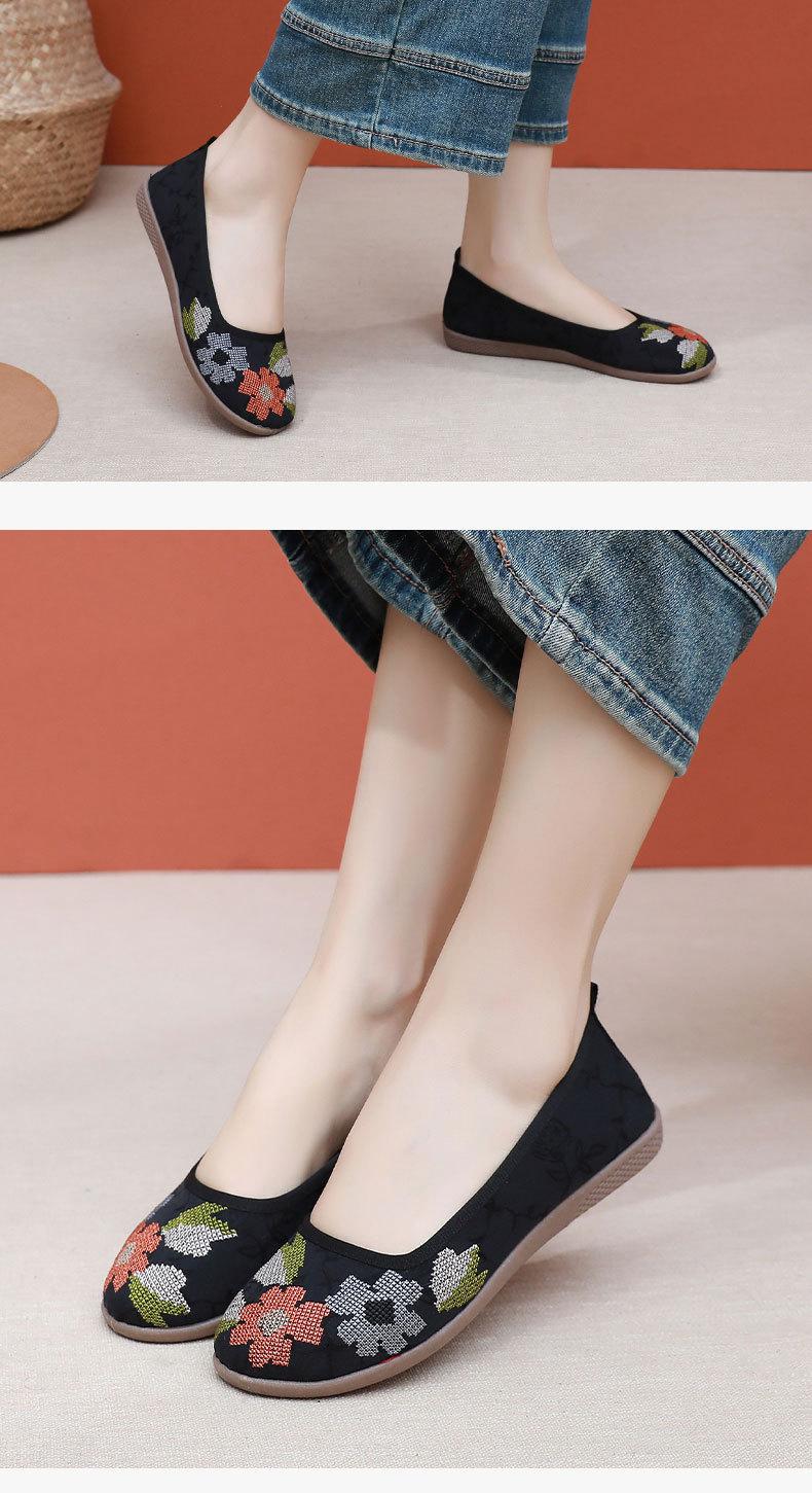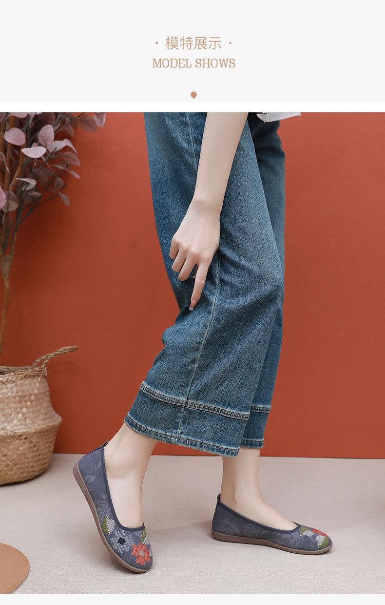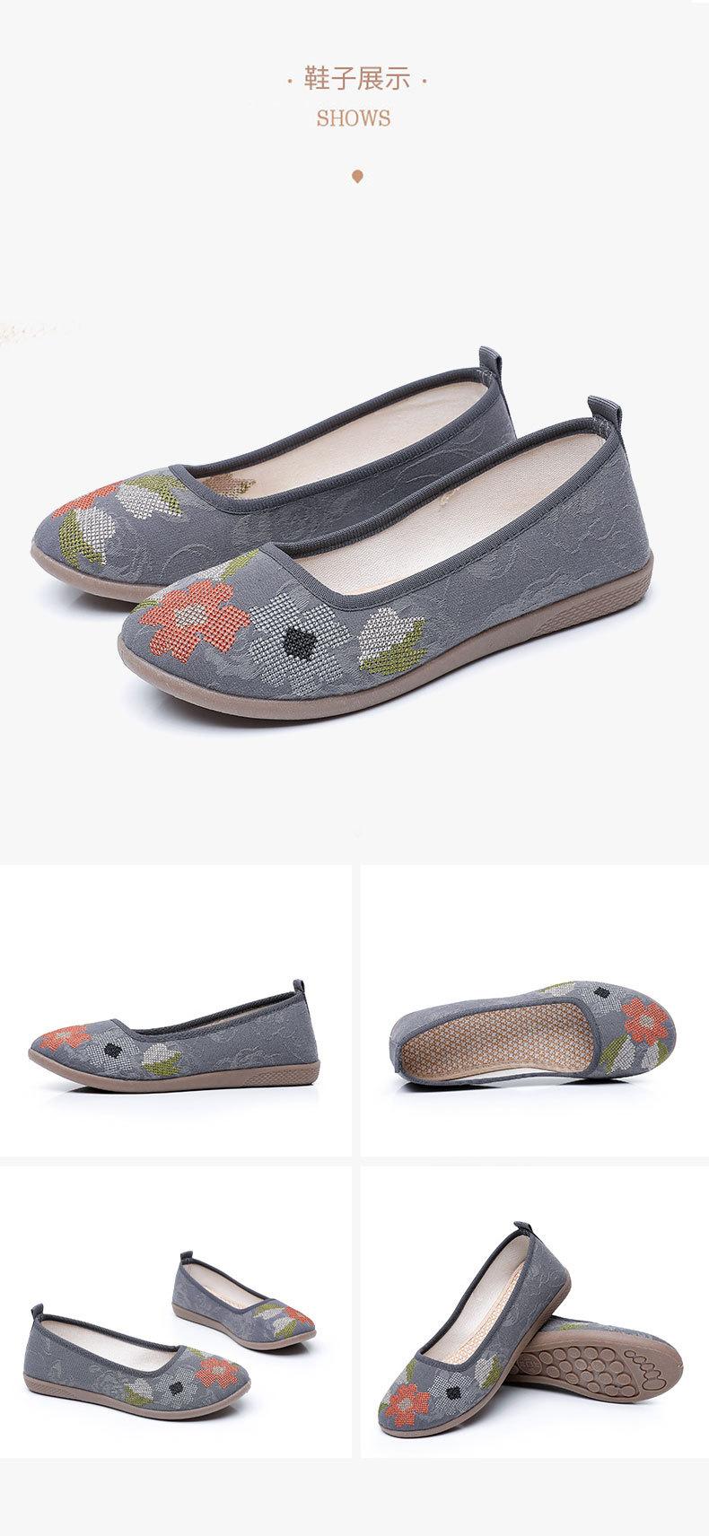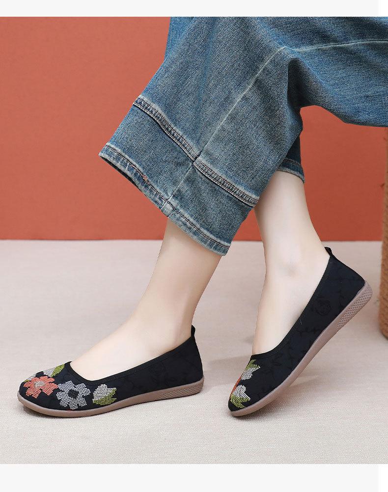 2025 Nuevo Estilo de Verano Zapatos de Tela de Pekín Antiguo para Mujer, Zapatos Cómodos para Madre, Boca Baja, Zapatos Slip-On Bordados Estilo Antiguo para Mujer