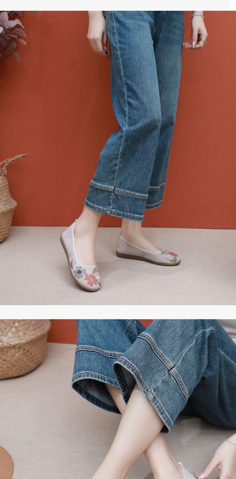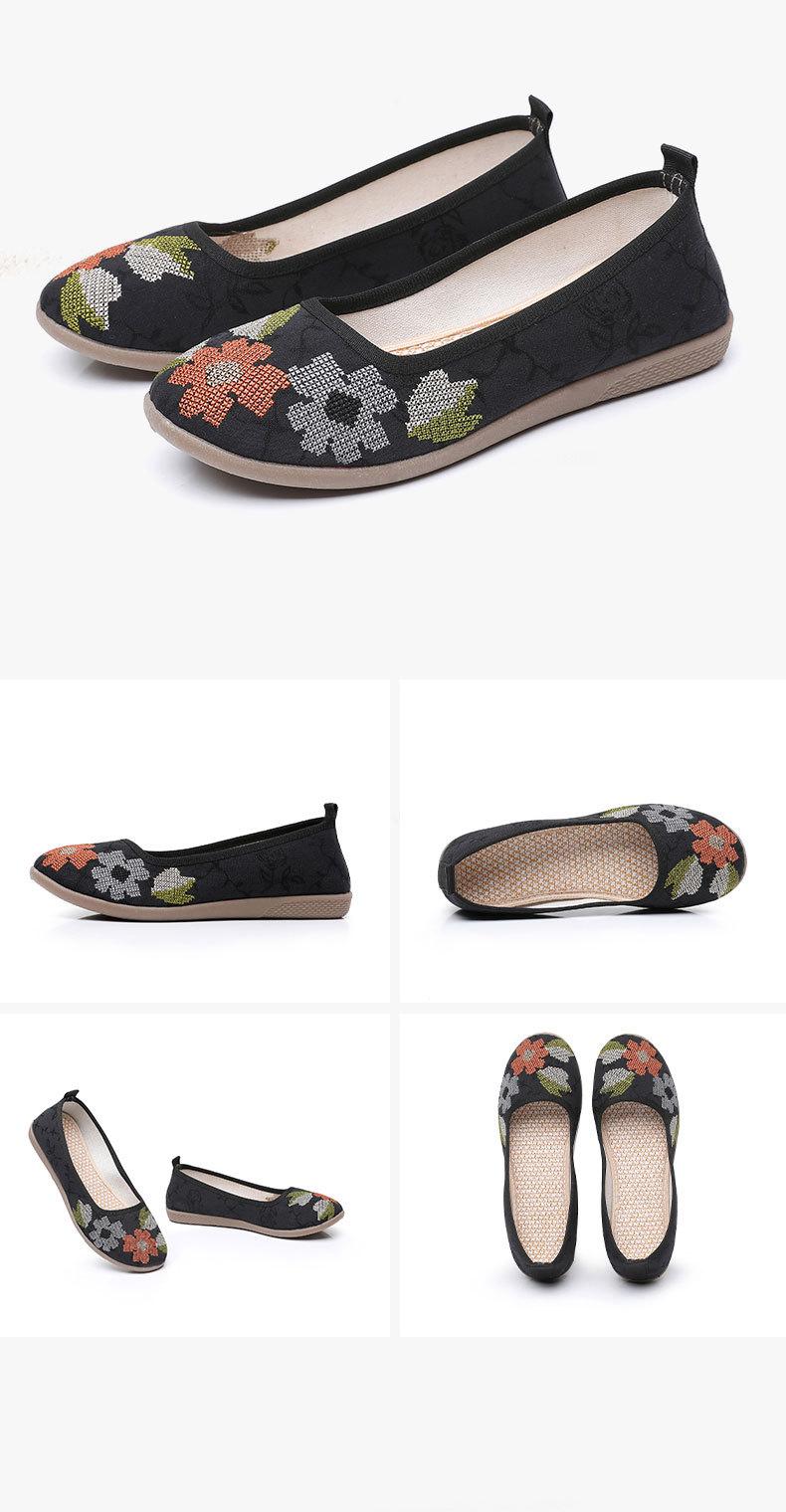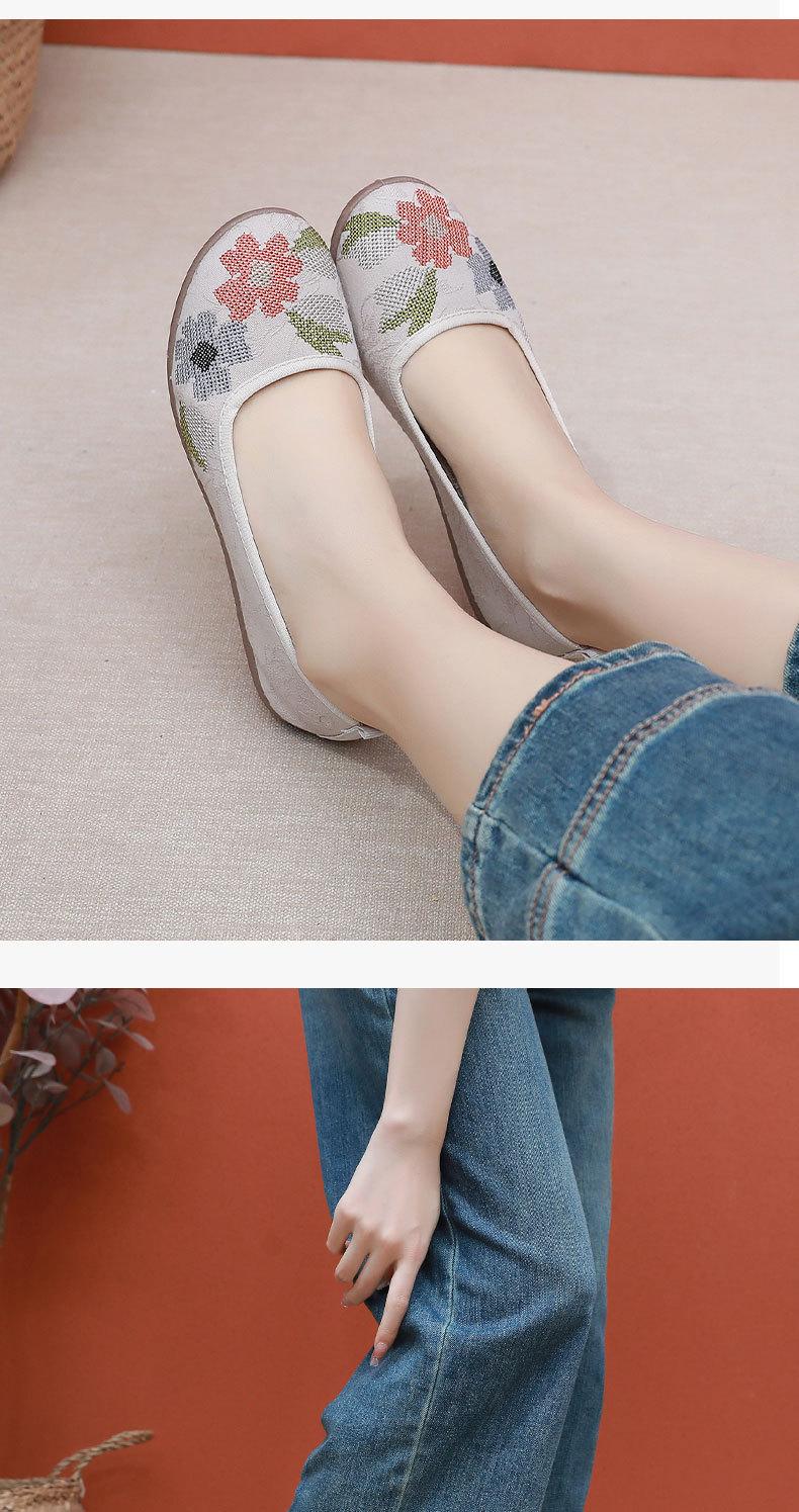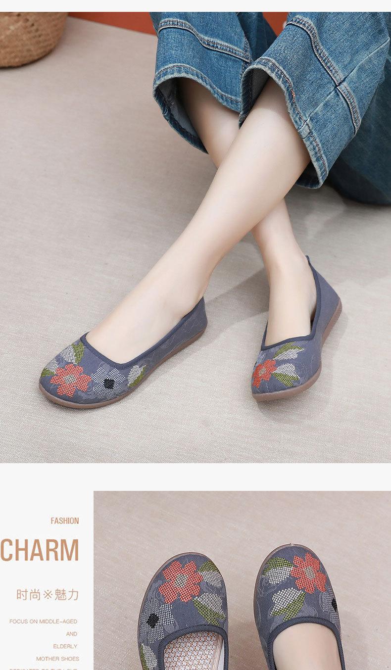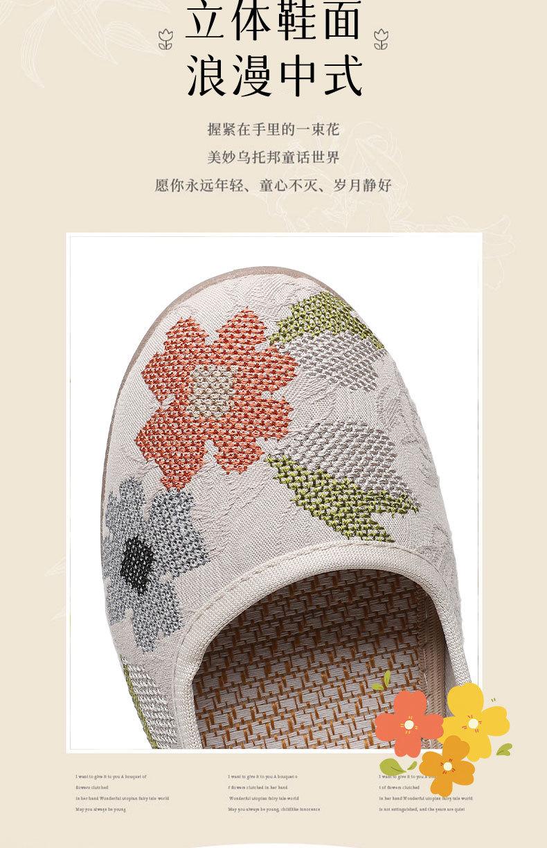 2025 Nuevo Estilo de Verano Zapatos de Tela de Pekín Antiguo para Mujer, Zapatos Cómodos para Madre, Boca Baja, Zapatos Slip-On Bordados Estilo Antiguo para Mujer