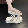 Sandalias Exteriores de Estilo Hada con Suela Plana para Mujer 2024 Verano Nuevo Versátiles Sandalias y Pantuflas con Encaje y Volantes