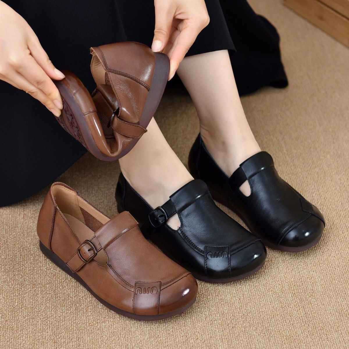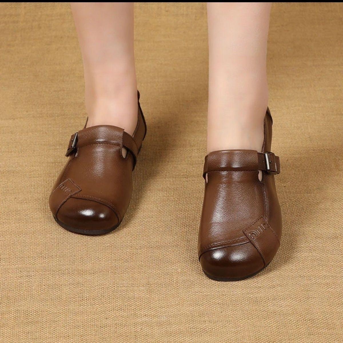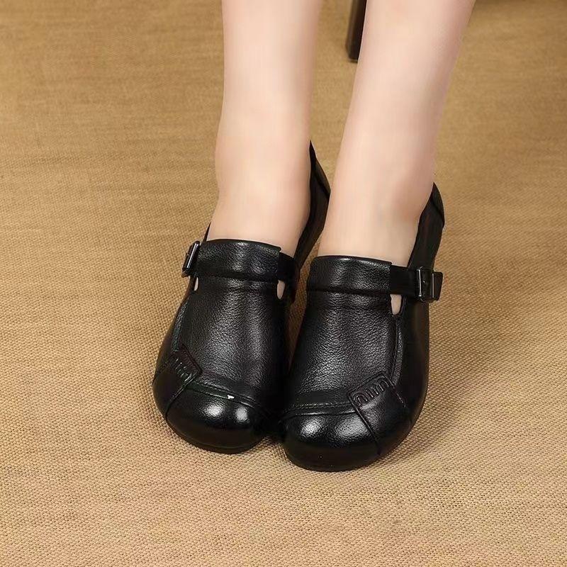 Zapatos Planos de Cuero 2025 Retro Primavera y Otoño Zapatos de Madre Zapatos Cómodos de Mujer de Cuero Suave Nuevo Suela Suave