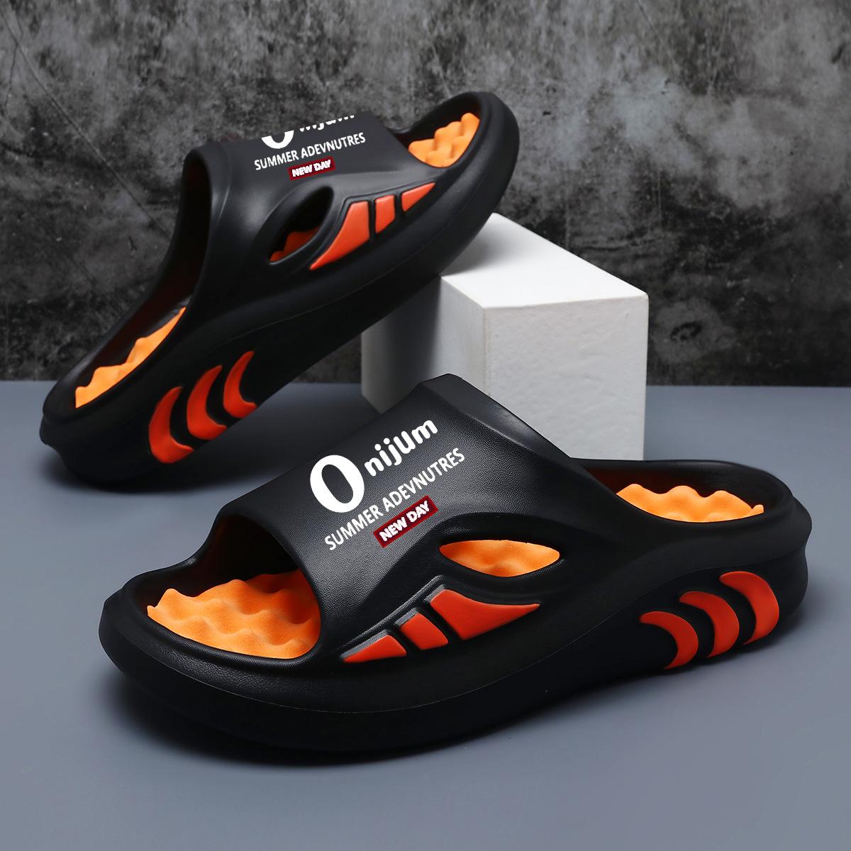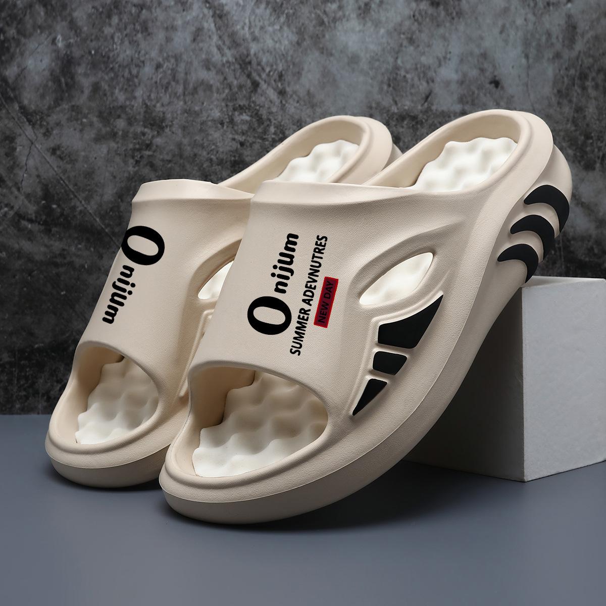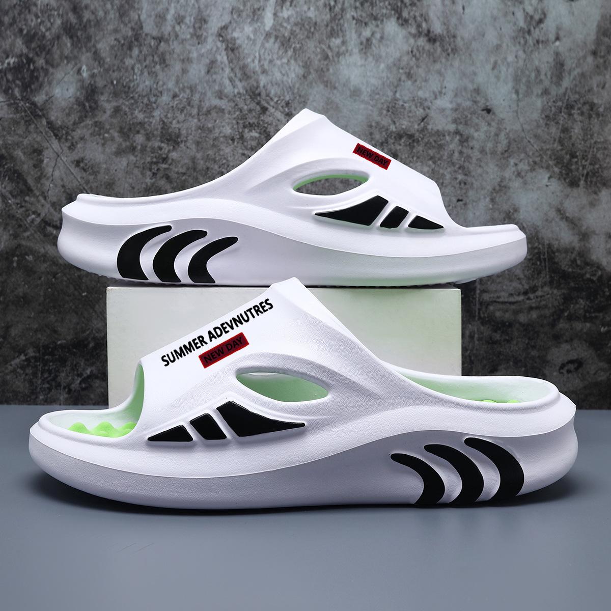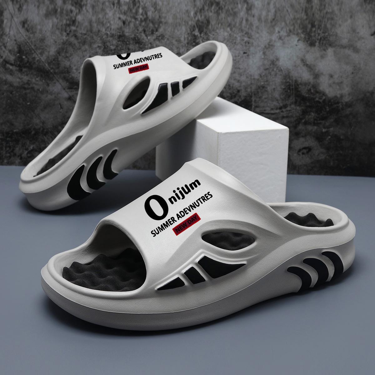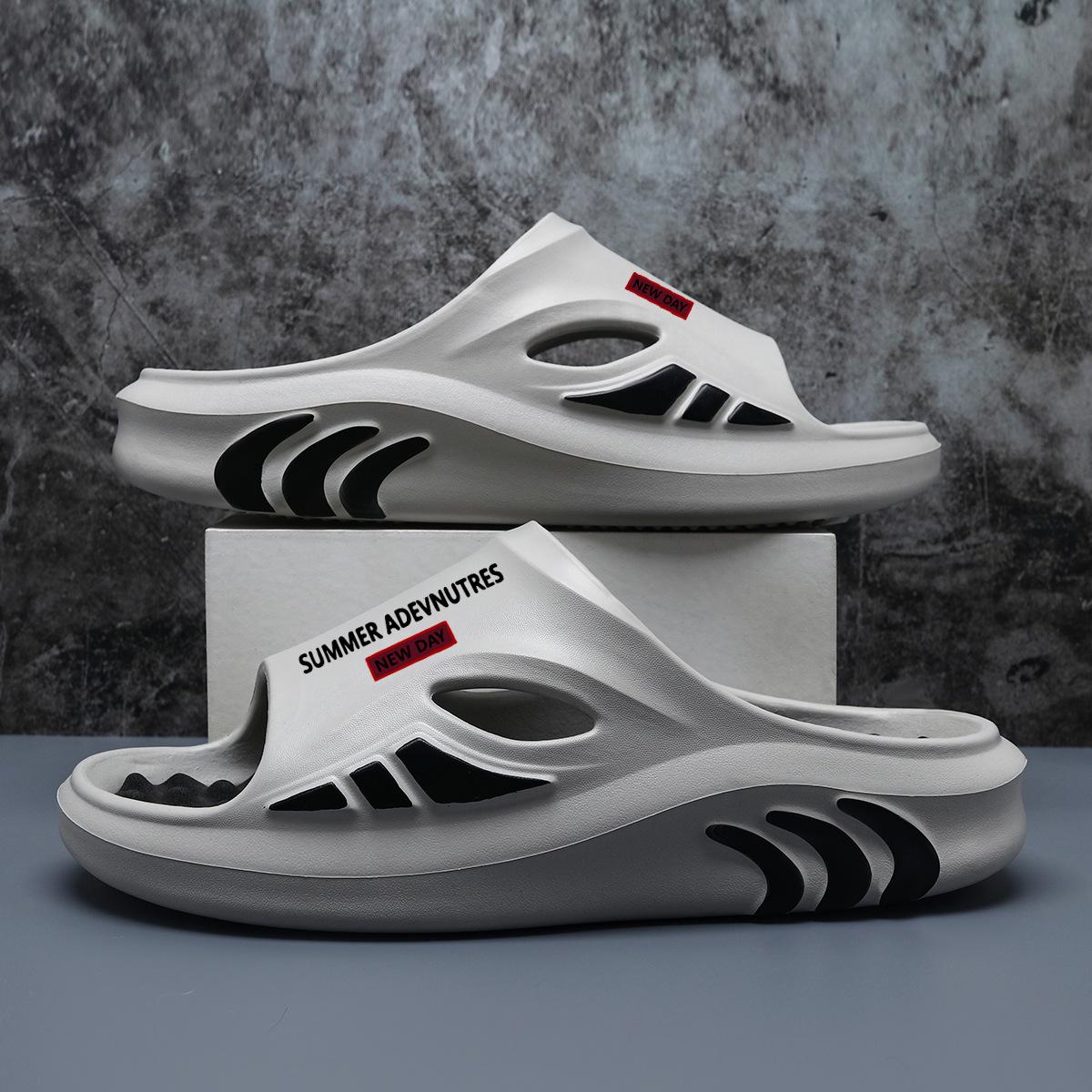 Pantuflas para Hombre, Verano Casual para Exterior, Estampado de Letras Deportivas, Chanclas de Talla Grande, Sandalias de Playa Antideslizantes de Suela Gruesa