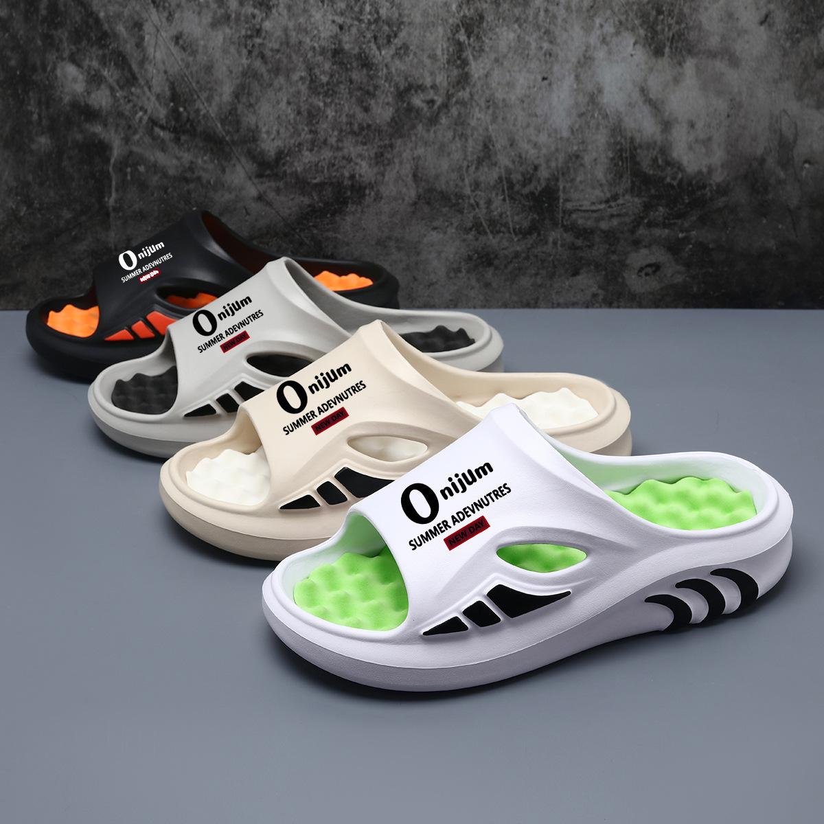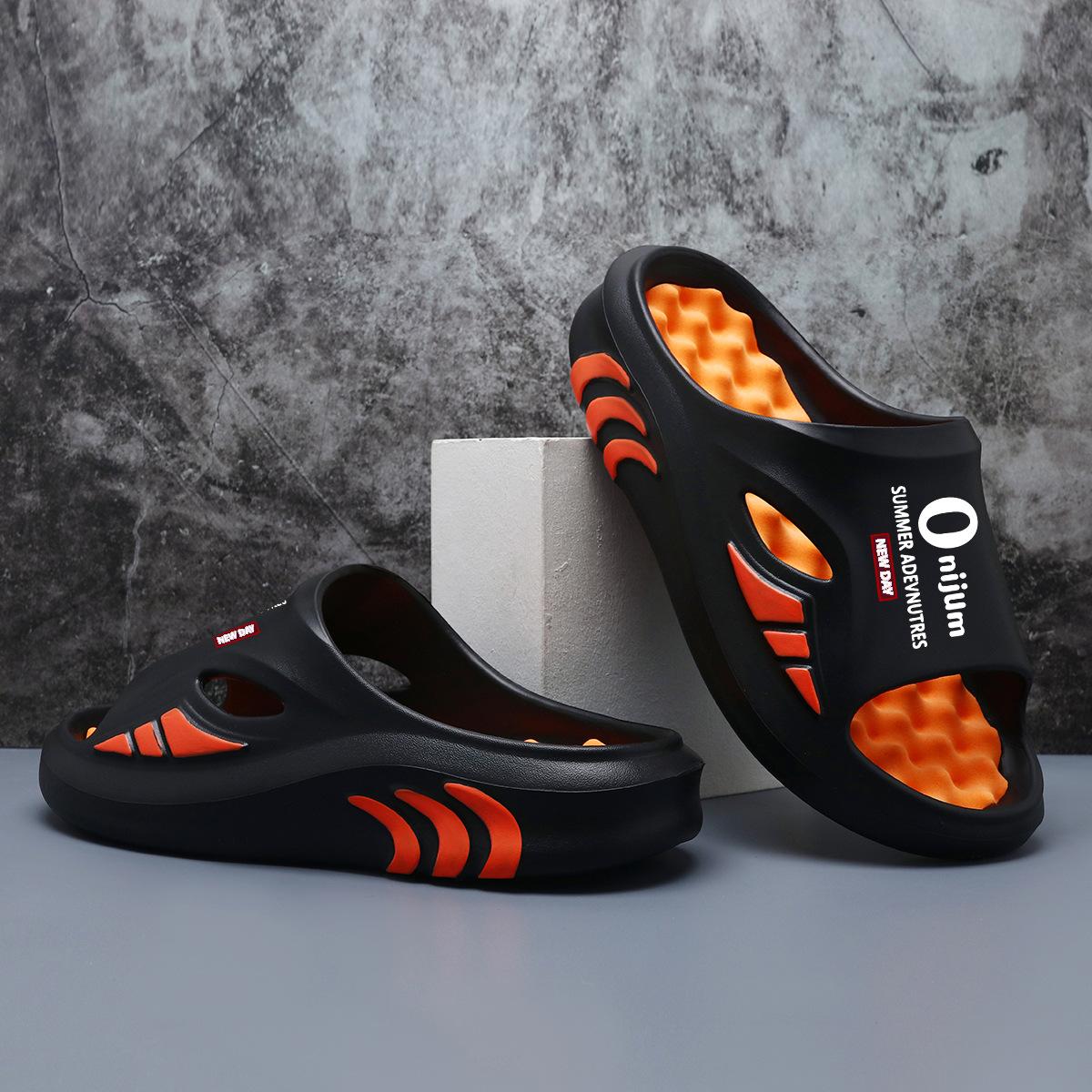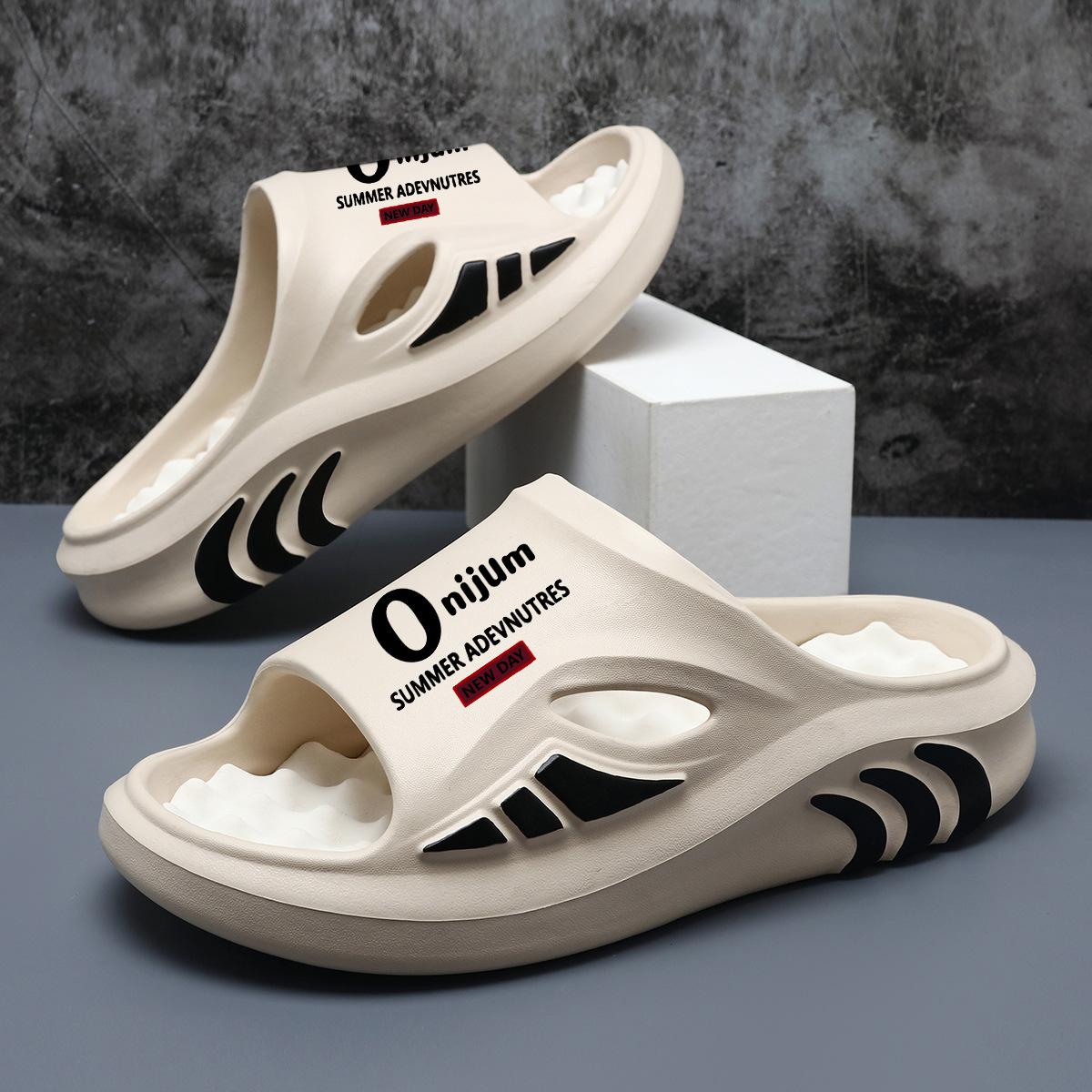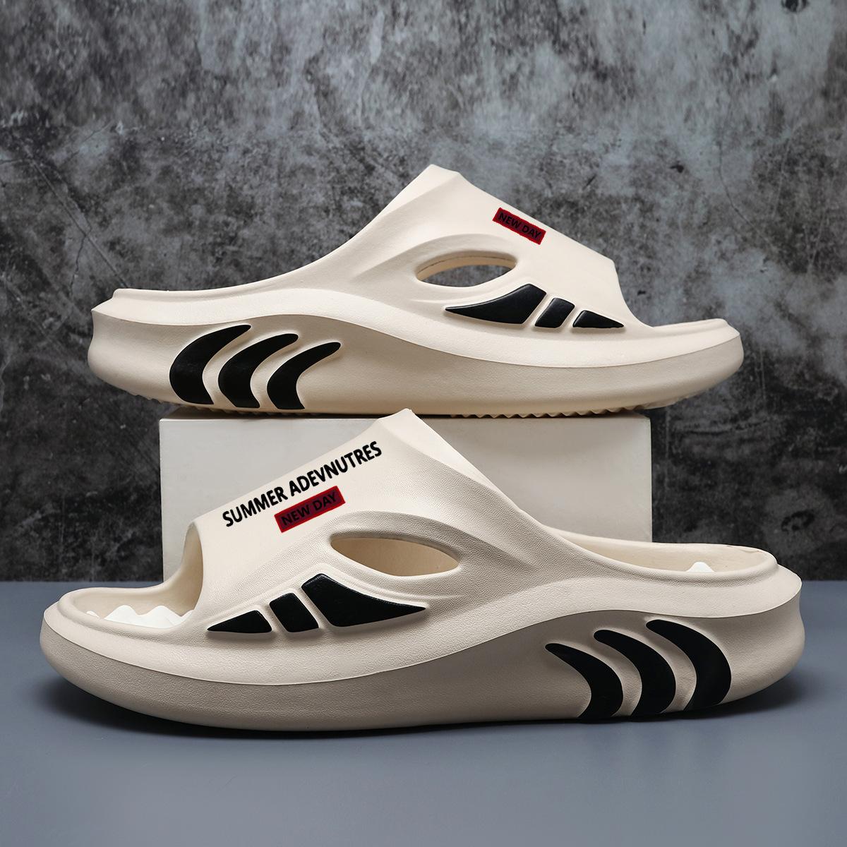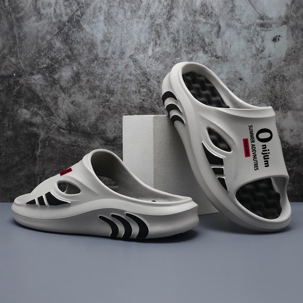 Pantuflas para Hombre, Verano Casual para Exterior, Estampado de Letras Deportivas, Chanclas de Talla Grande, Sandalias de Playa Antideslizantes de Suela Gruesa