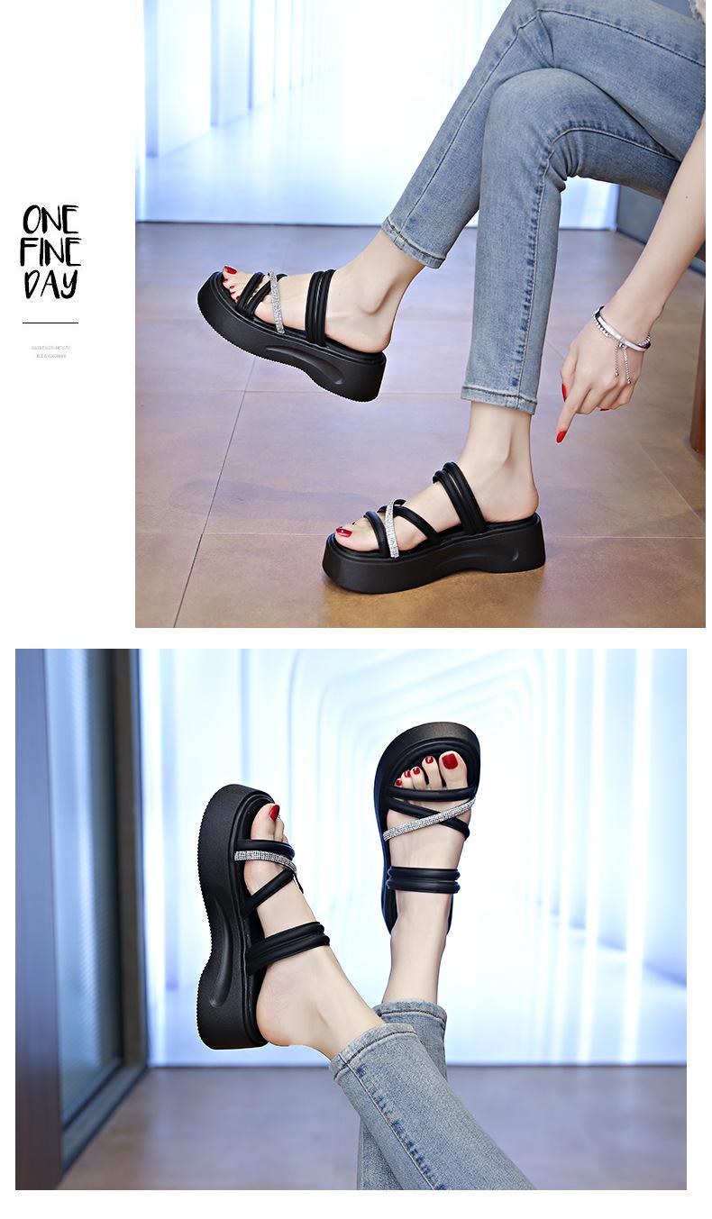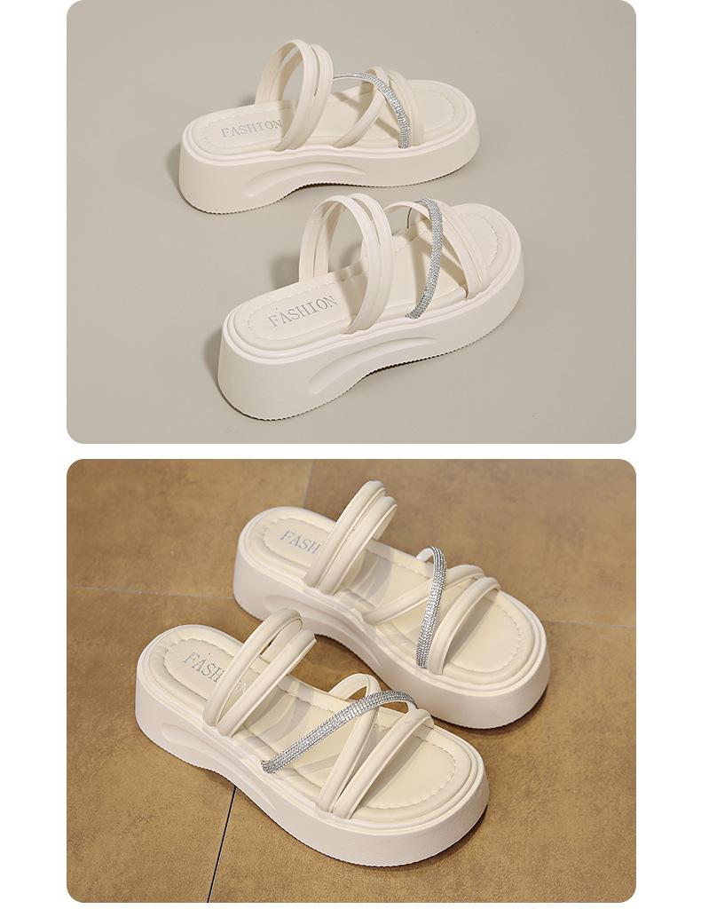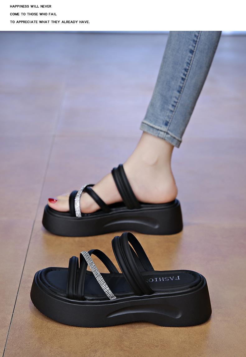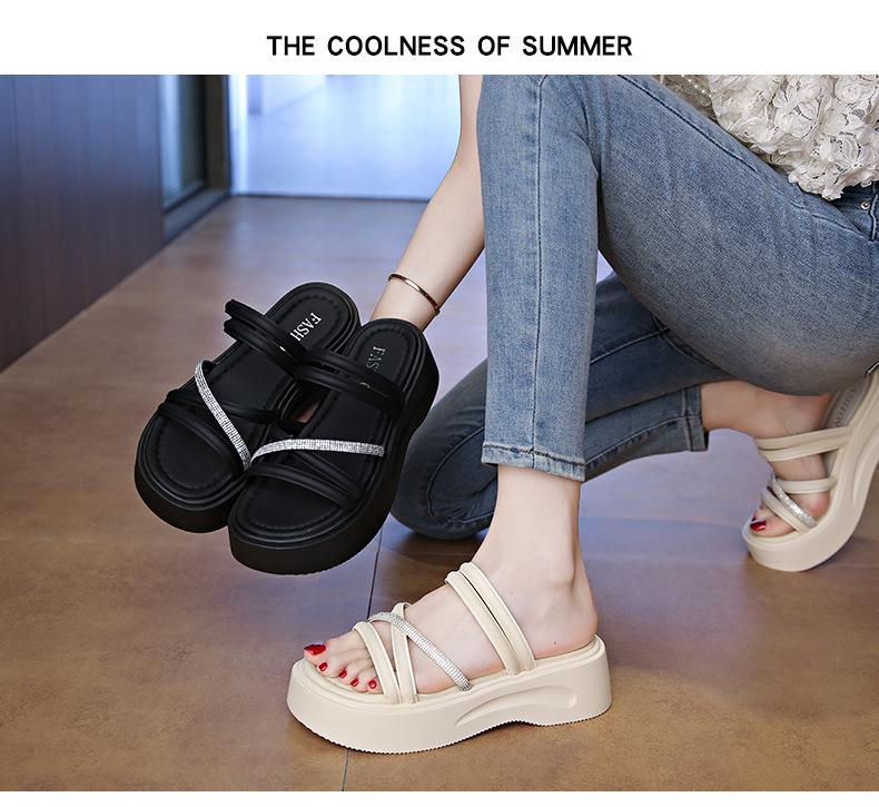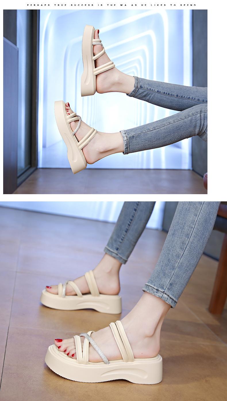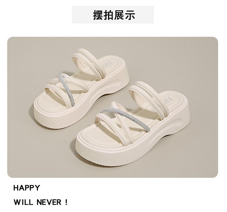 Sandalias y pantuflas de verano para mujer para exteriores 2025 nuevas de suela gruesa para aumentar la altura casuales para la playa con pedrería con falda