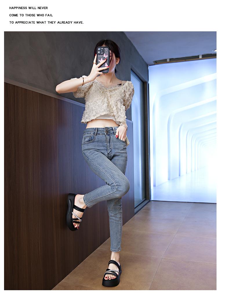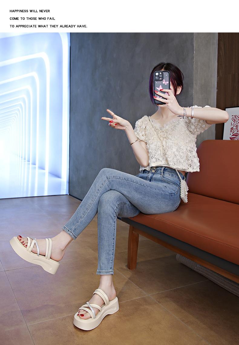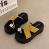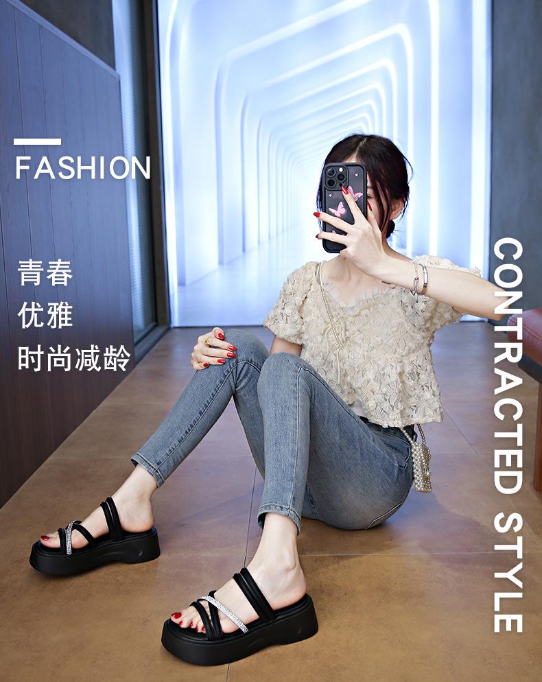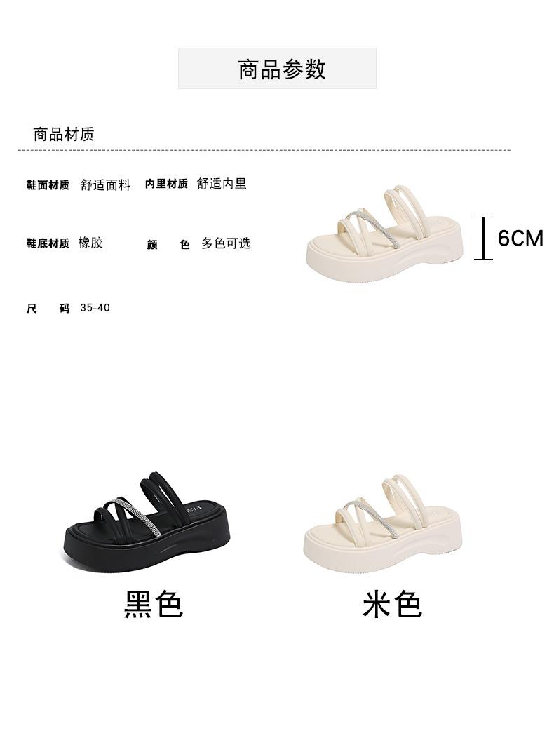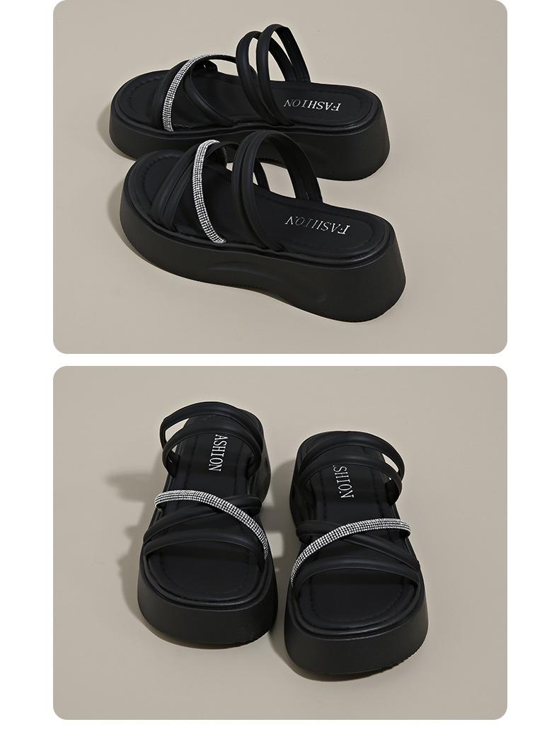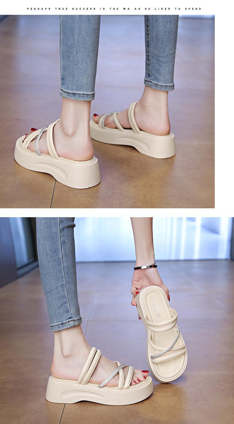 Sandalias y pantuflas de verano para mujer para exteriores 2025 nuevas de suela gruesa para aumentar la altura casuales para la playa con pedrería con falda