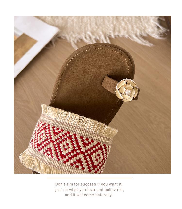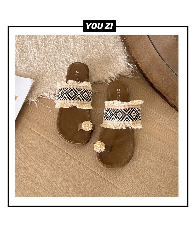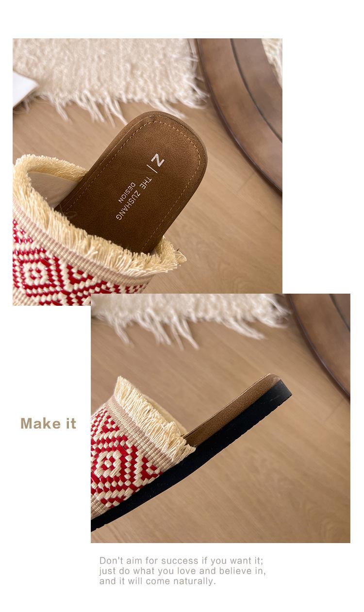 Sandalias de verano para mujer, estilo retro, con punta plana, informales y estilo vacacional, 2025