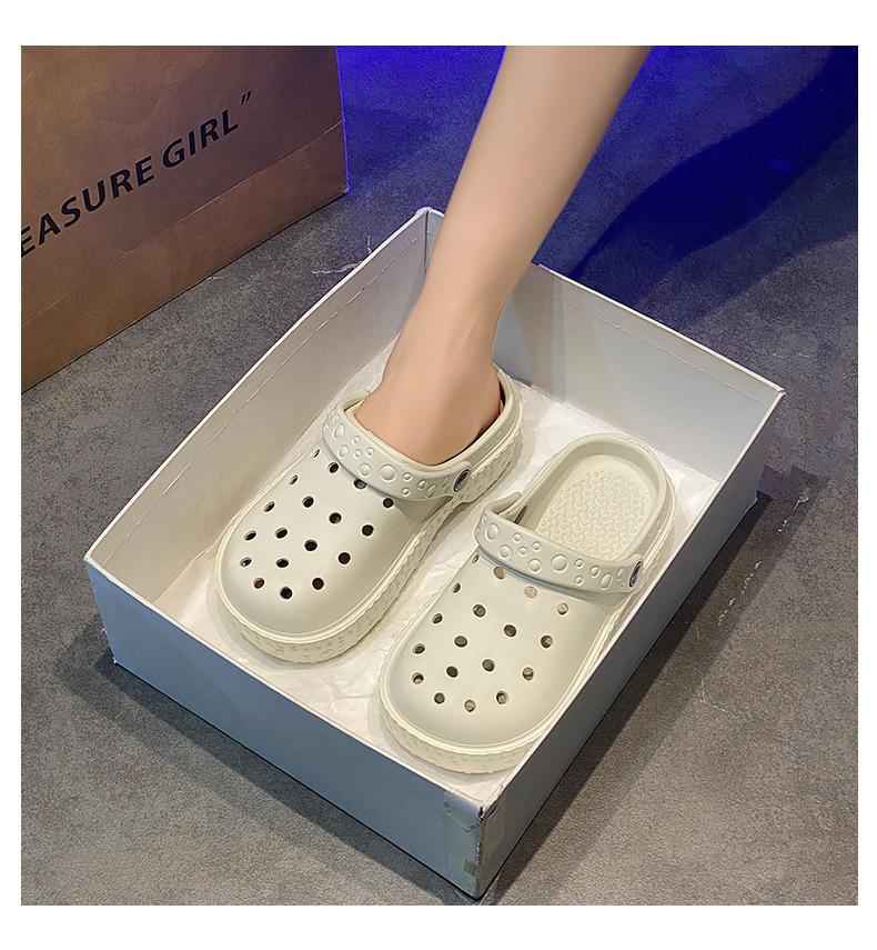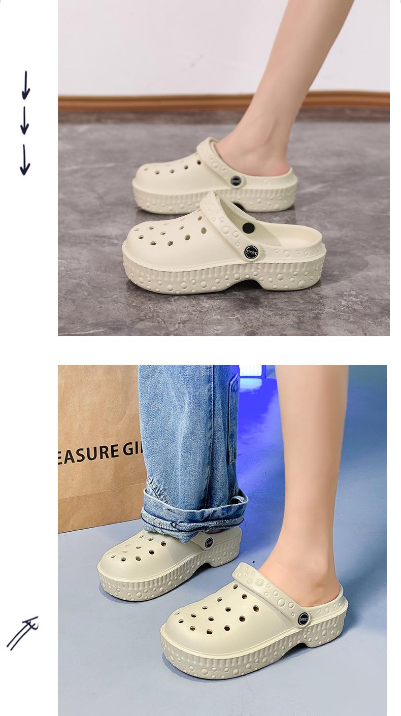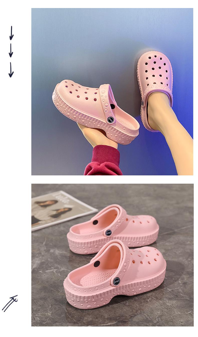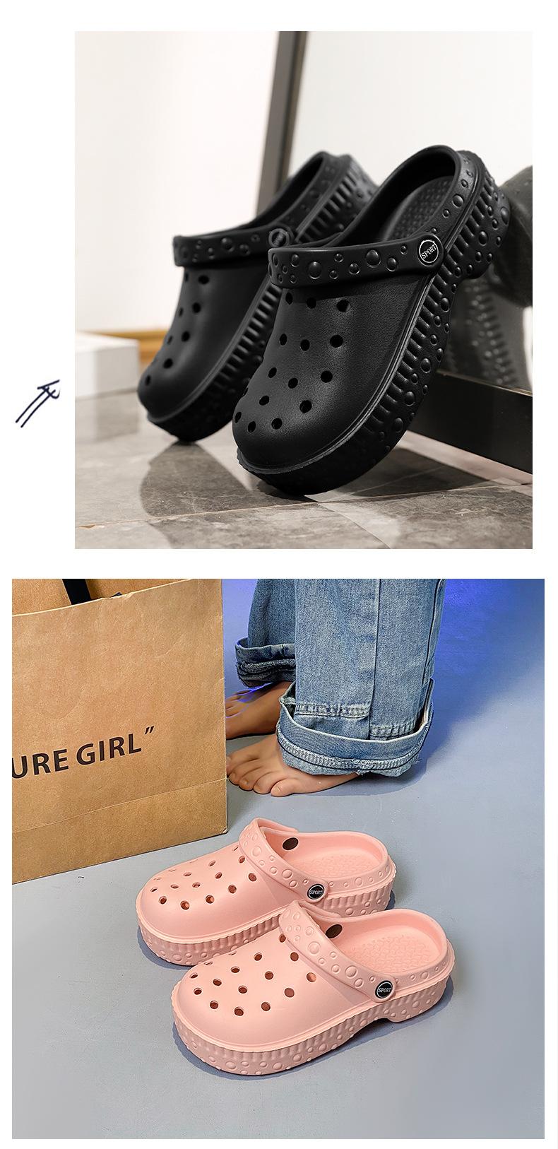 Zapatos de Agujeros de Color Sólido Nuevos Zapatillas Baotou de Verano para Mujer para Exterior Sensación Dung Suela Gruesa Antideslizante Sandalias de Playa para Mujer