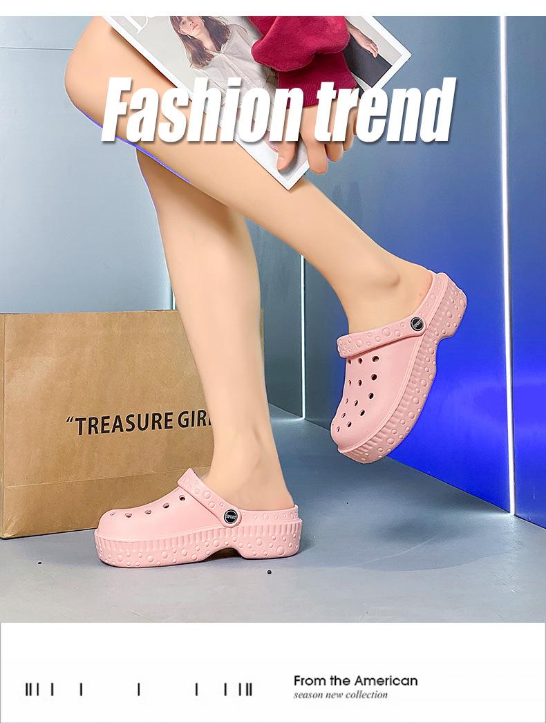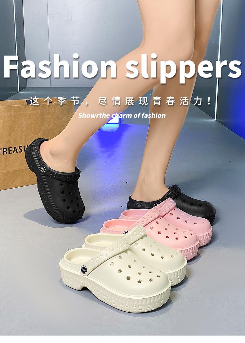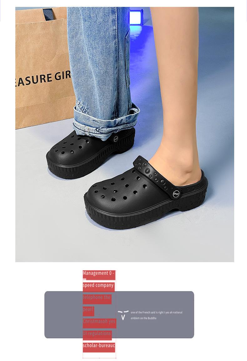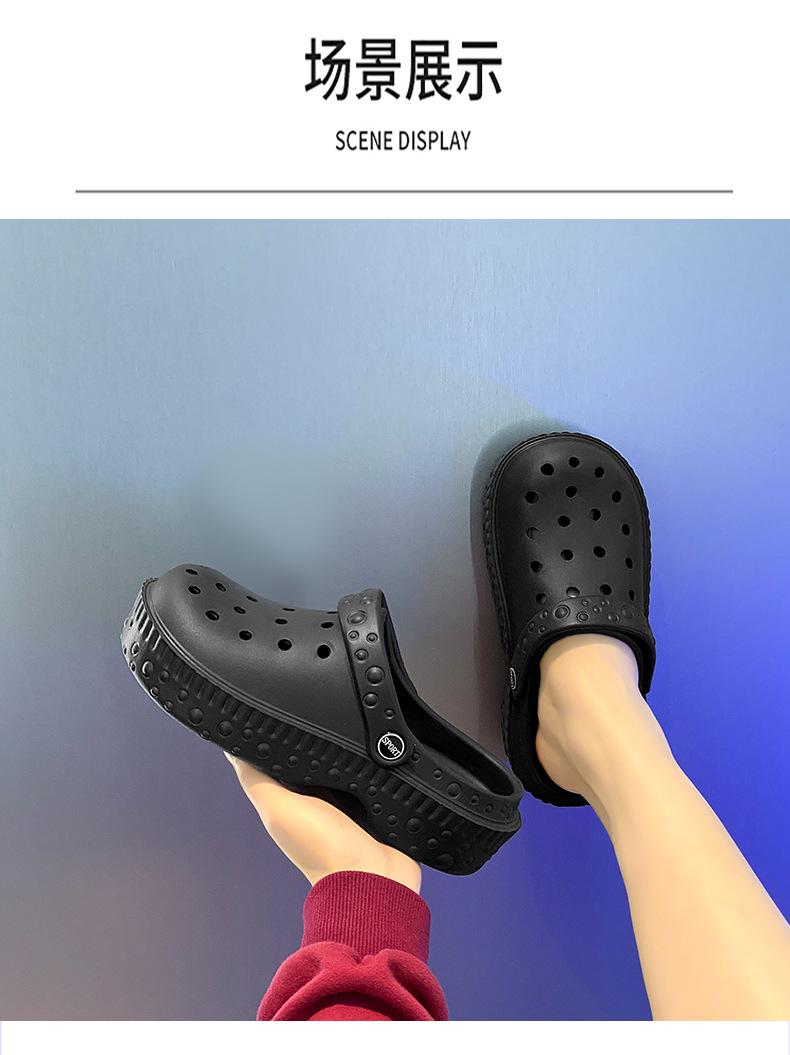 Zapatos de Agujeros de Color Sólido Nuevos Zapatillas Baotou de Verano para Mujer para Exterior Sensación Dung Suela Gruesa Antideslizante Sandalias de Playa para Mujer