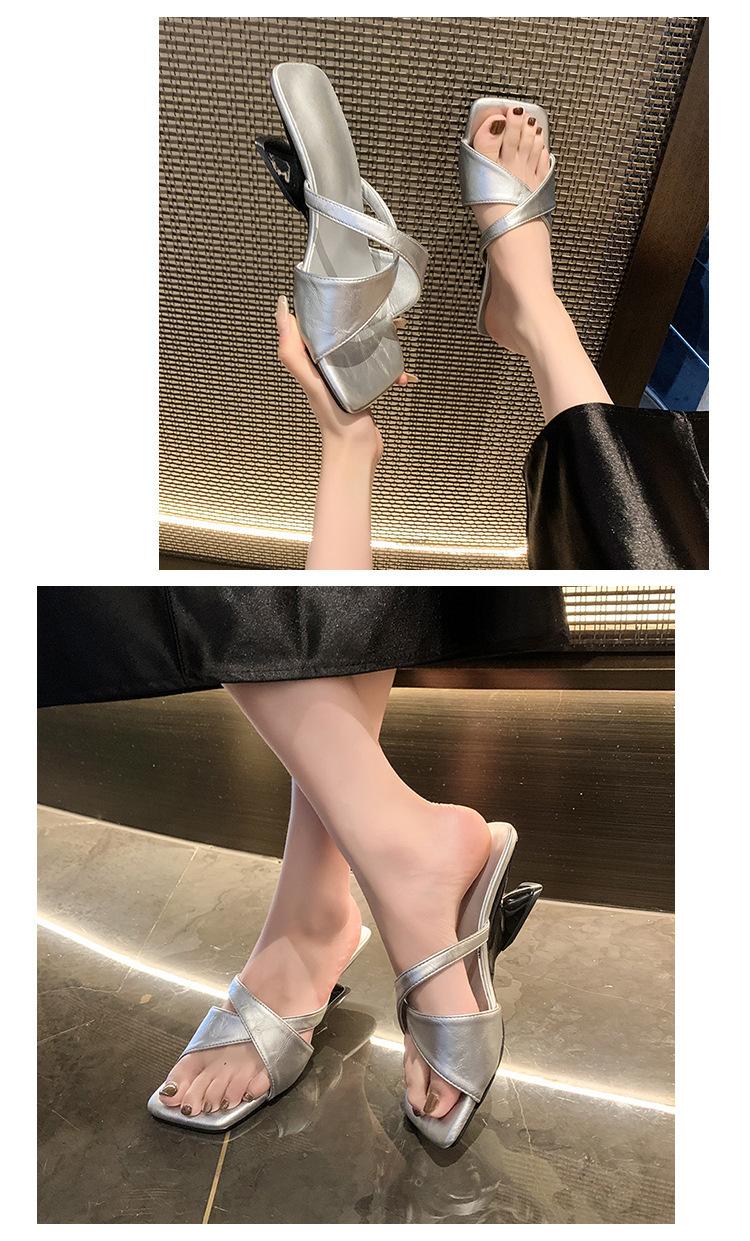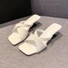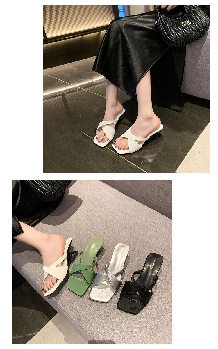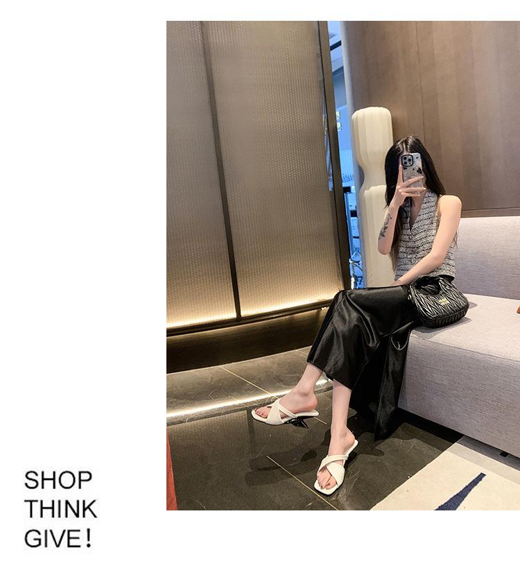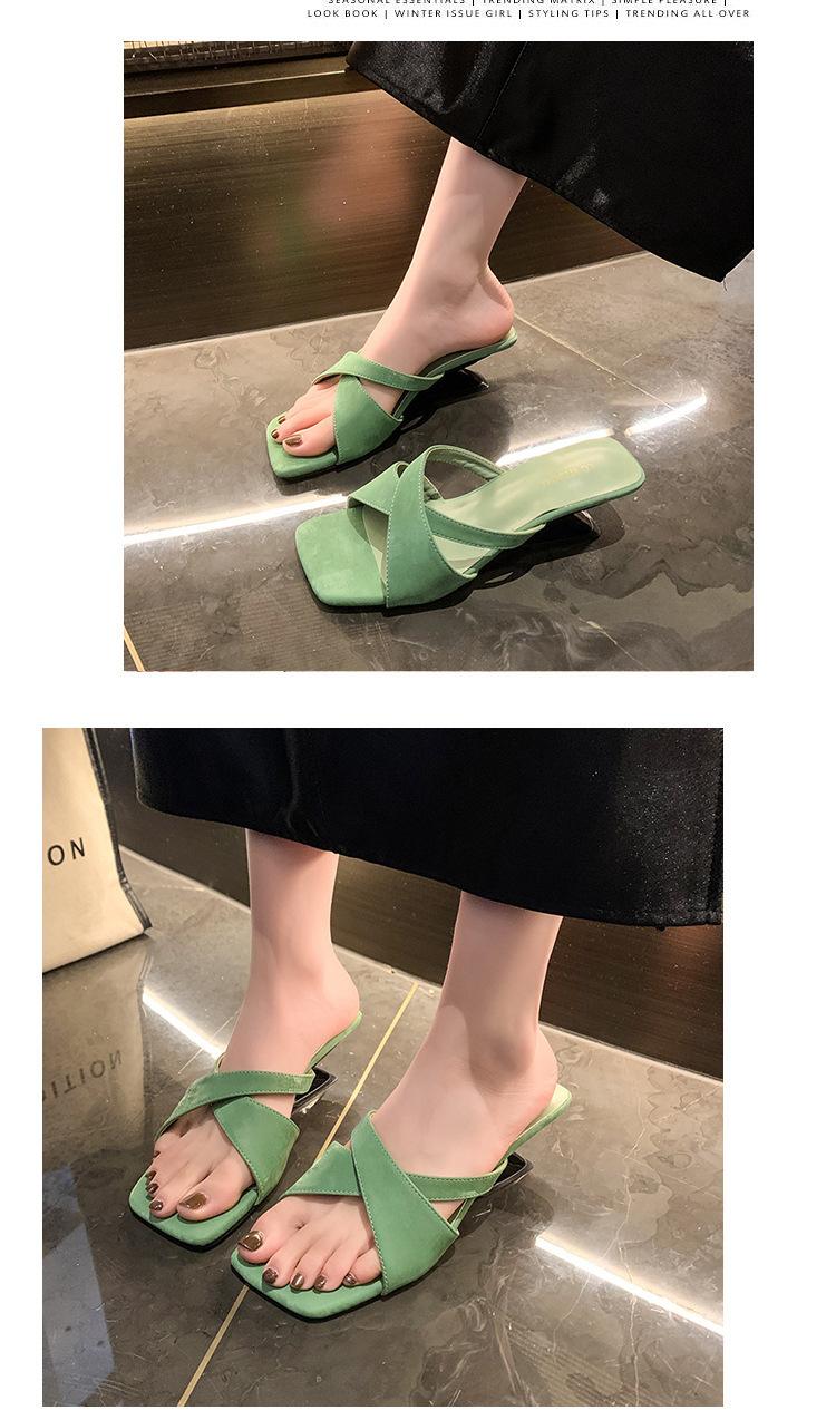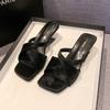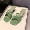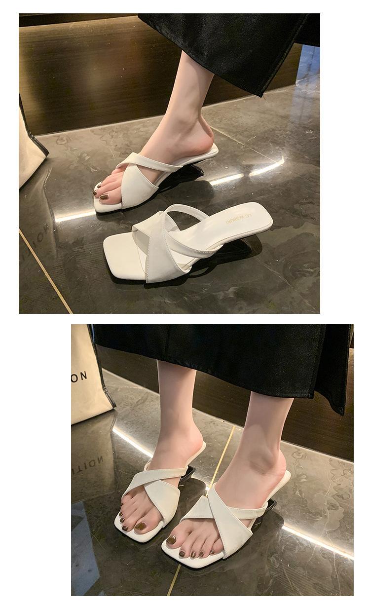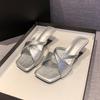2024 Verano Nueva Llegada Estilo Francés Elegantes Sandalias y Pantuflas de Tacón Bajo para Mujer Estilo Coreano Moda Punta Cuadrada Punta Abierta para Exterior Tiendas de Una Palabra